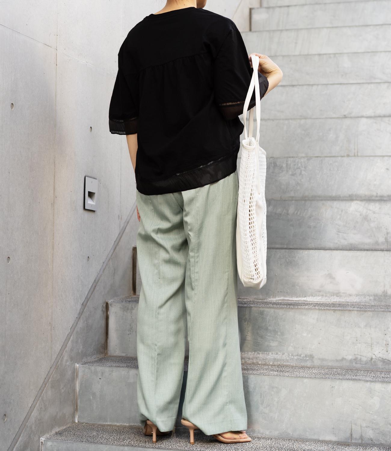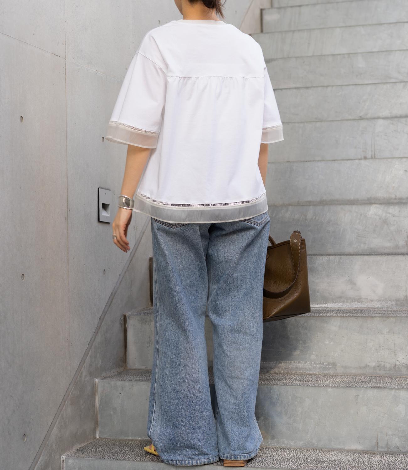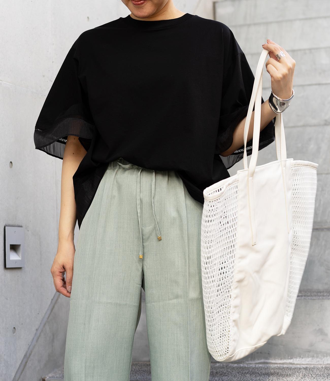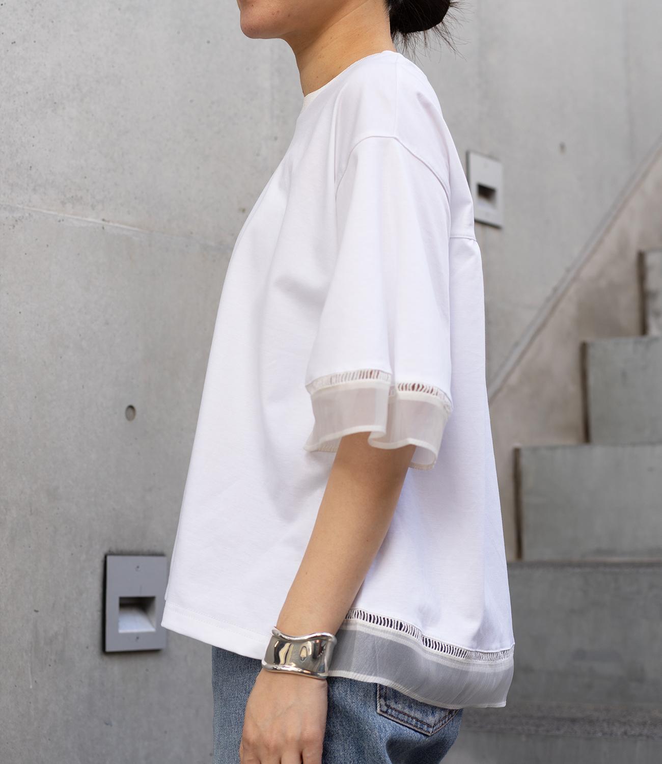 シルケット素材の天竺カットソーに、柔らかなシアーシフォン生地をドッキング。