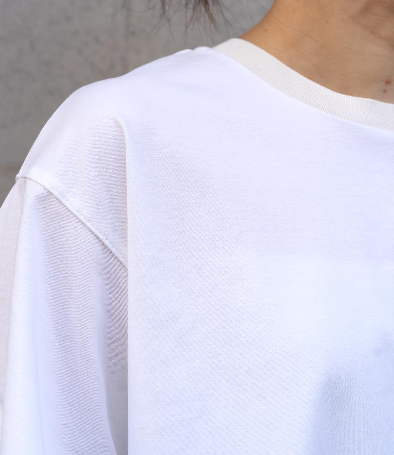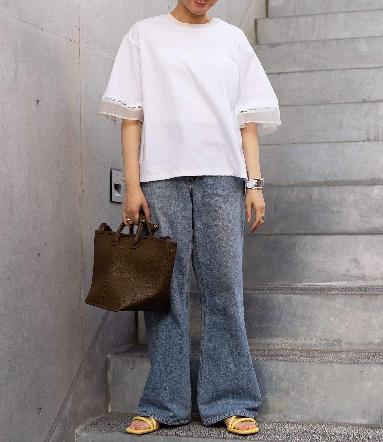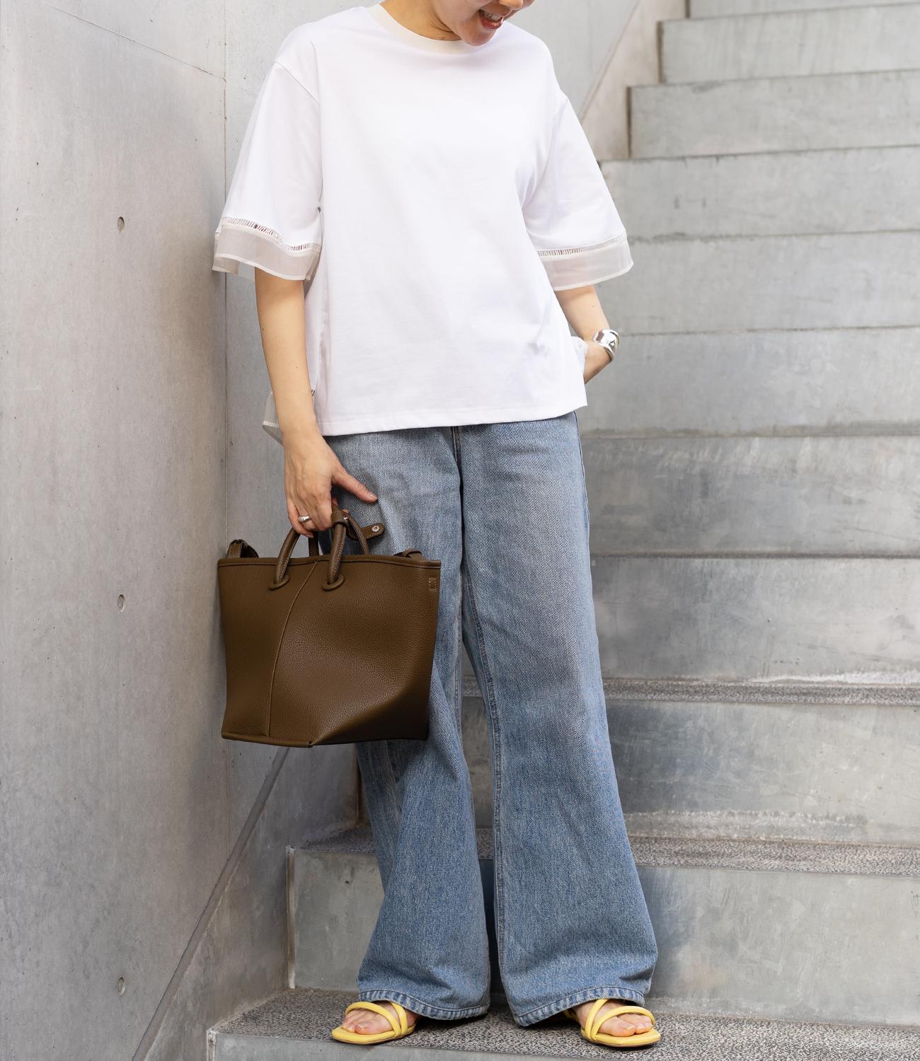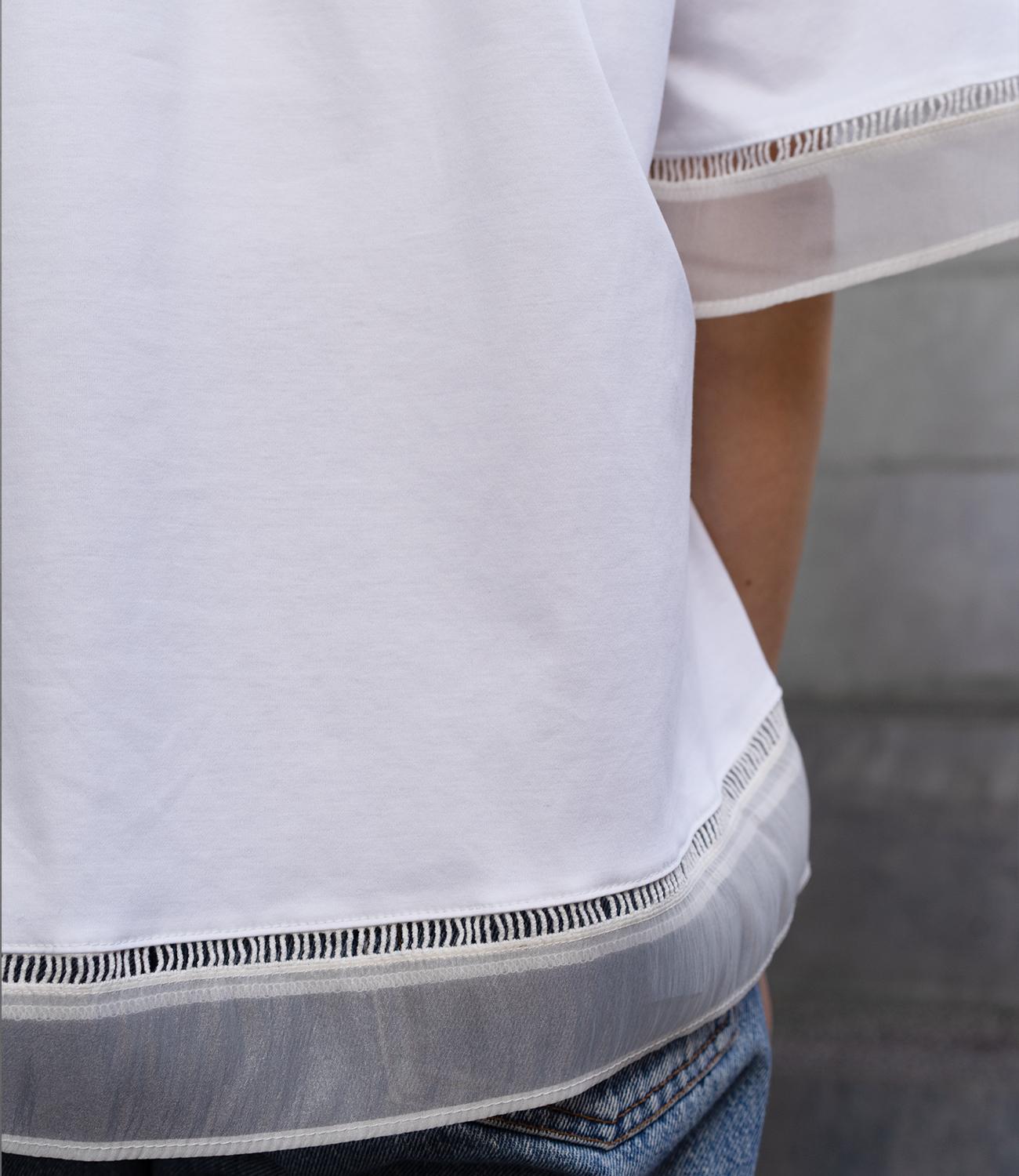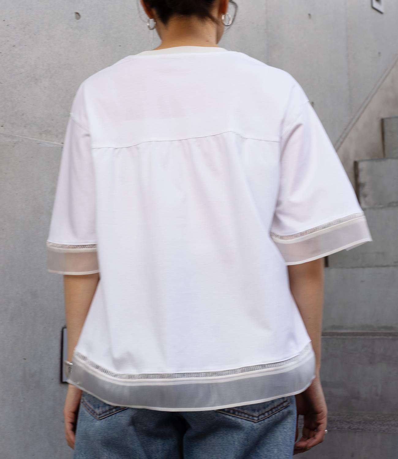 シルケット素材の天竺カットソーに、柔らかなシアーシフォン生地をドッキング。