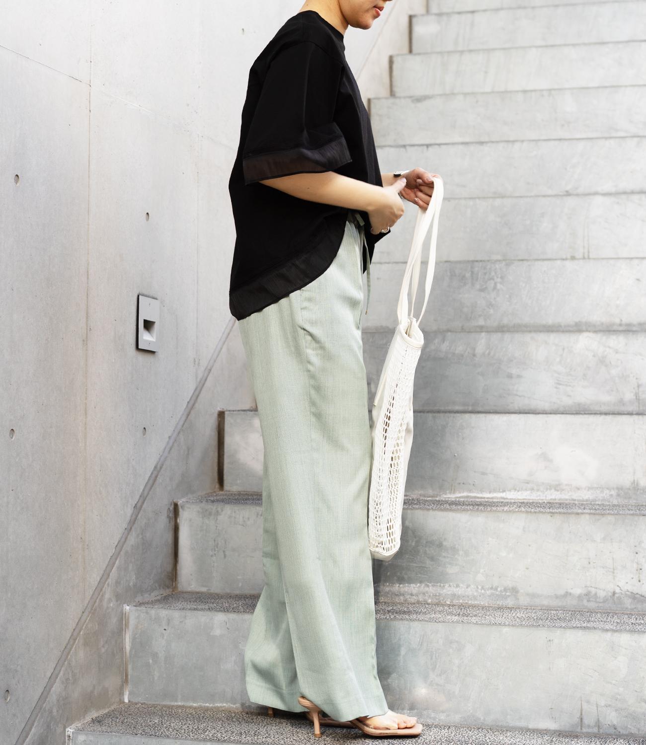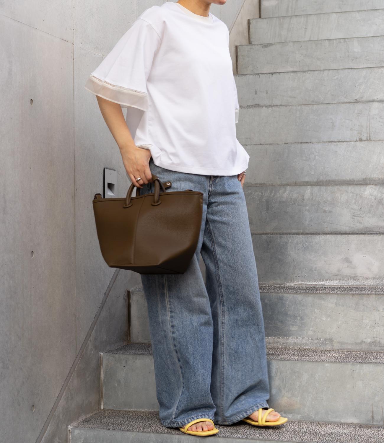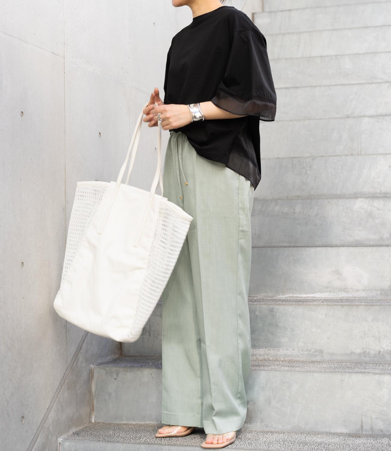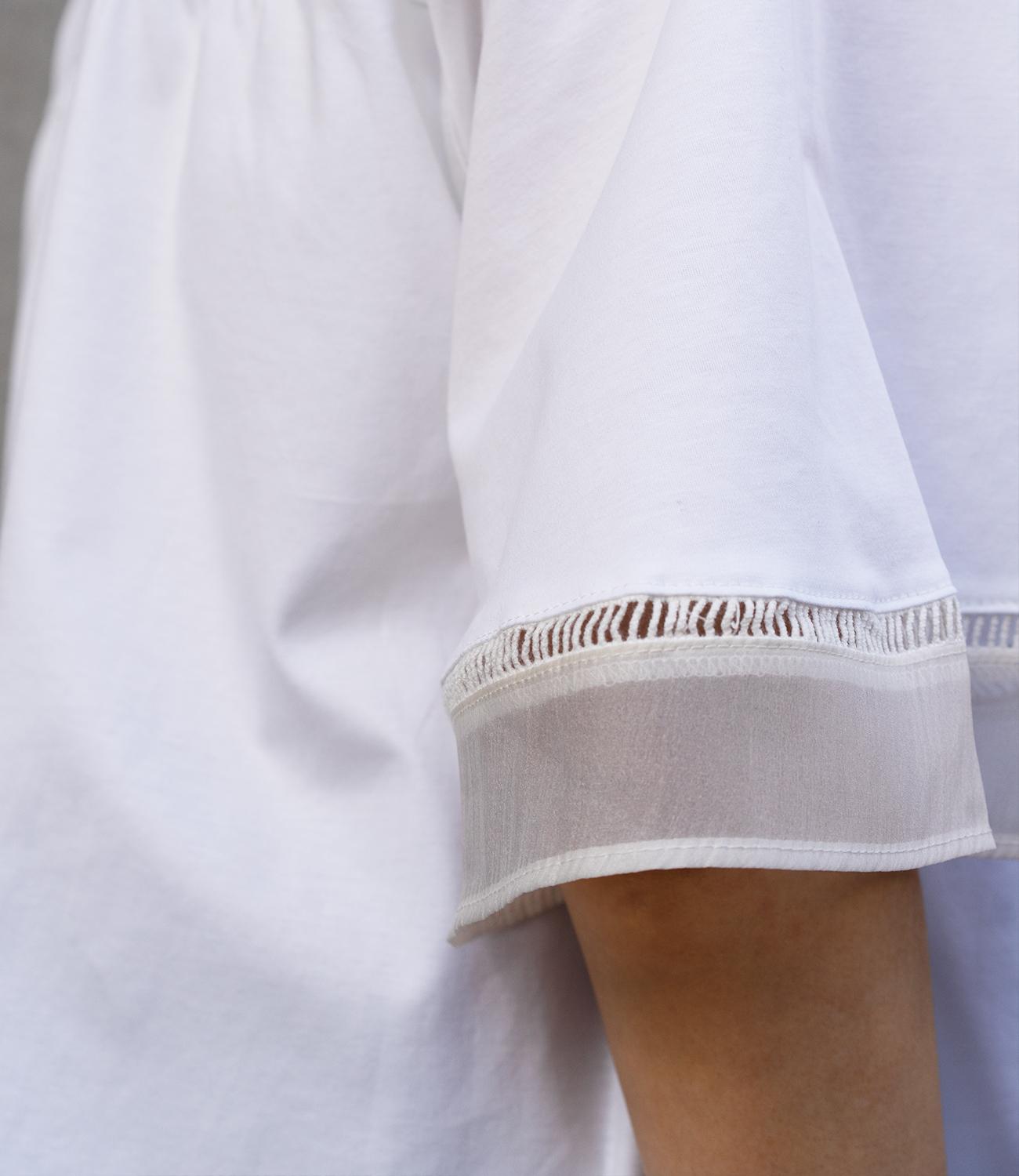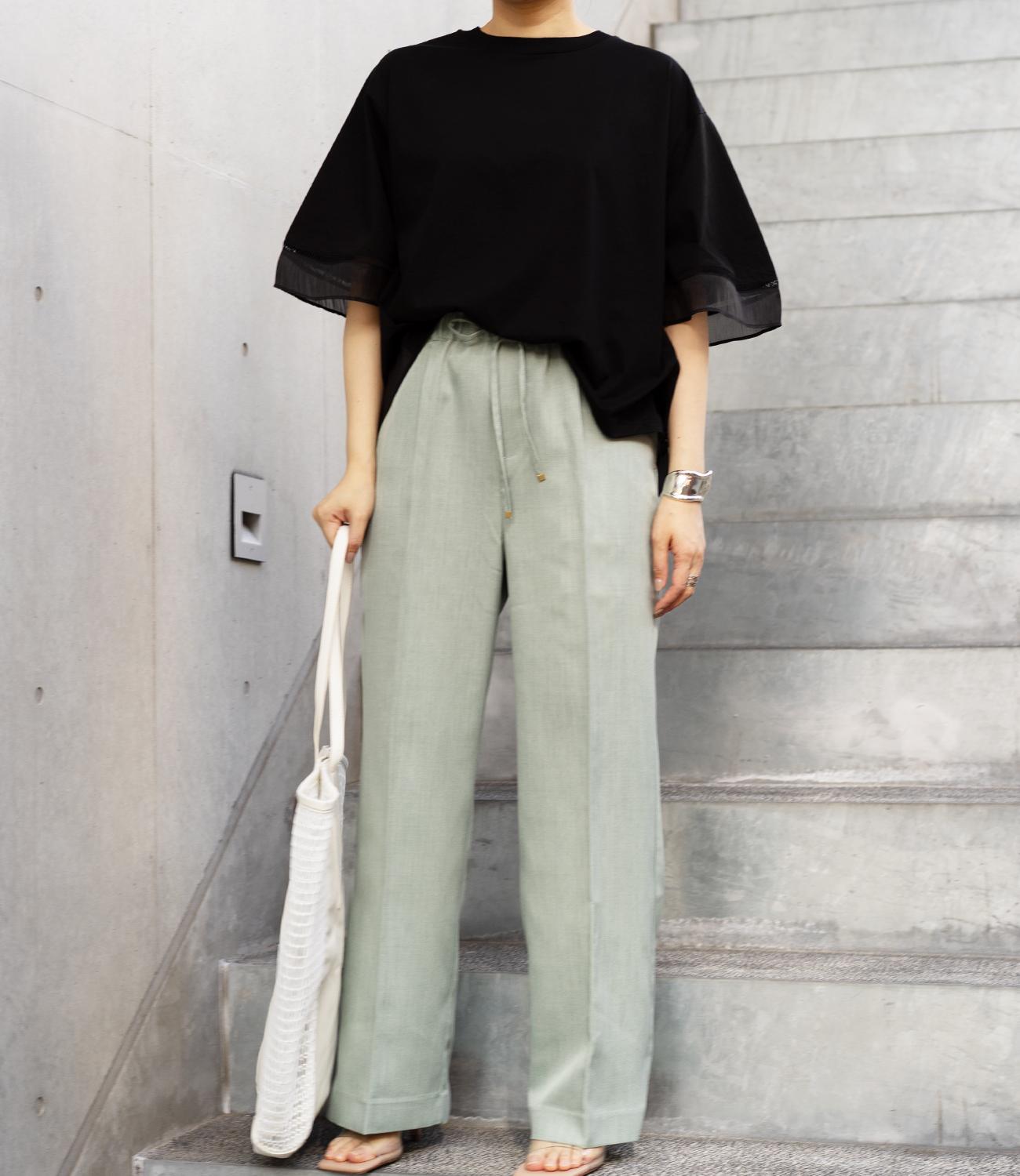 シルケット素材の天竺カットソーに、柔らかなシアーシフォン生地をドッキング。