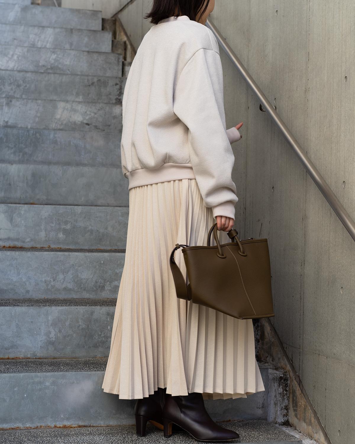 フーディやスウェットなどカジュアルなアイテムと合わせたカジュアルなスタイリングも、ブラウスとのオフィススタイルにもぴったり。