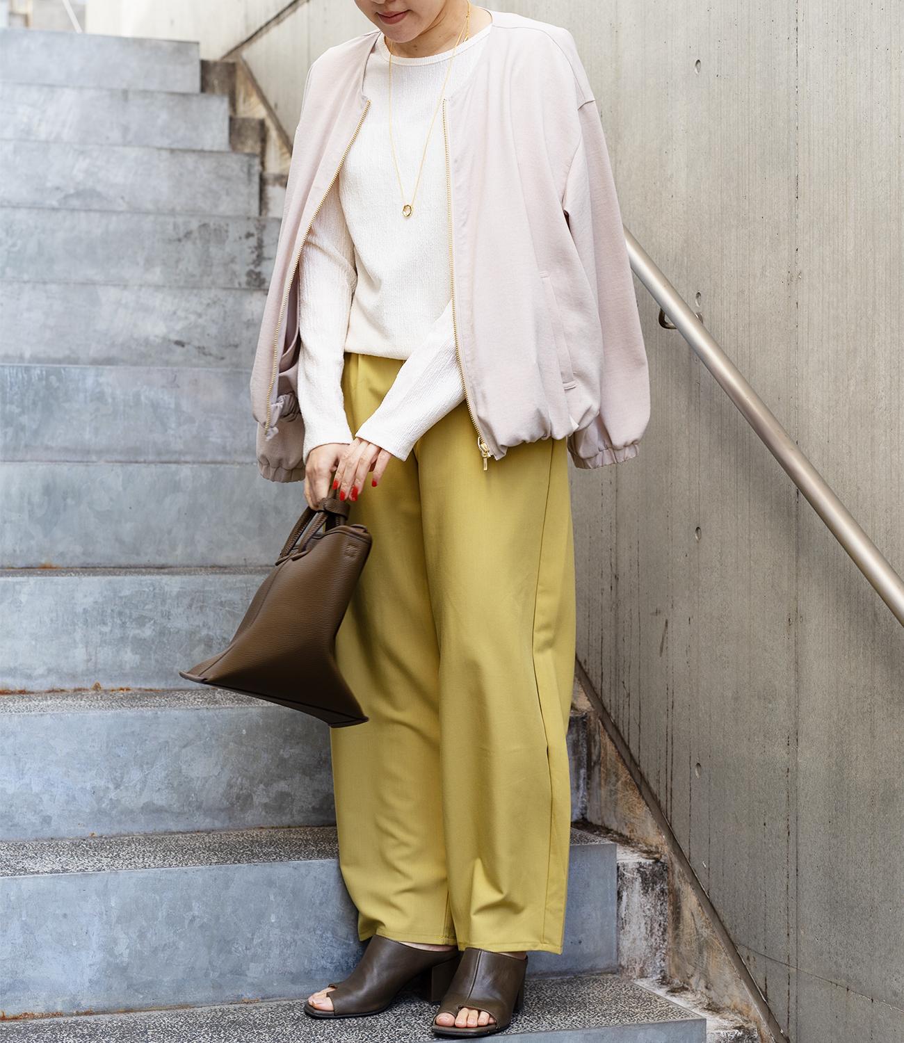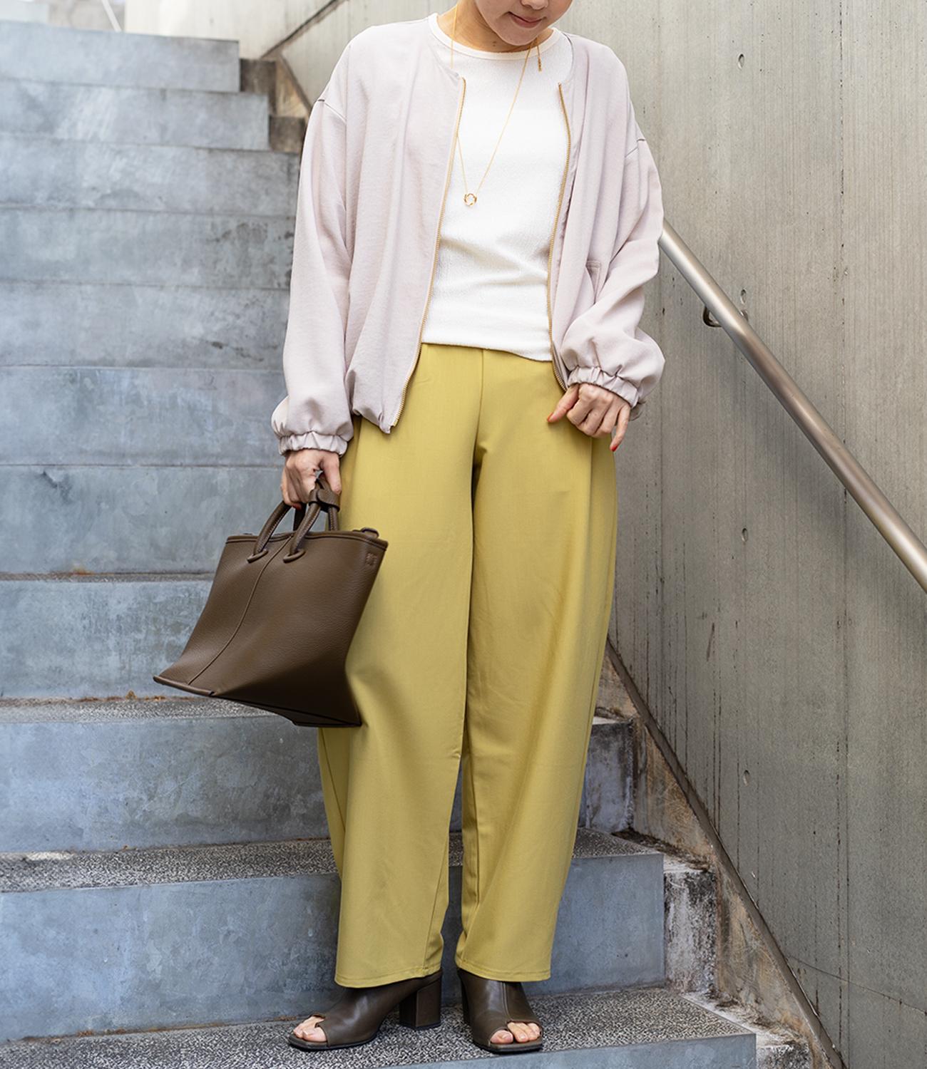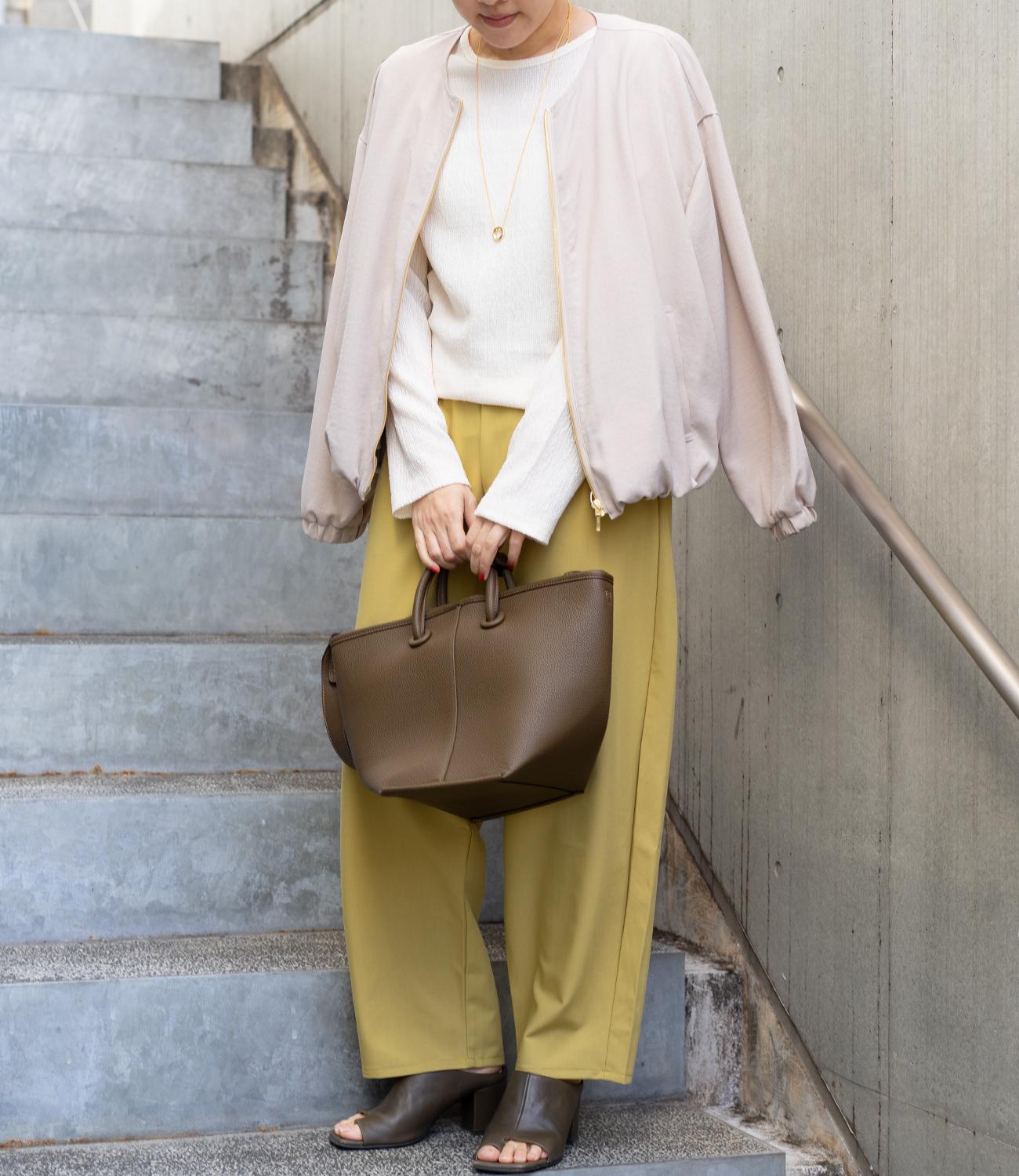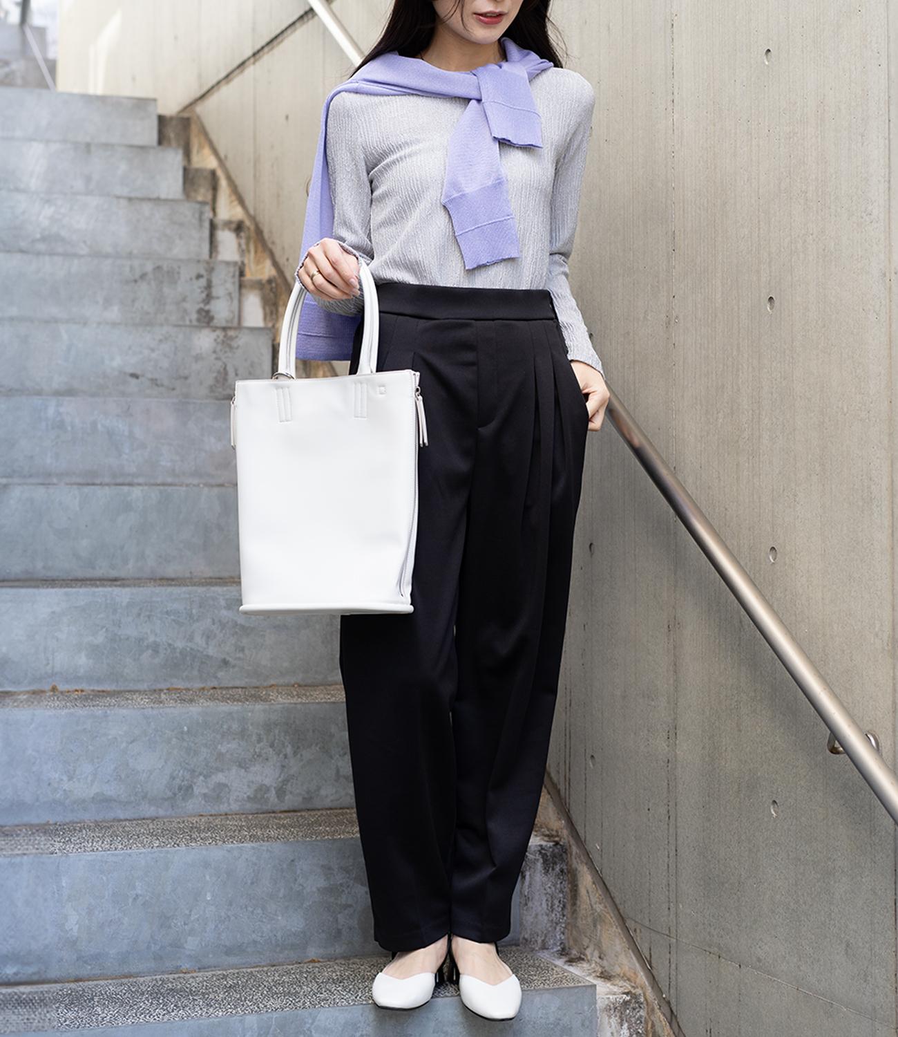 縦のラインを強調してくれる表面感のある素材はボディラインをスリムに見せてくれます。