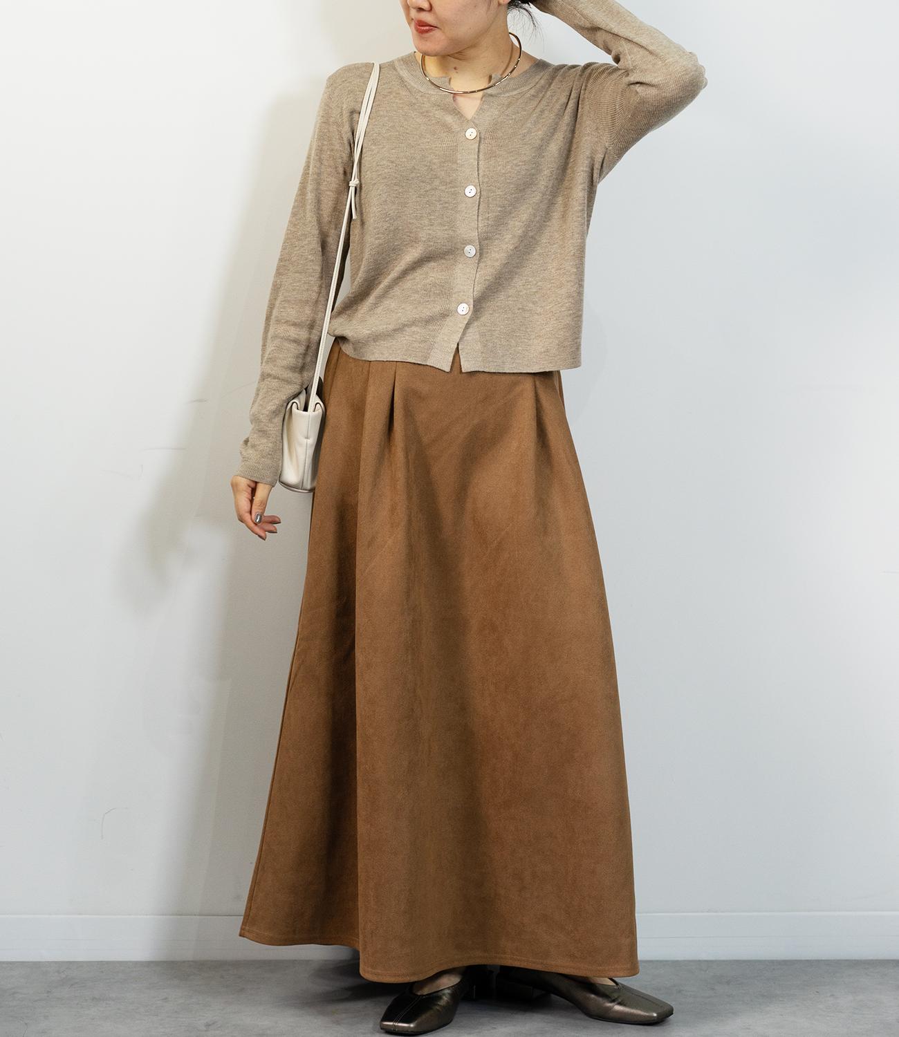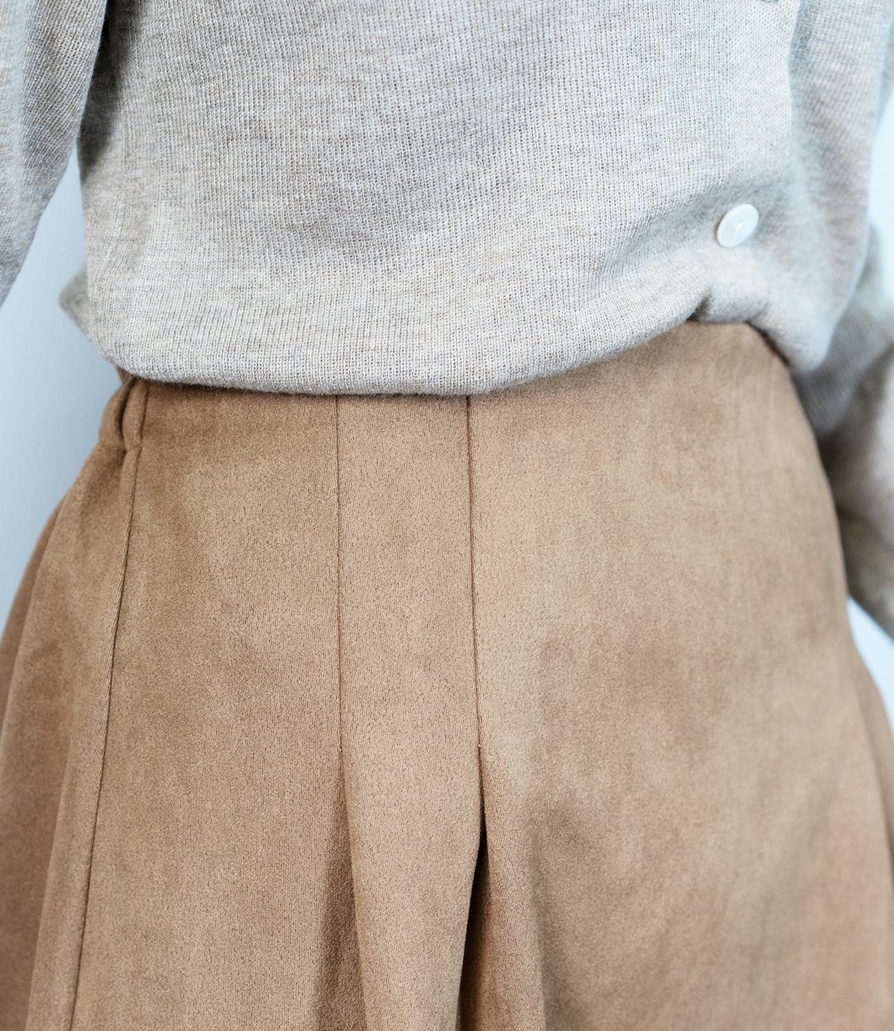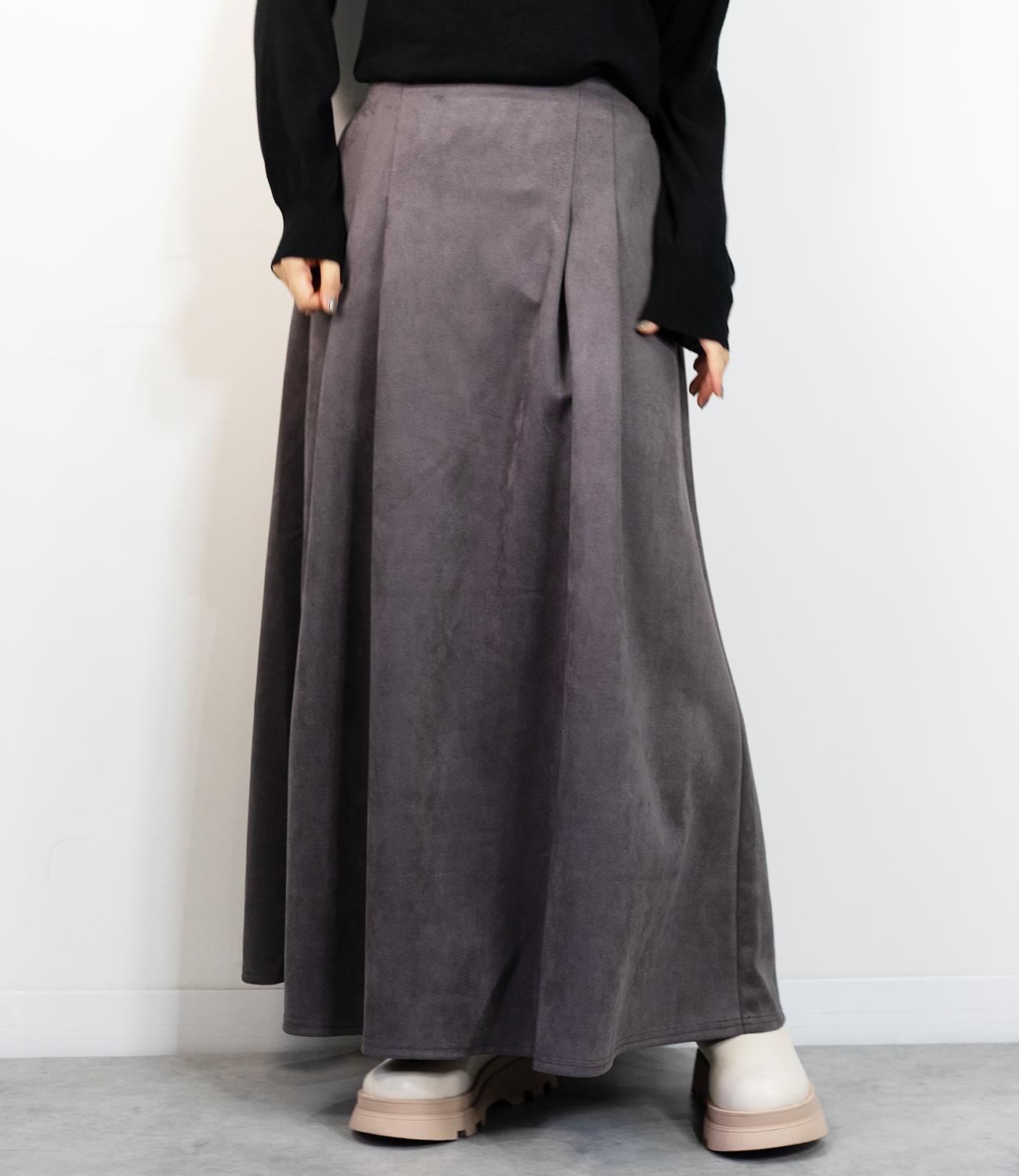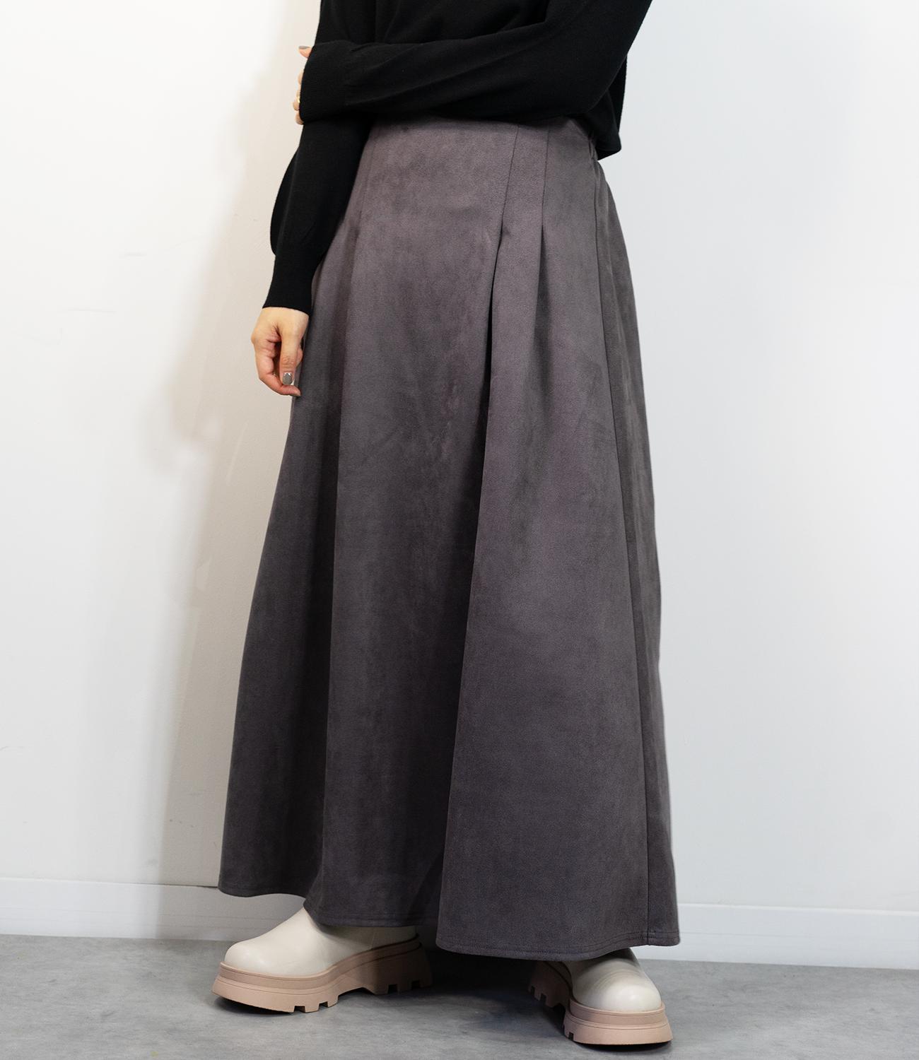 たっぷりとした分量感で上品に揺れる、フレアシルエットのスエード調スカート。