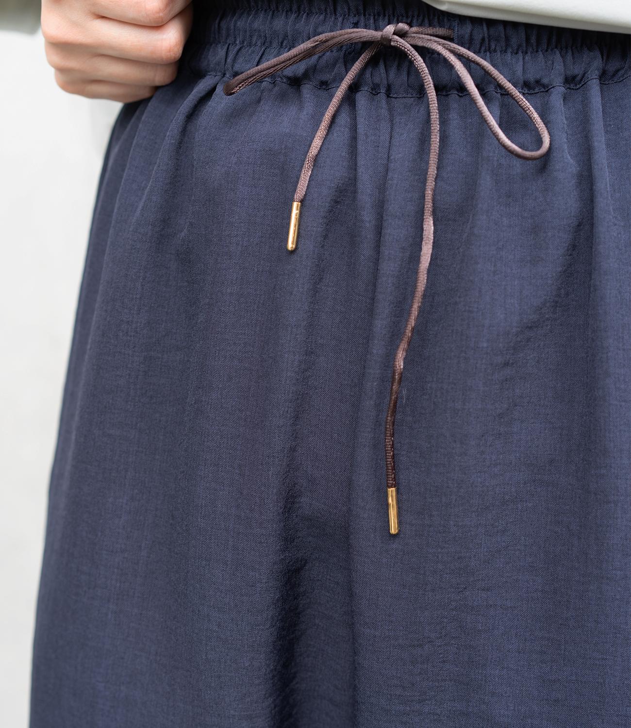 ウエストはゴム・ドローコードを採用。タックインスタイルでも野暮ったくならないのが嬉しいポイント。