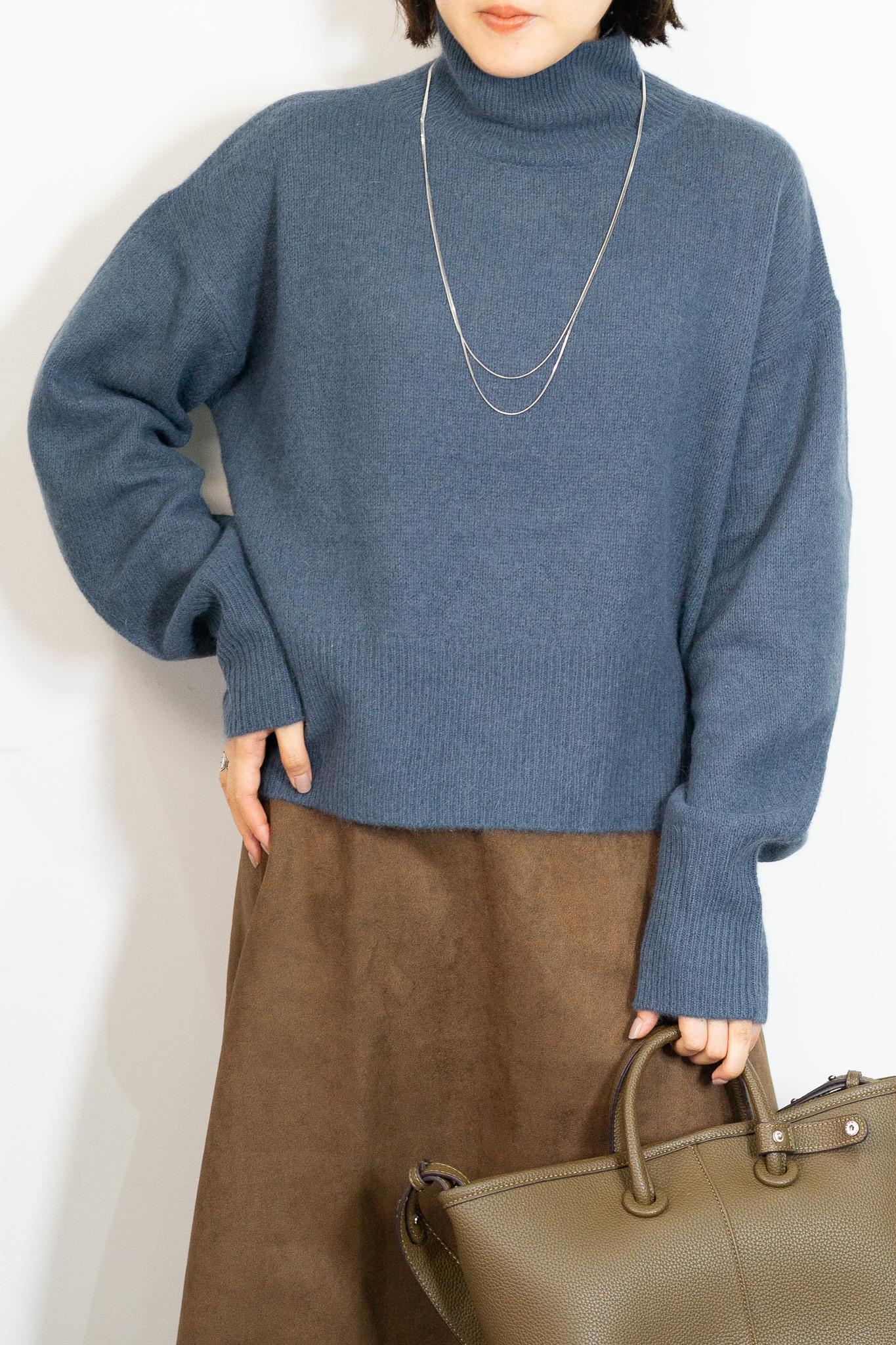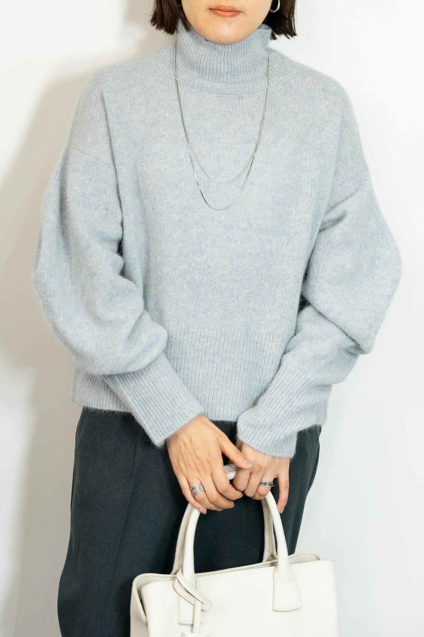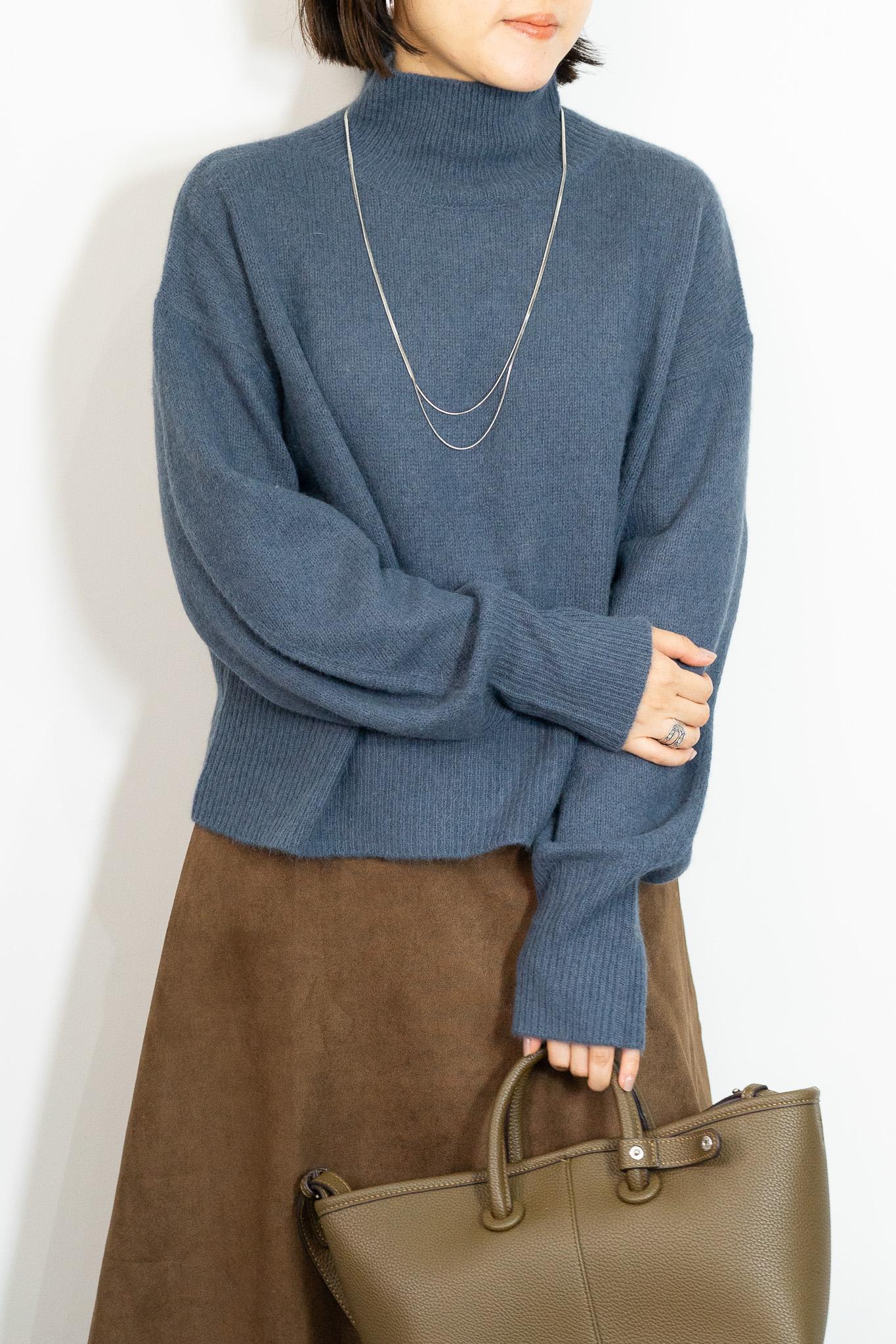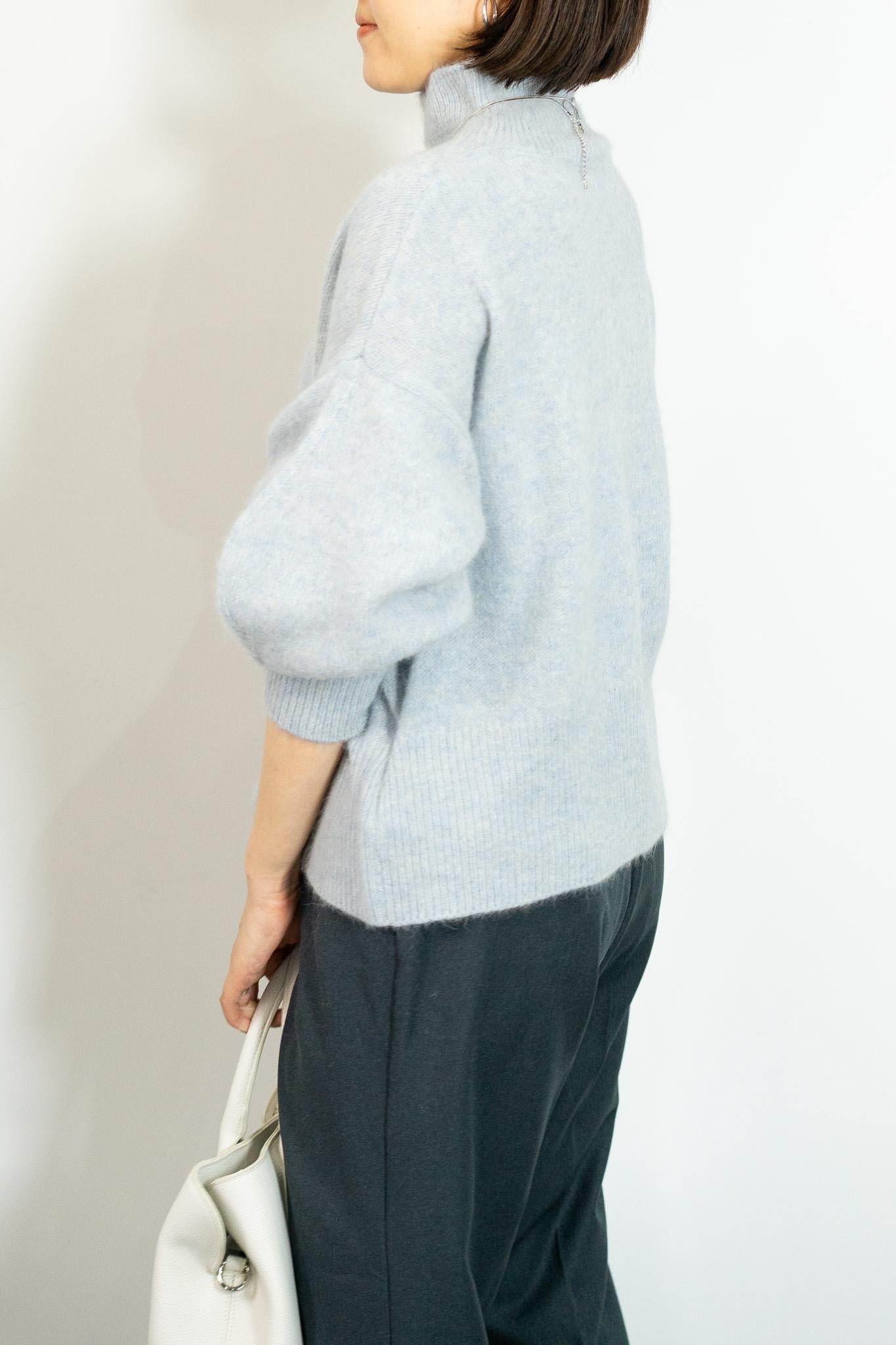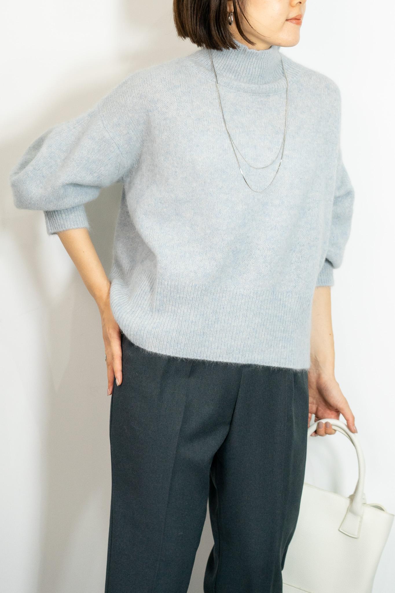 フォックス混のふんわりとした風合いを生かしたボリュームスリーブプルオーバー。