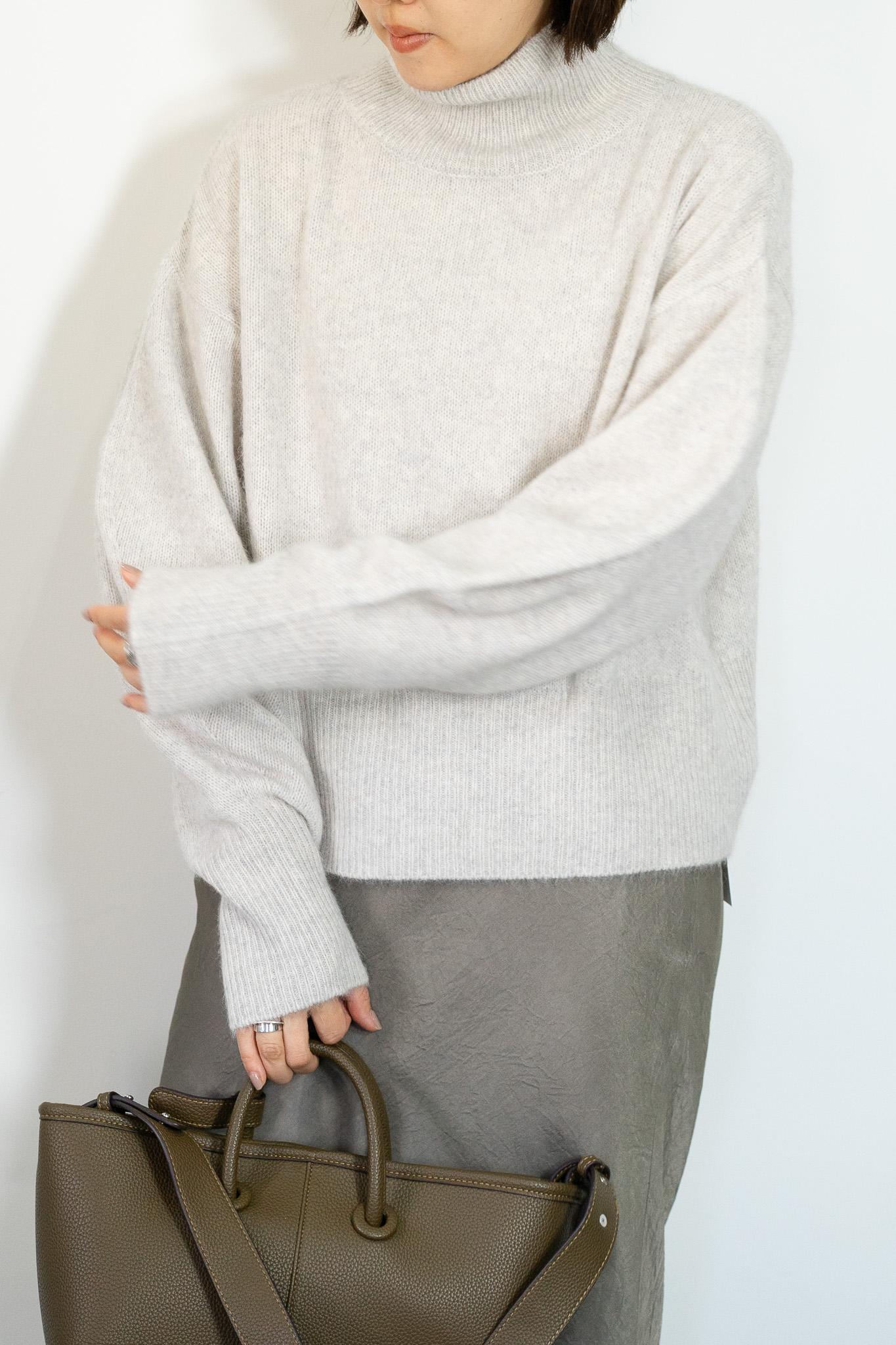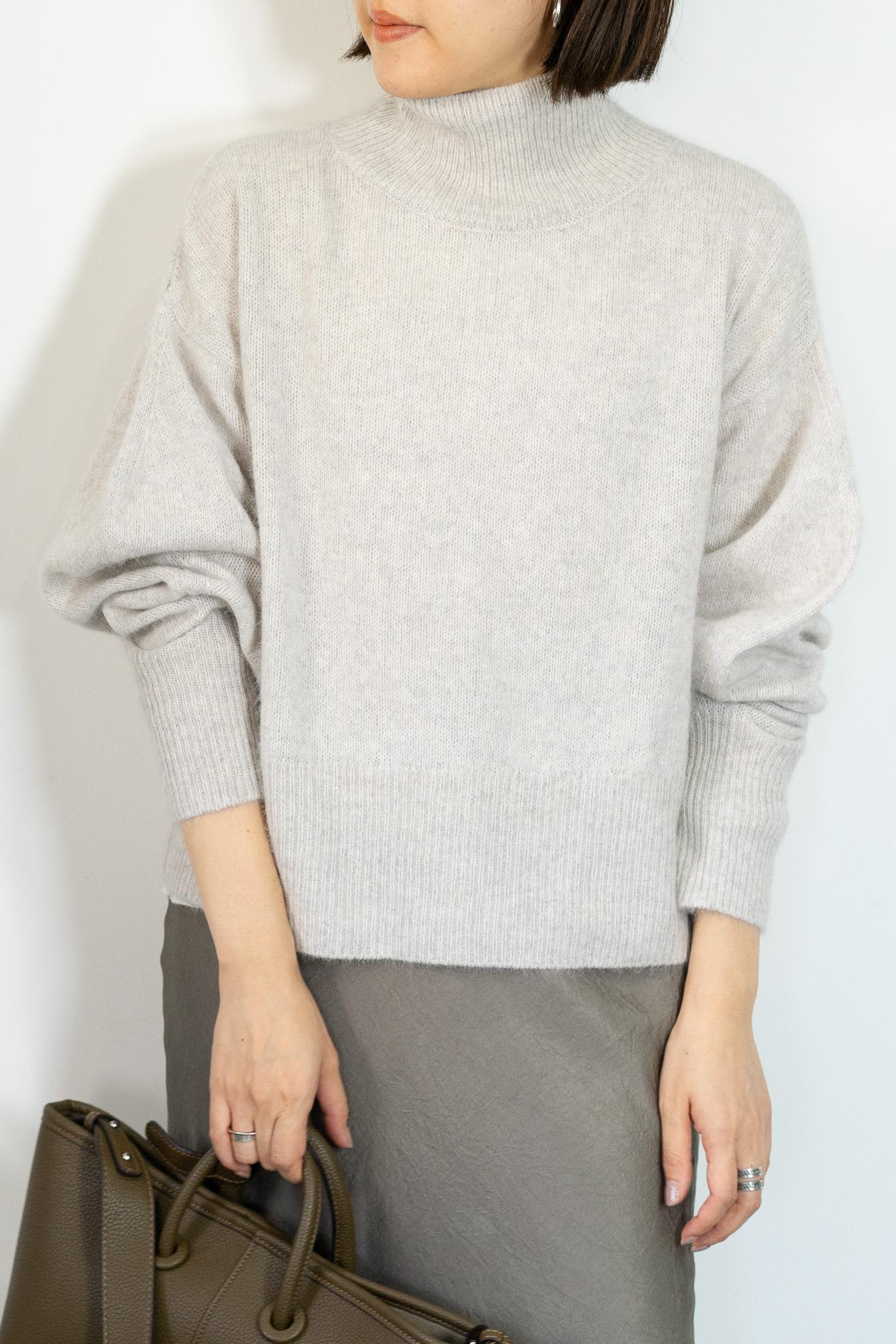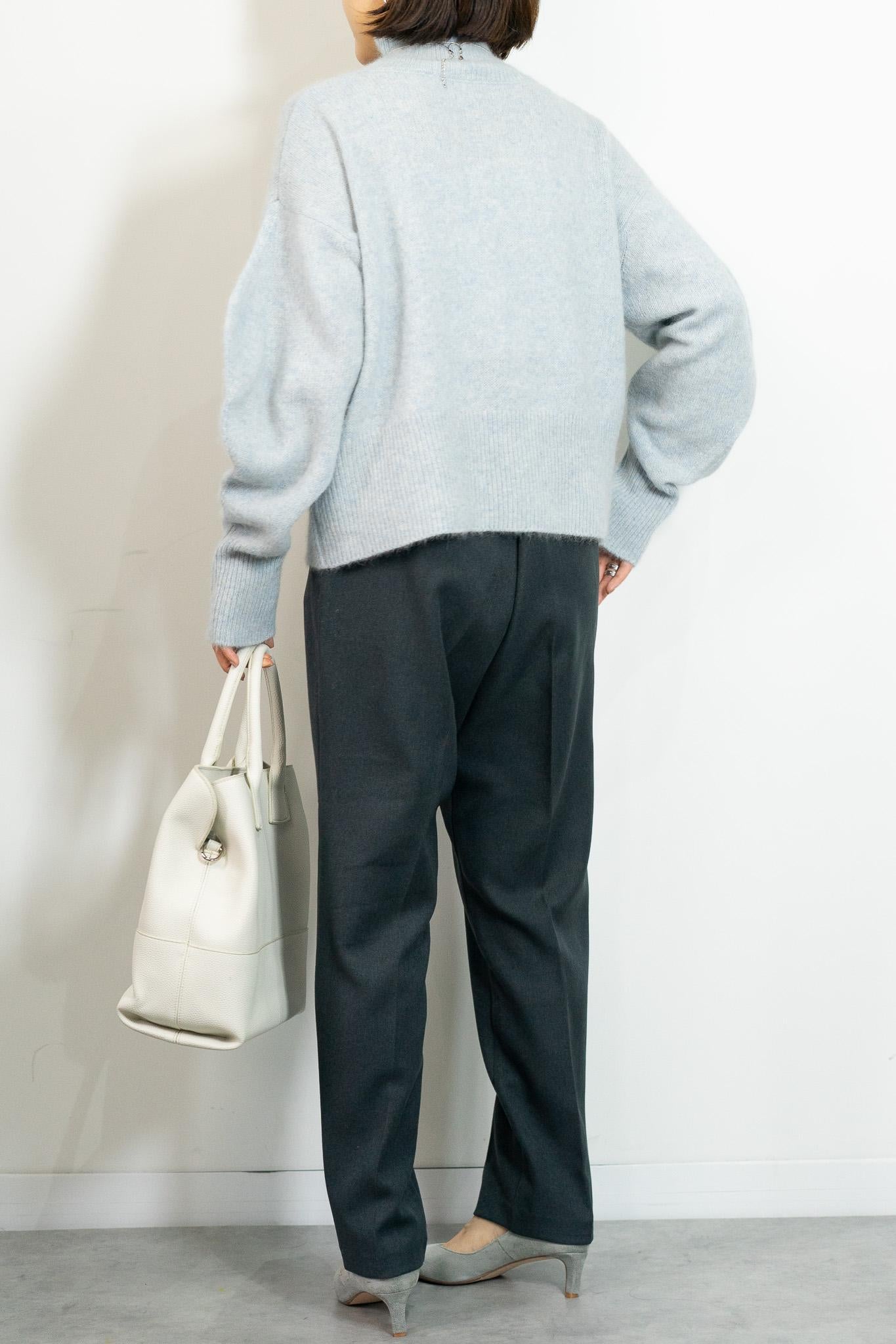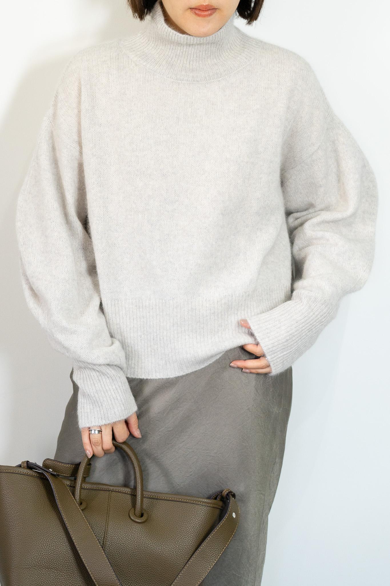 フォックス混のふんわりとした風合いを生かしたボリュームスリーブプルオーバー。