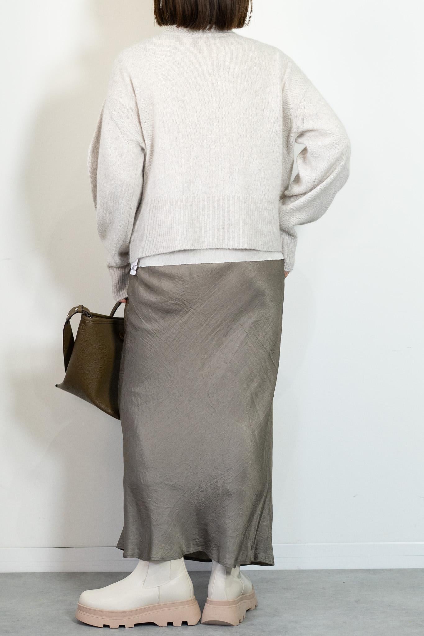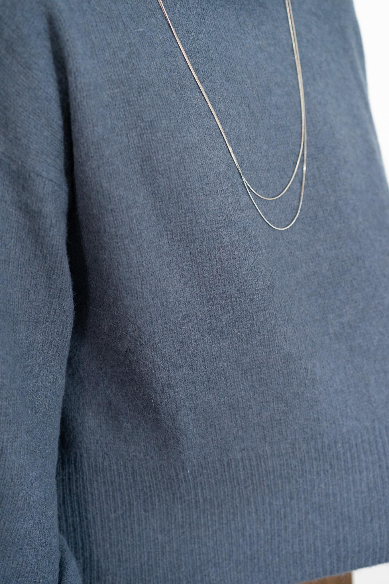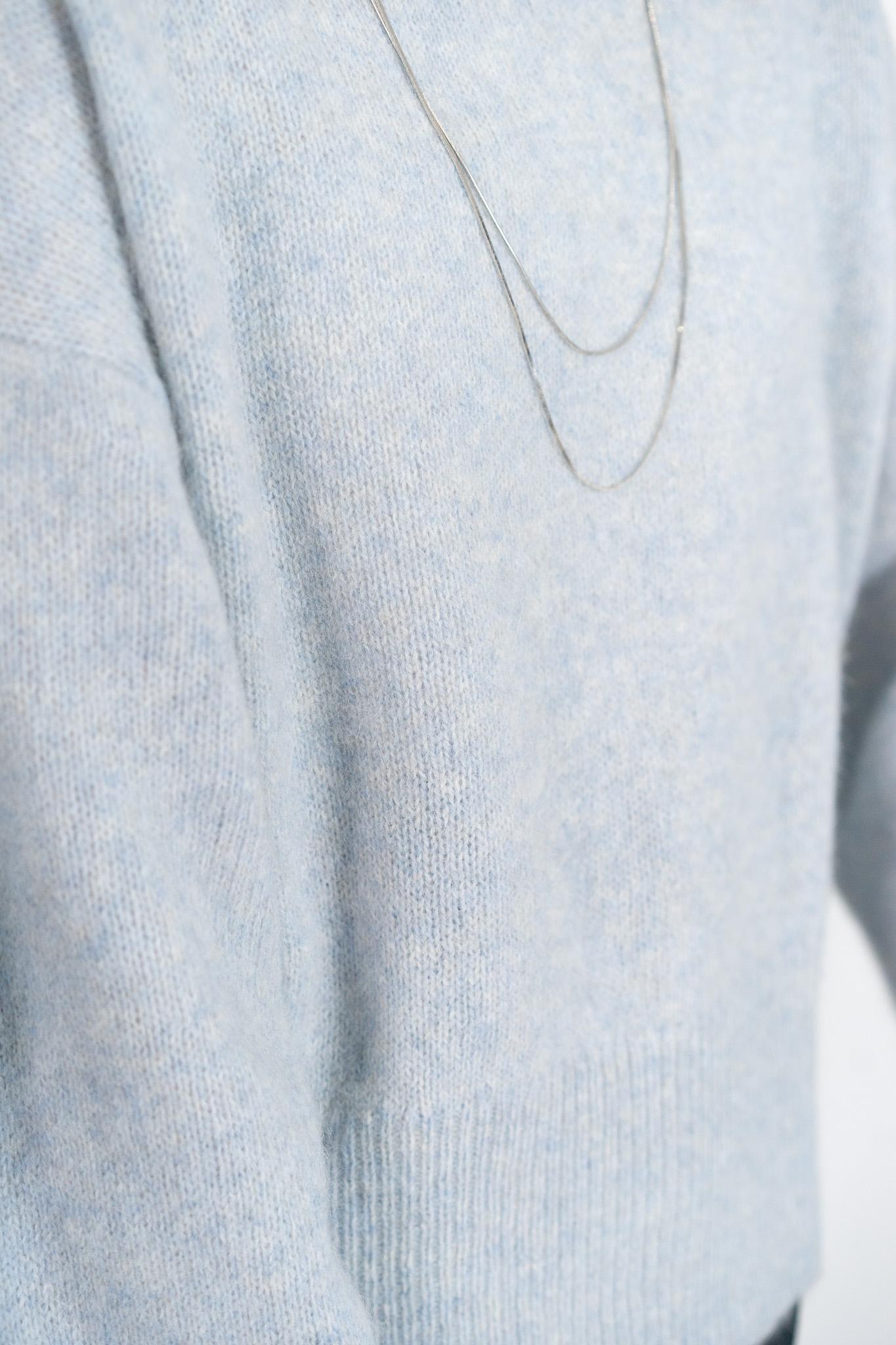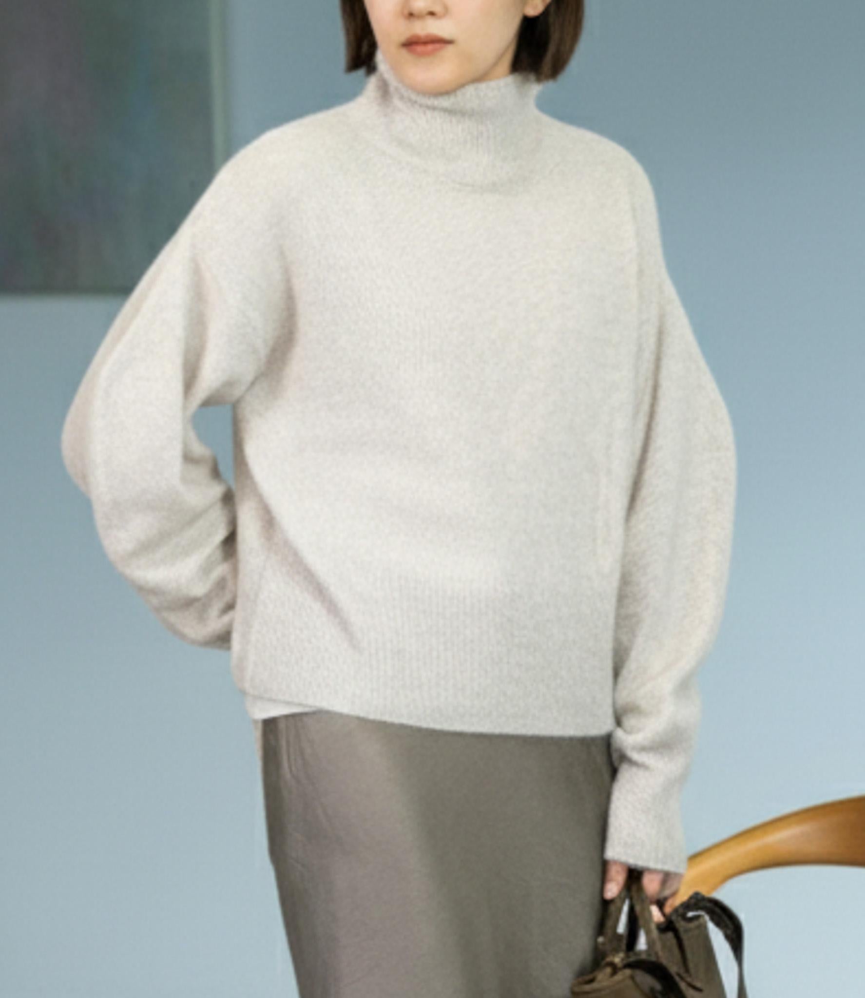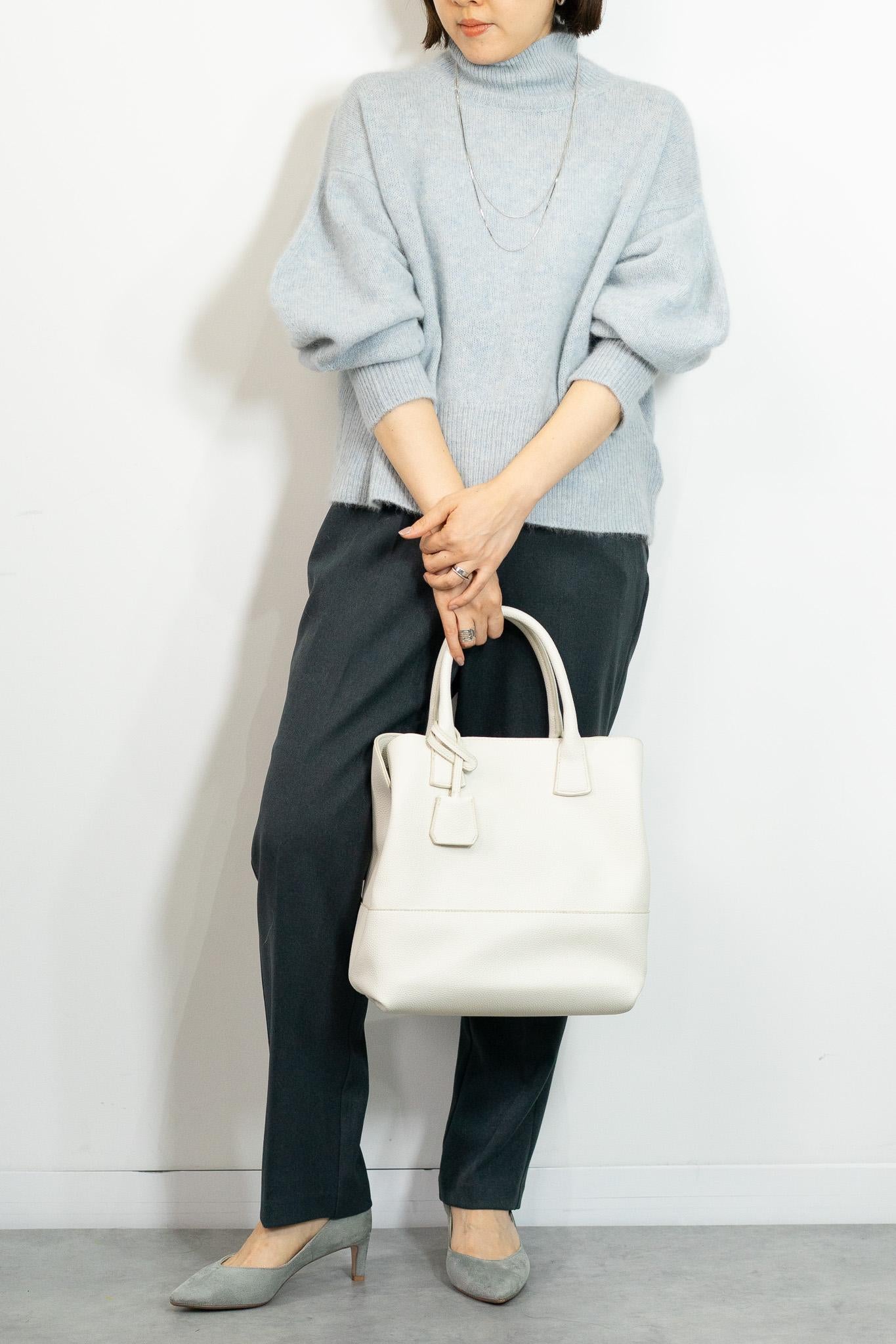 フォックス混のふんわりとした風合いを生かしたボリュームスリーブプルオーバー。