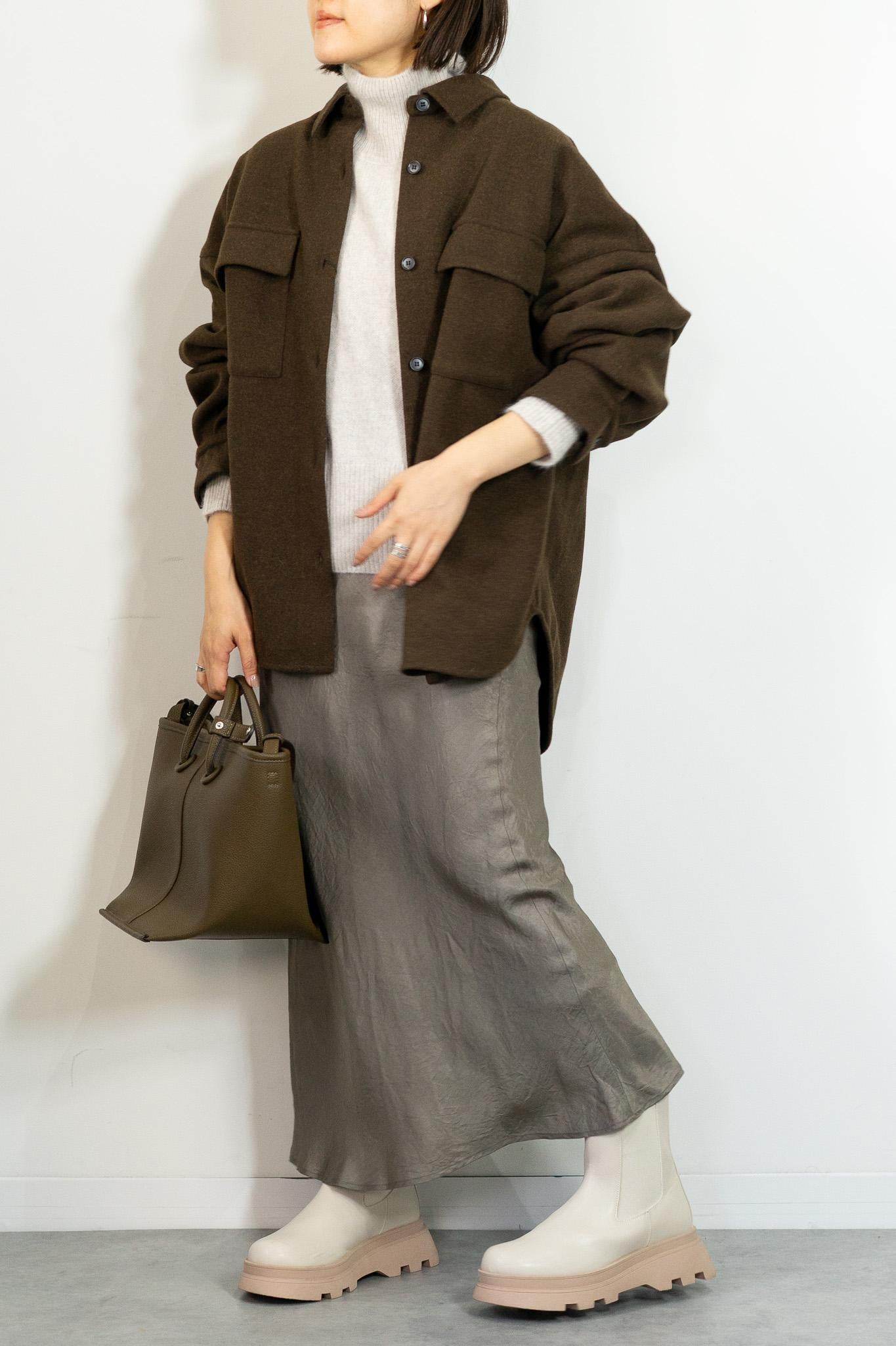 着用時は、毛が付着しても目立ちにくい同系色のインナーやボトムスを合わせていただくと安心です。素材の特性としてご理解くださいませ。