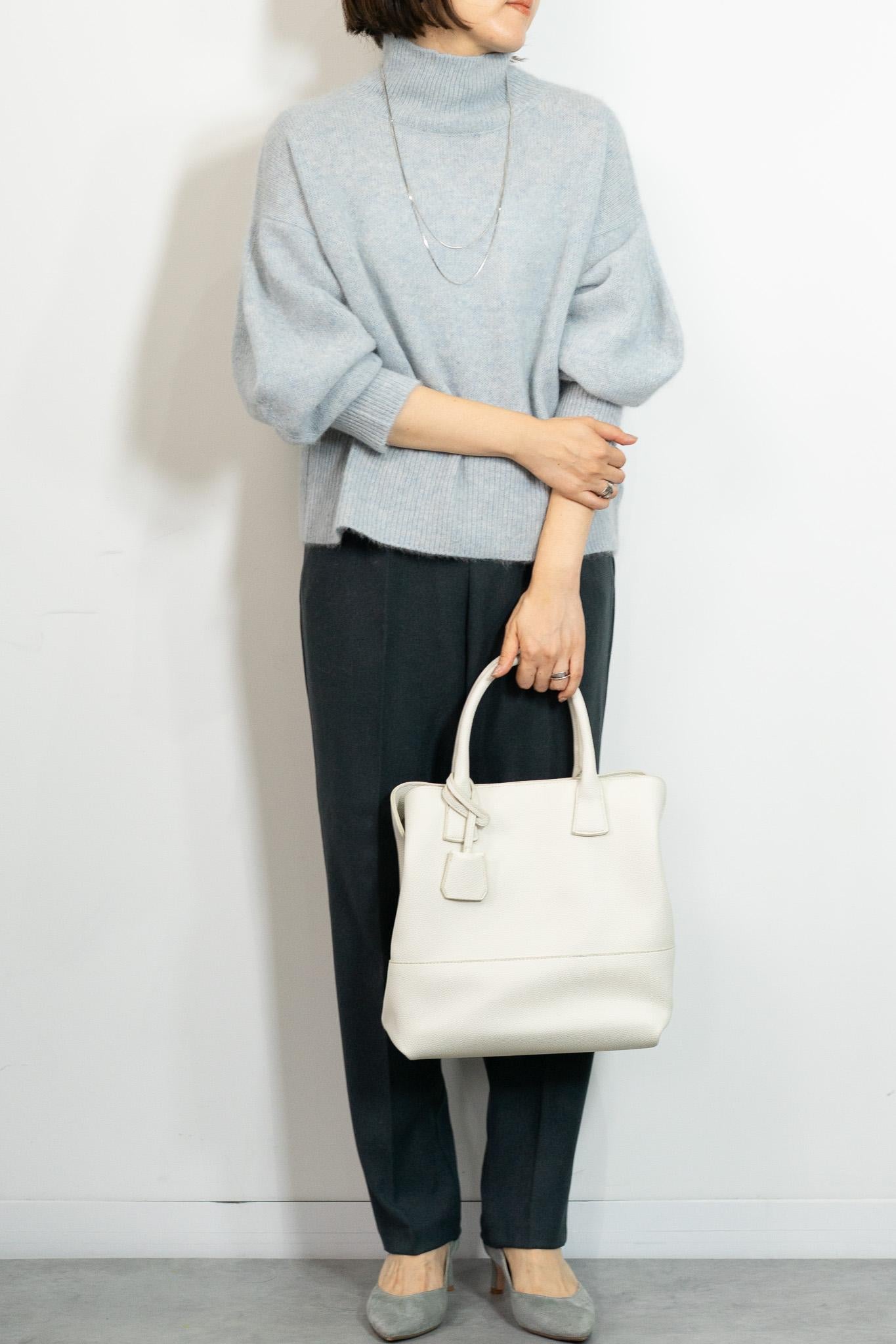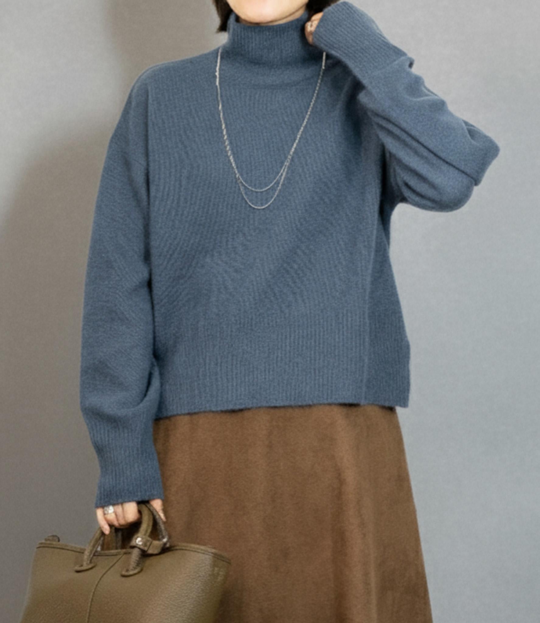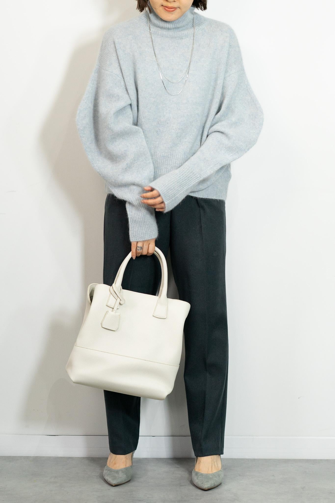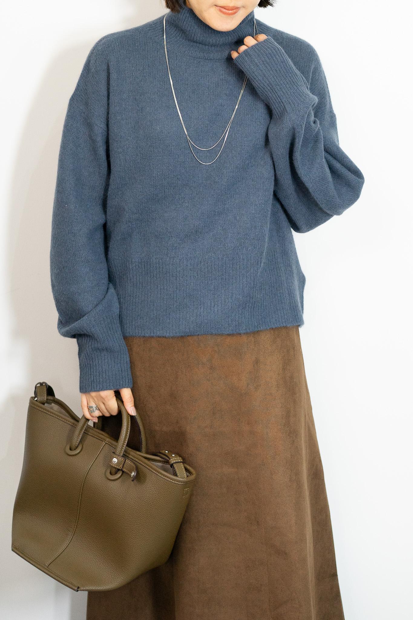 タートルネックは程よい高さで首まわりをやさしく包み込み、アクセサリーとの相性も抜群◎