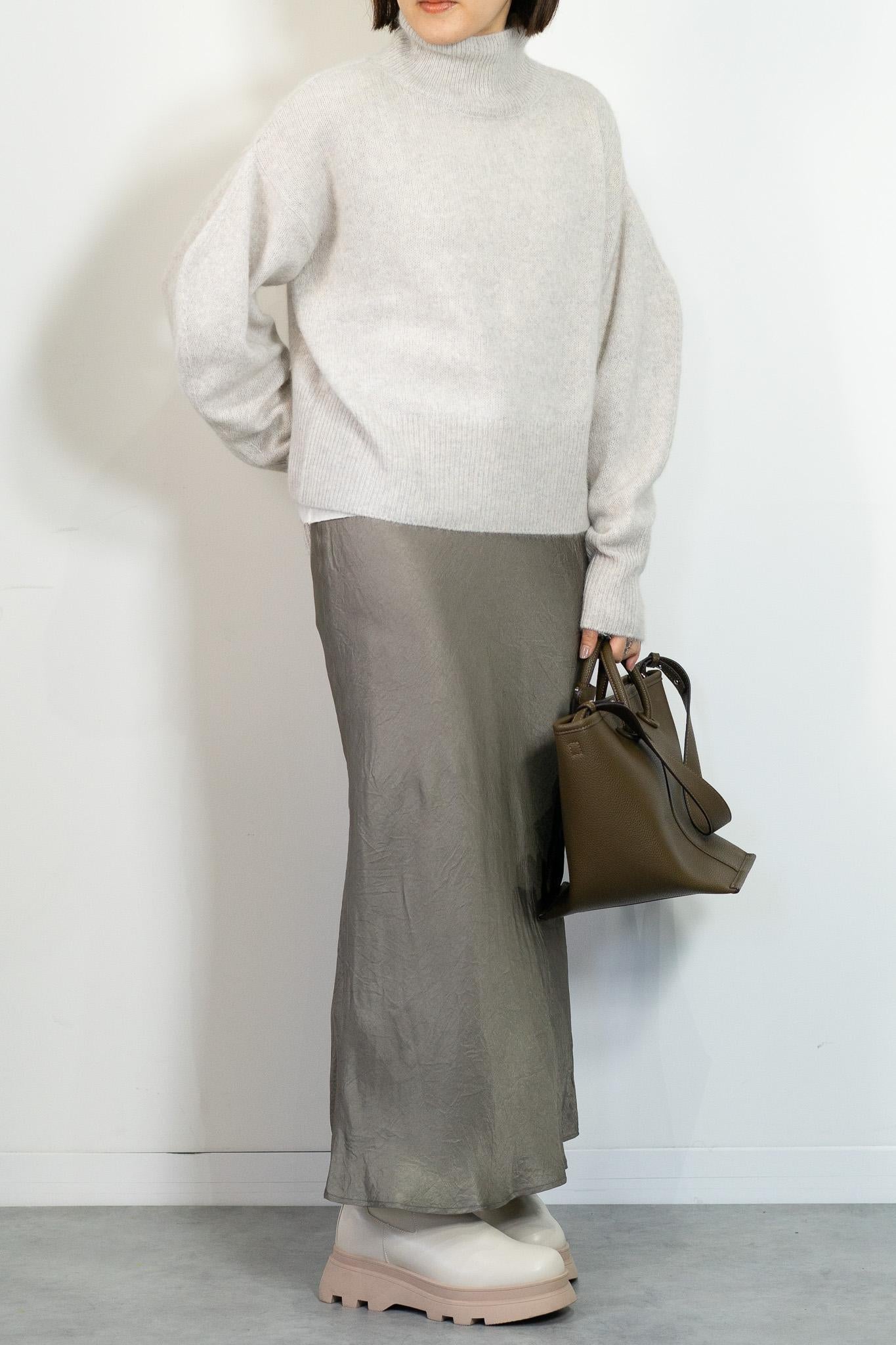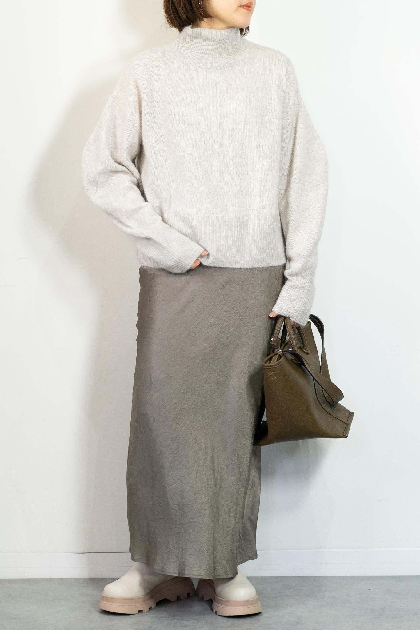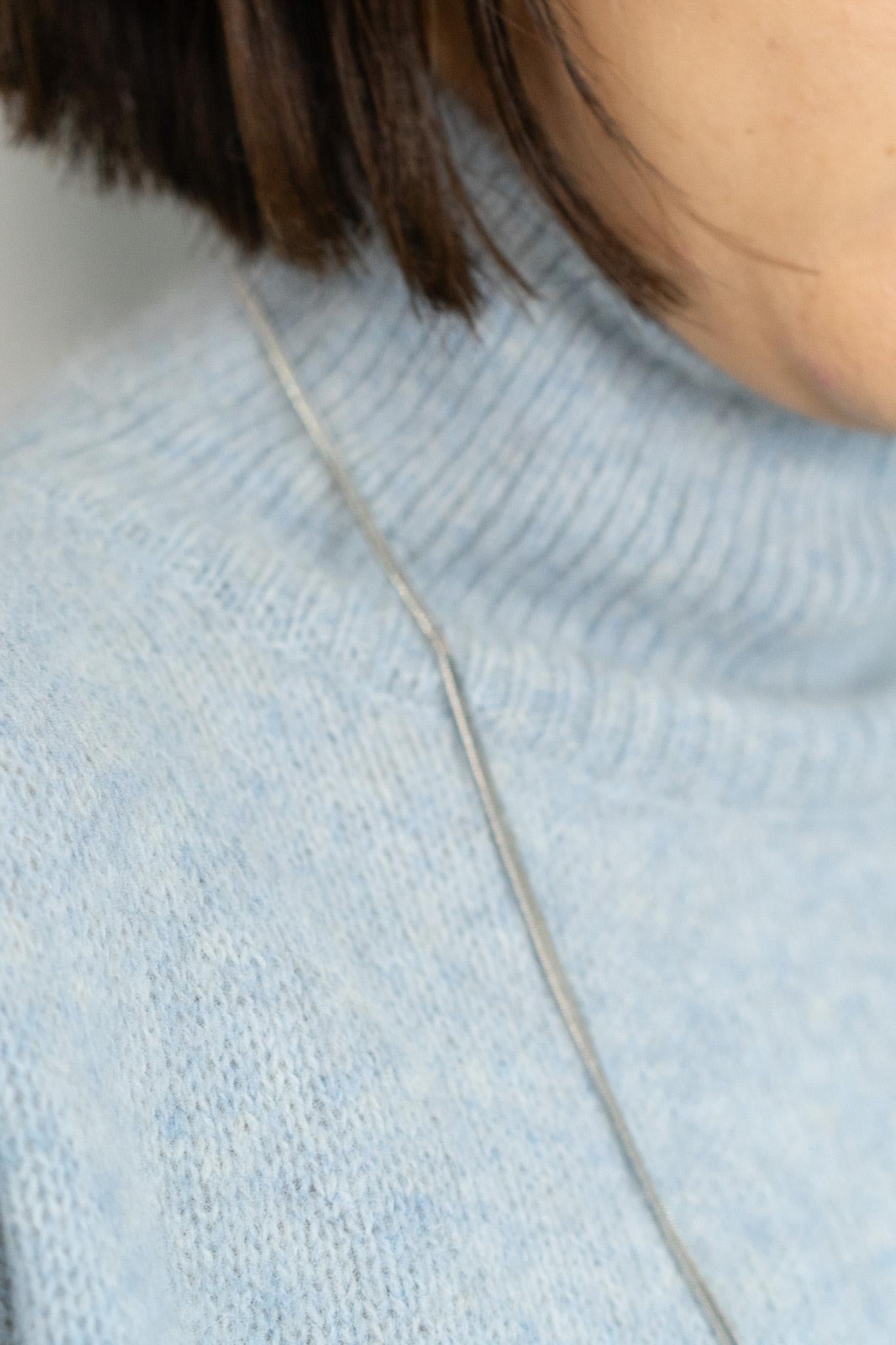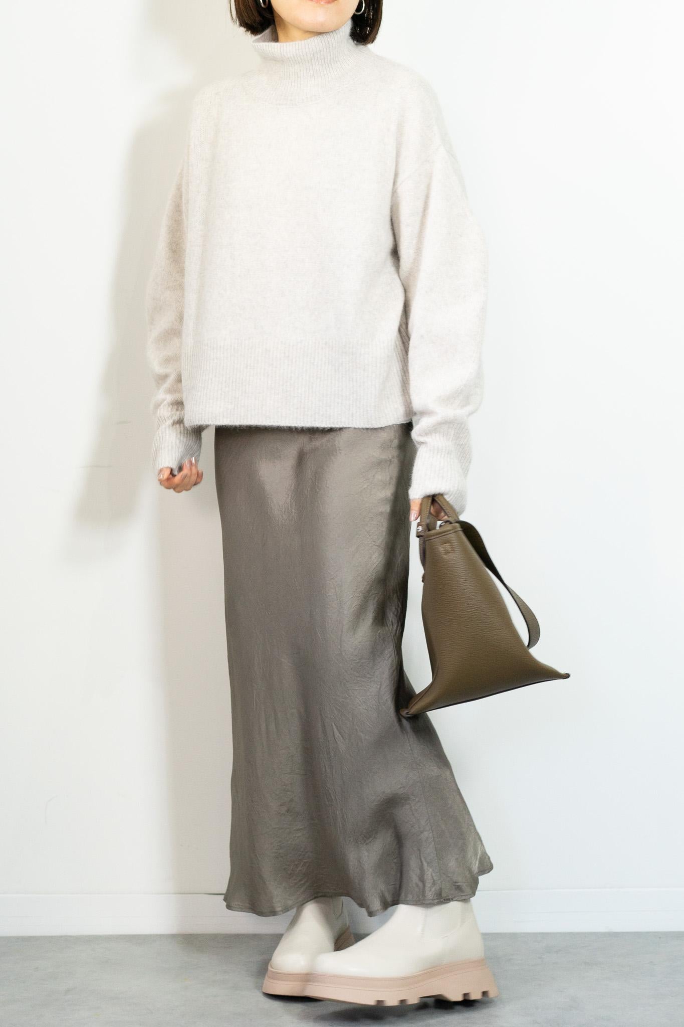 タートルネックは程よい高さで首まわりをやさしく包み込み、アクセサリーとの相性も抜群◎