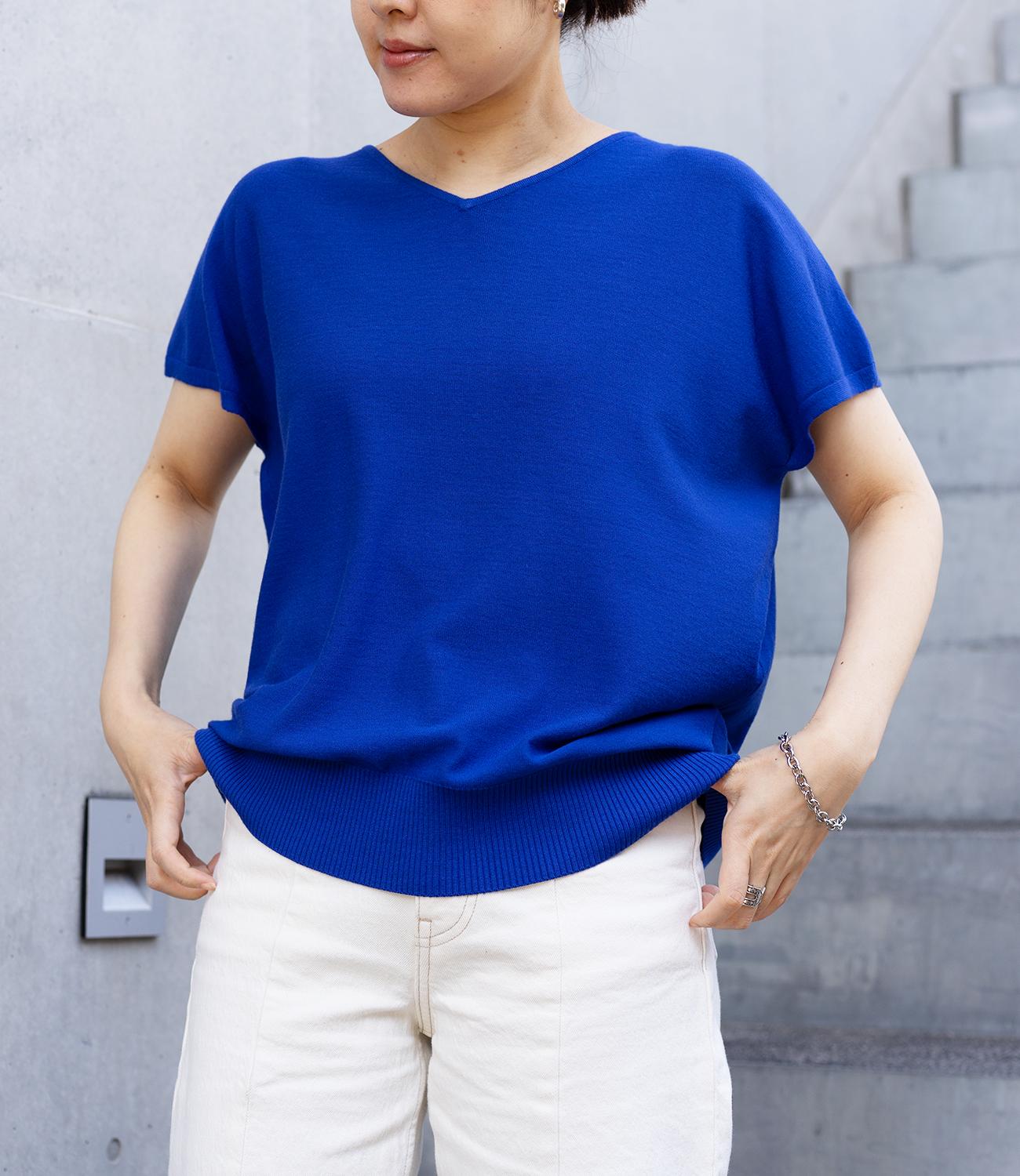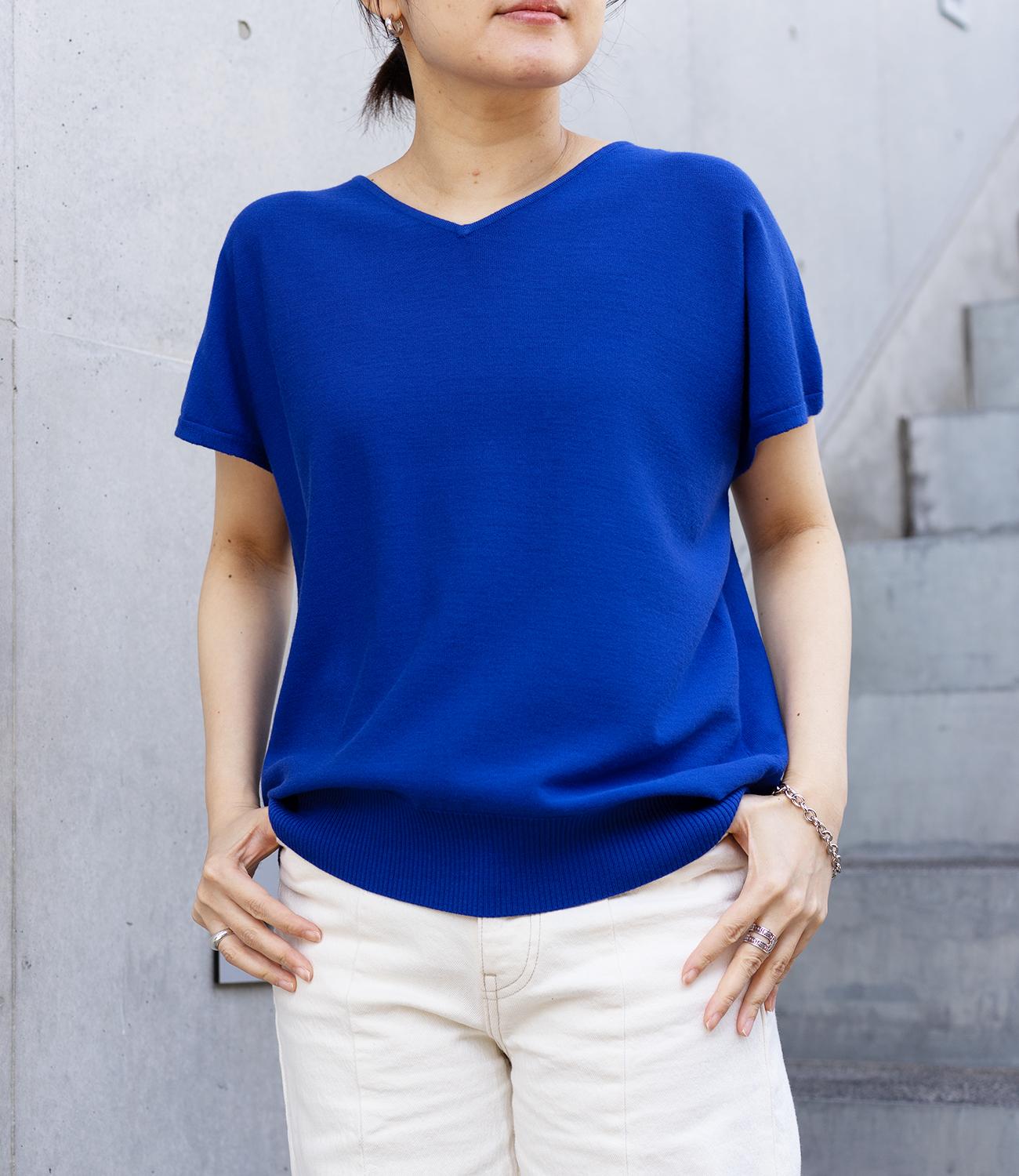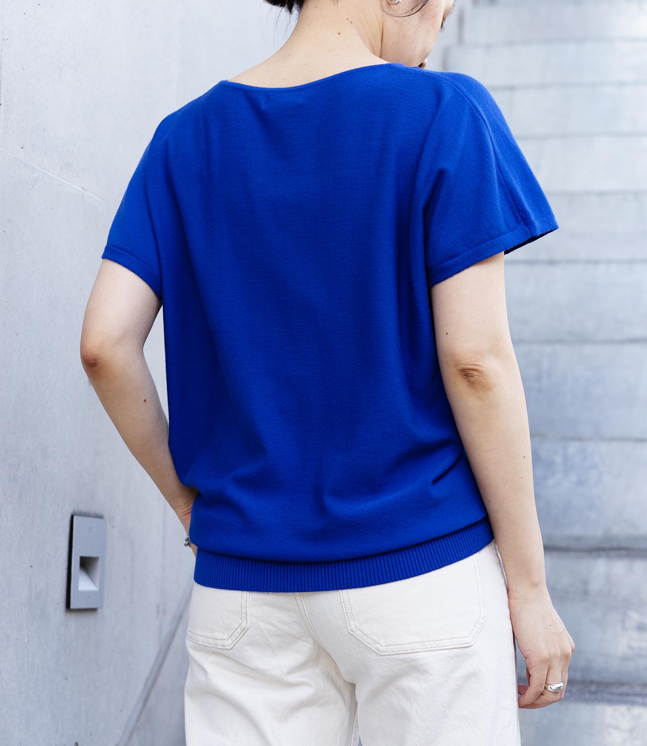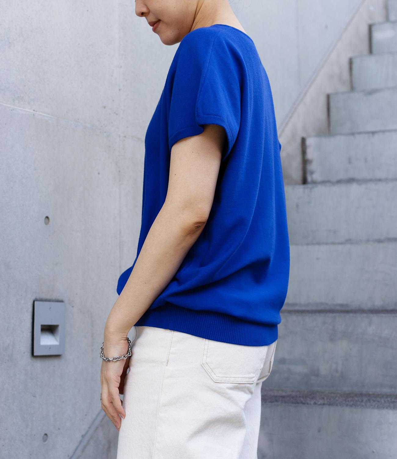 レーヨン混の落ち感の美しいハイゲージニット。柔らかい肌触りは夏場の暑い日にもストレスなくご着用いただける素材に。