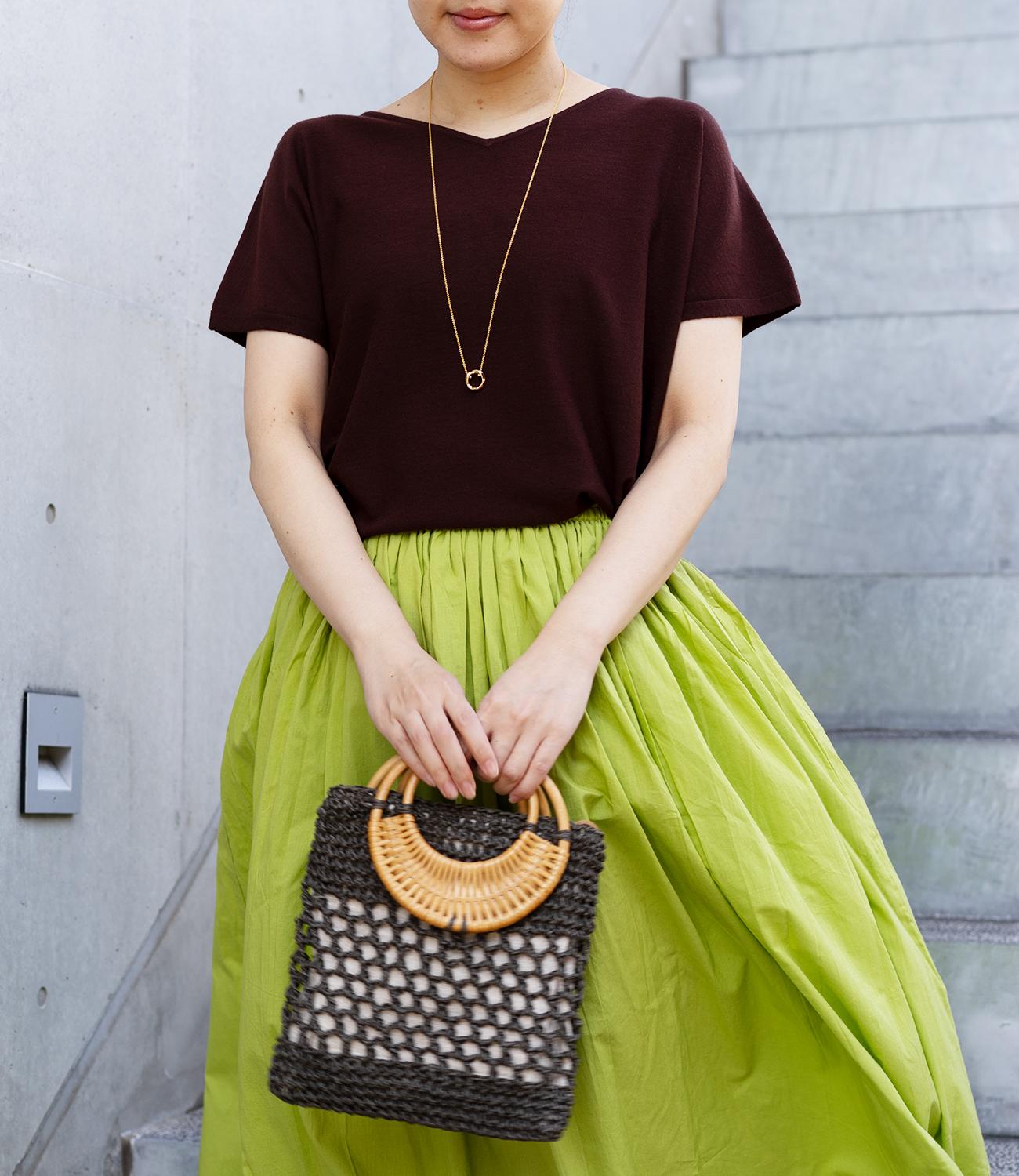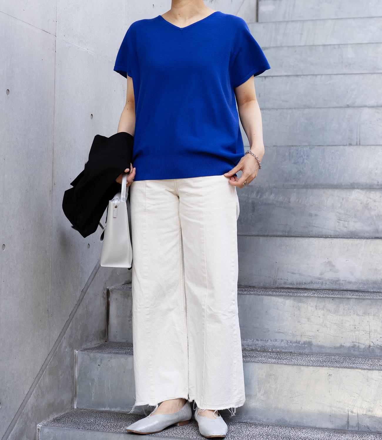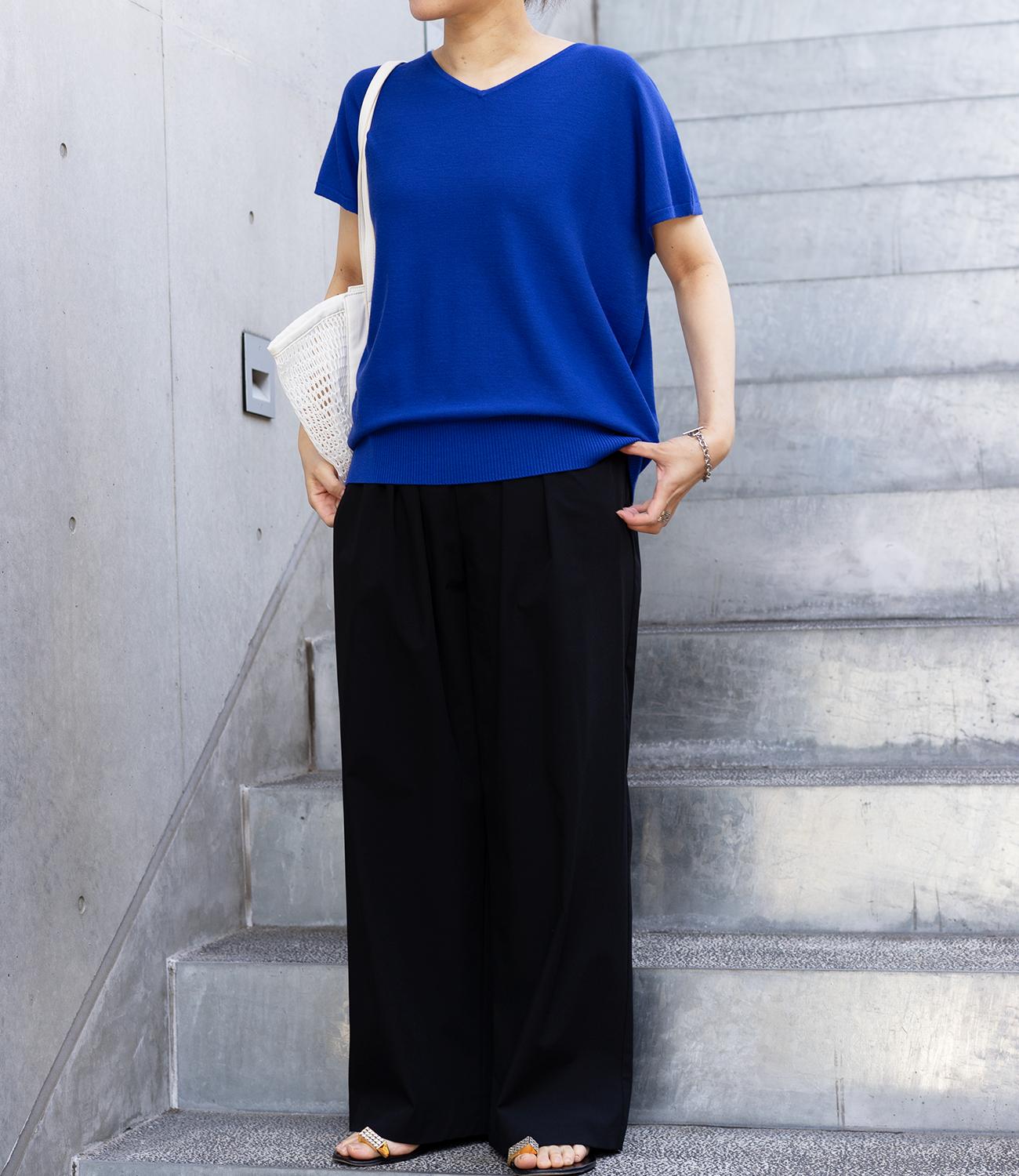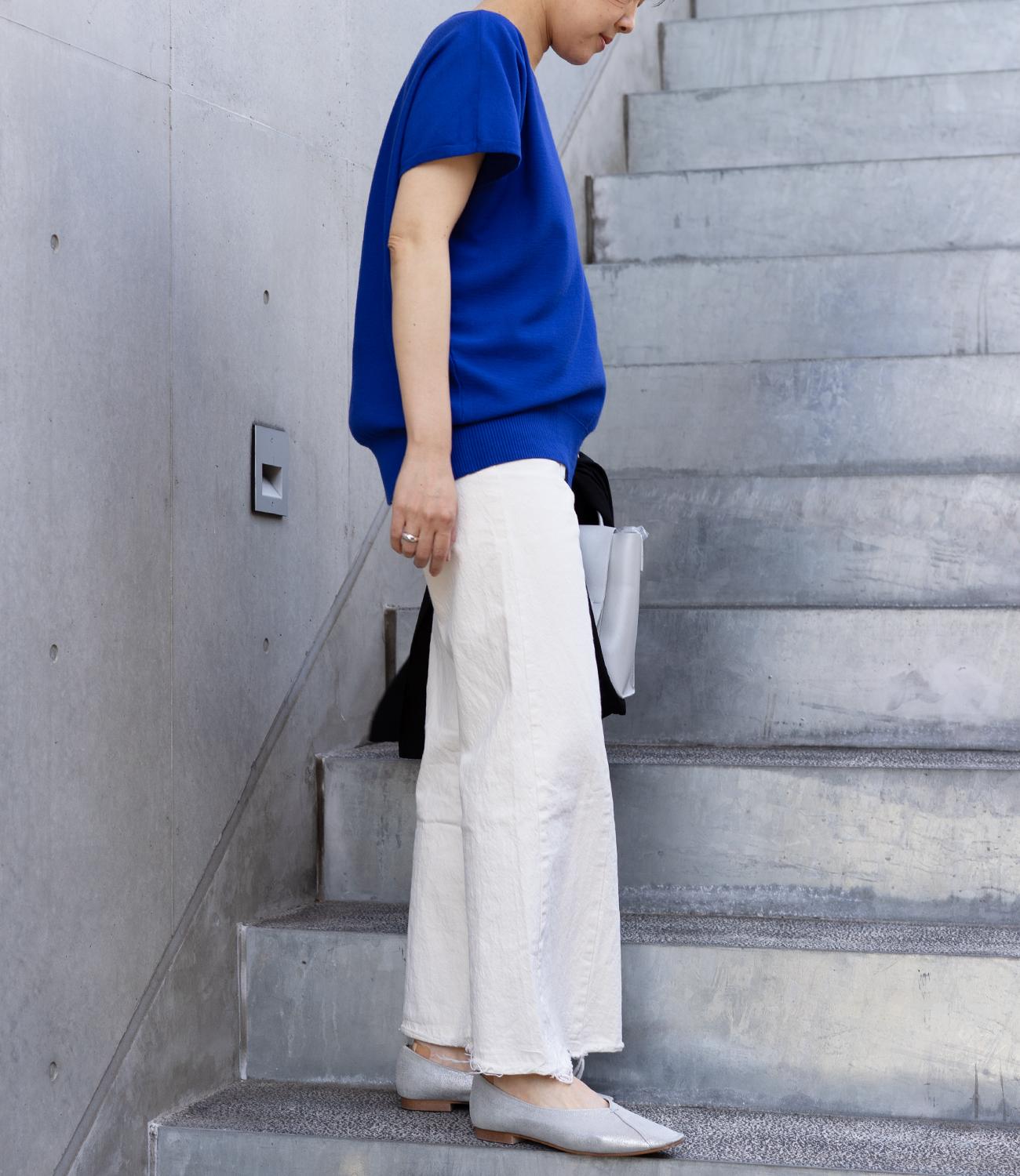 レーヨン混の落ち感の美しいハイゲージニット。柔らかい肌触りは夏場の暑い日にもストレスなくご着用いただける素材に。