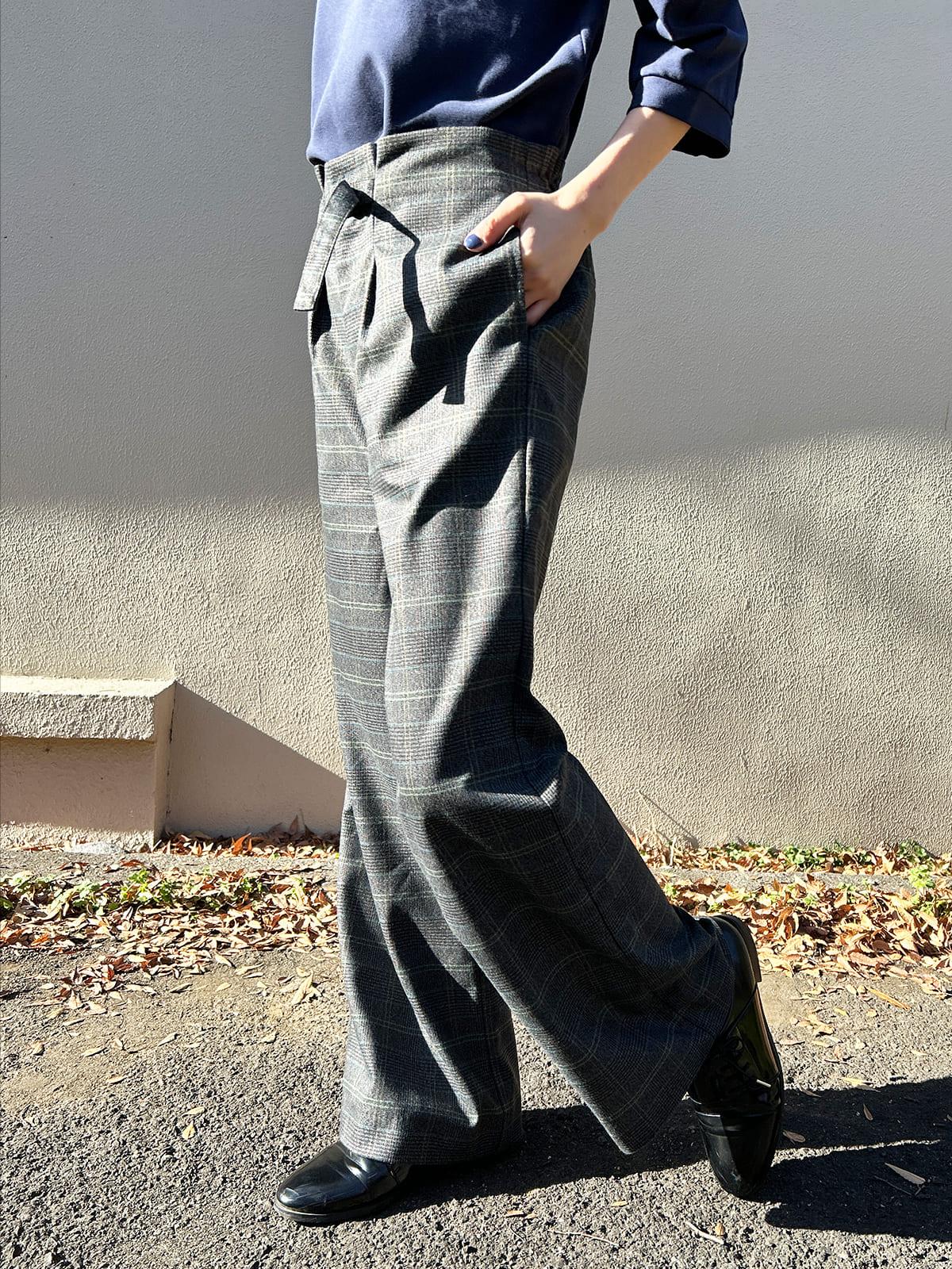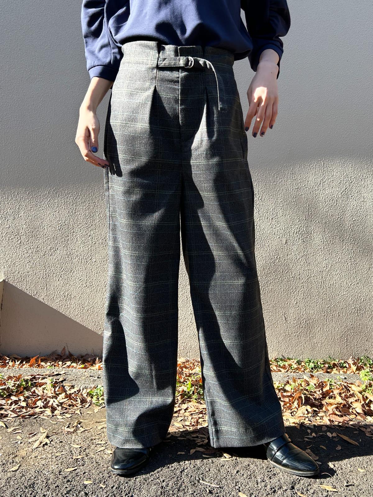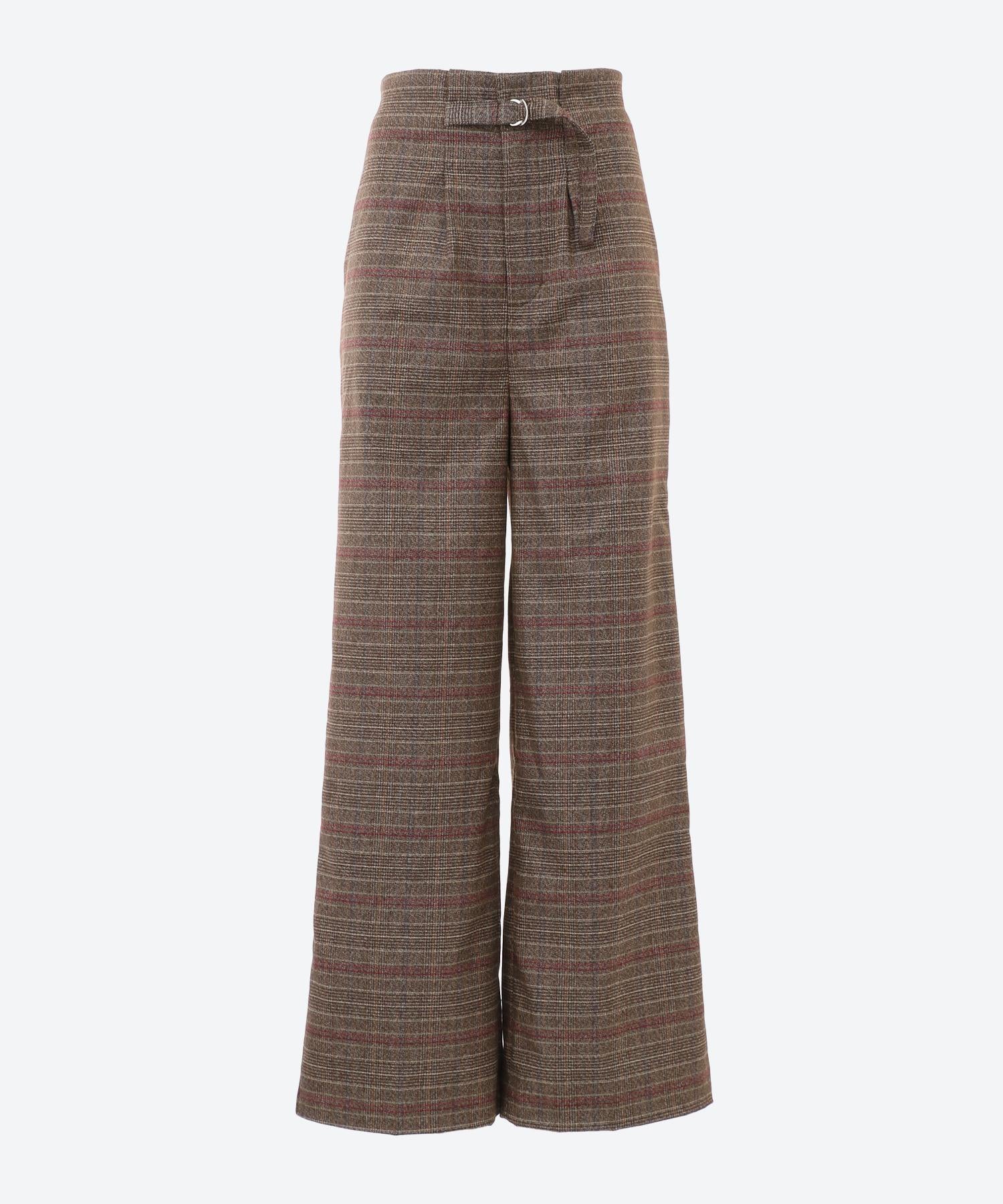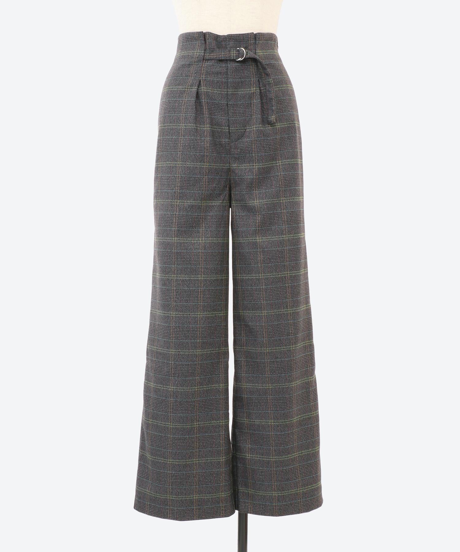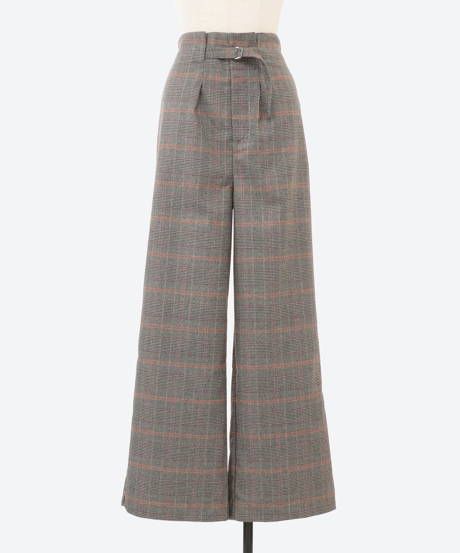 ワイドチェック柄ベルトパンツ
