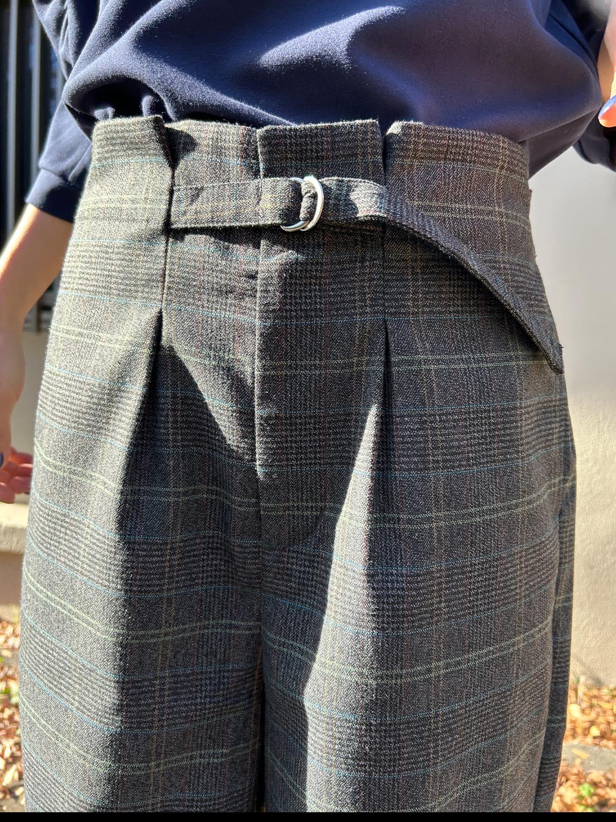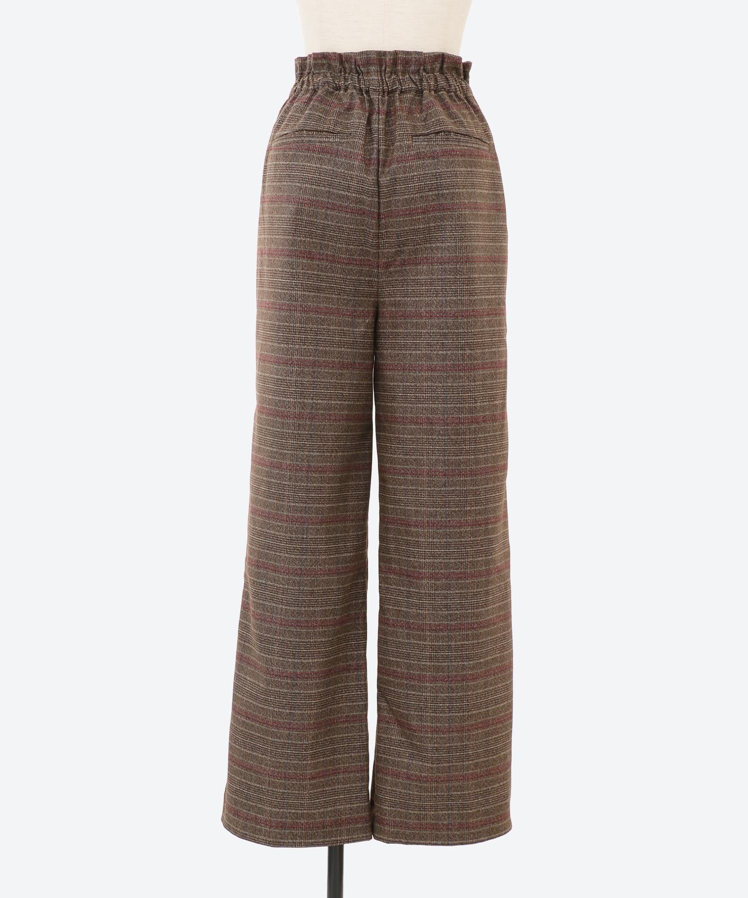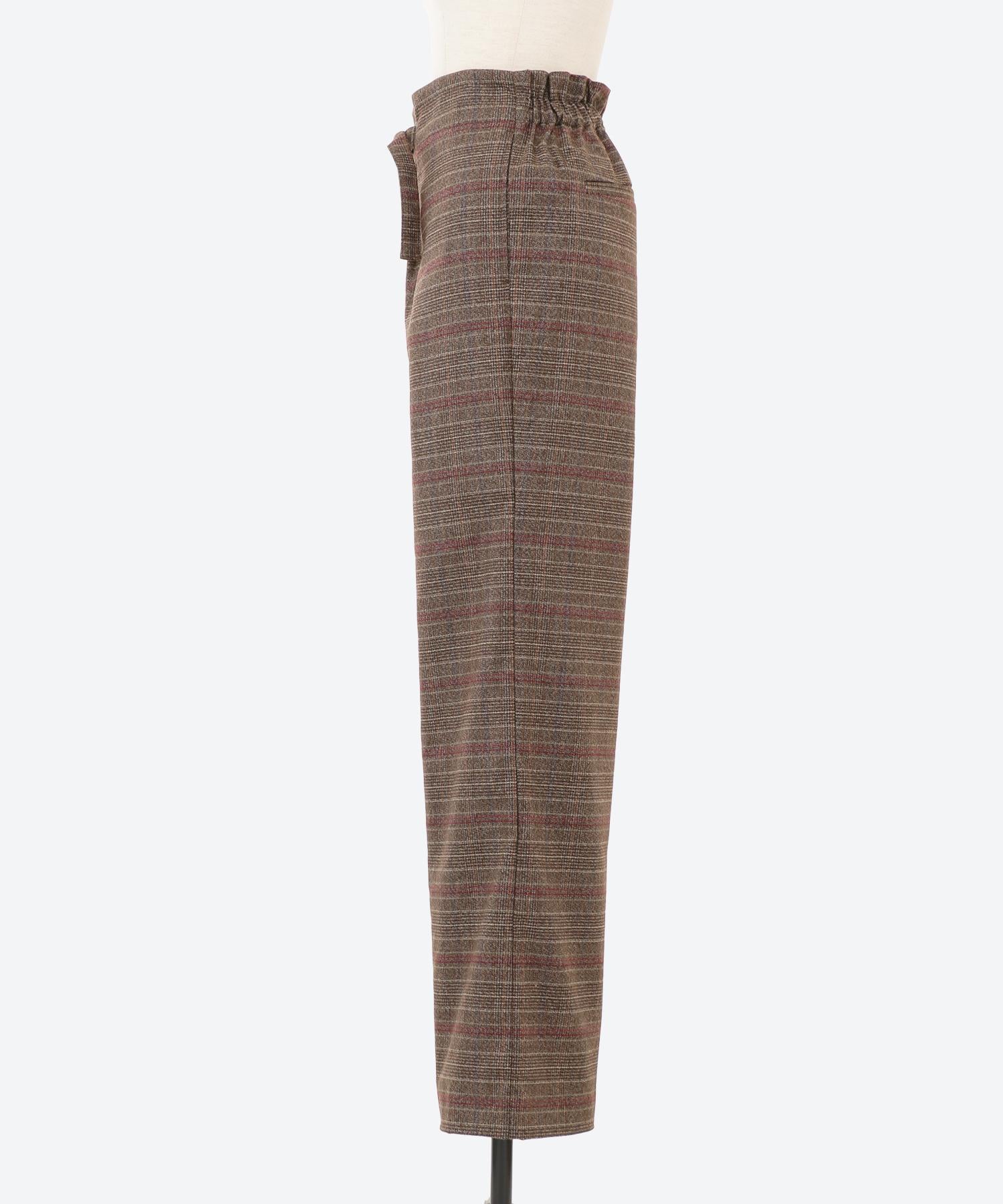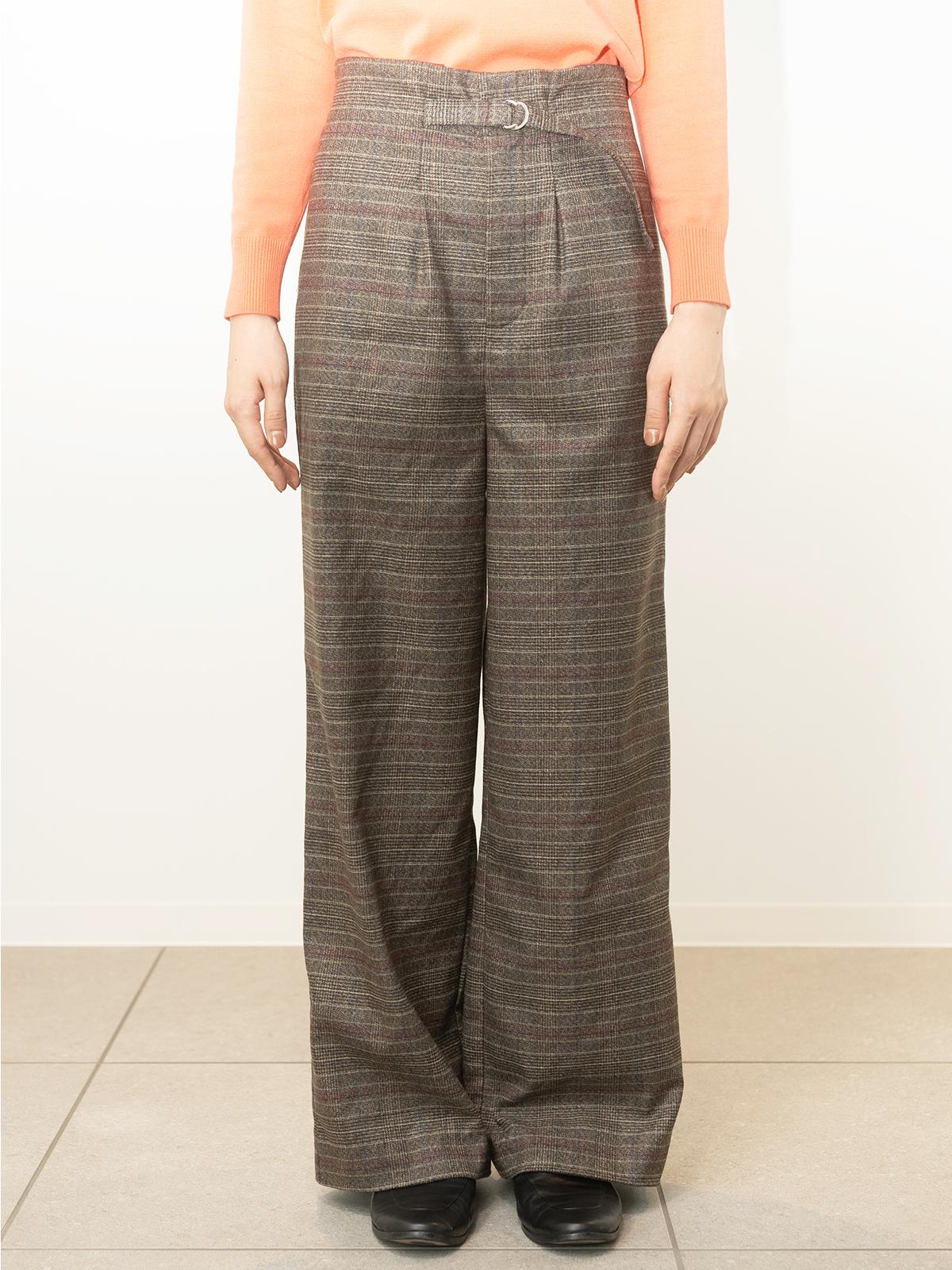 ワイドチェック柄ベルトパンツ