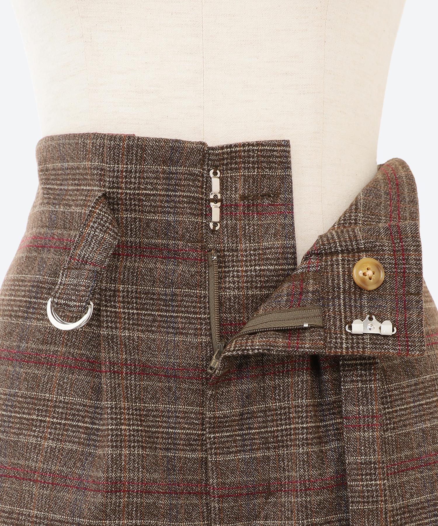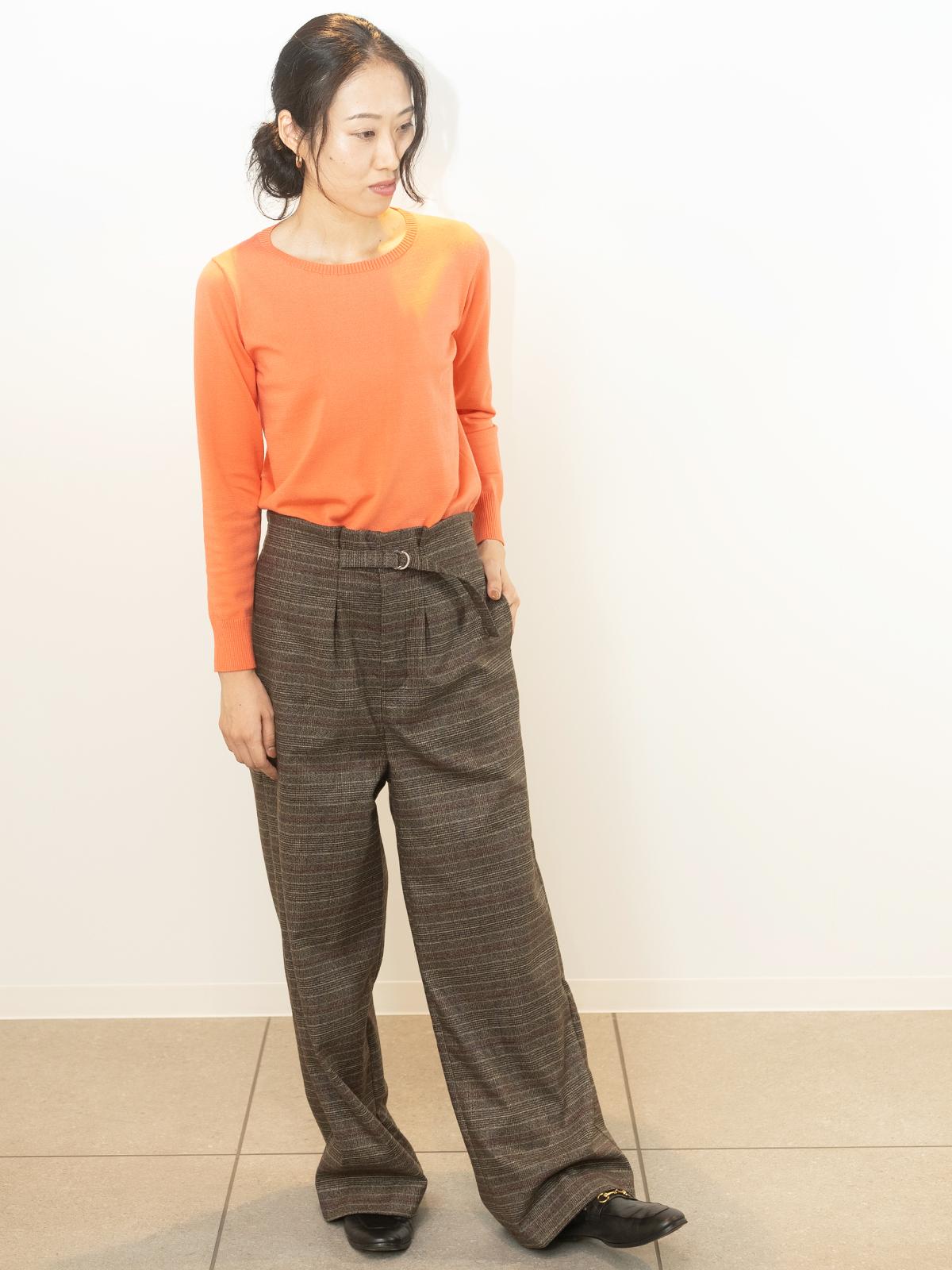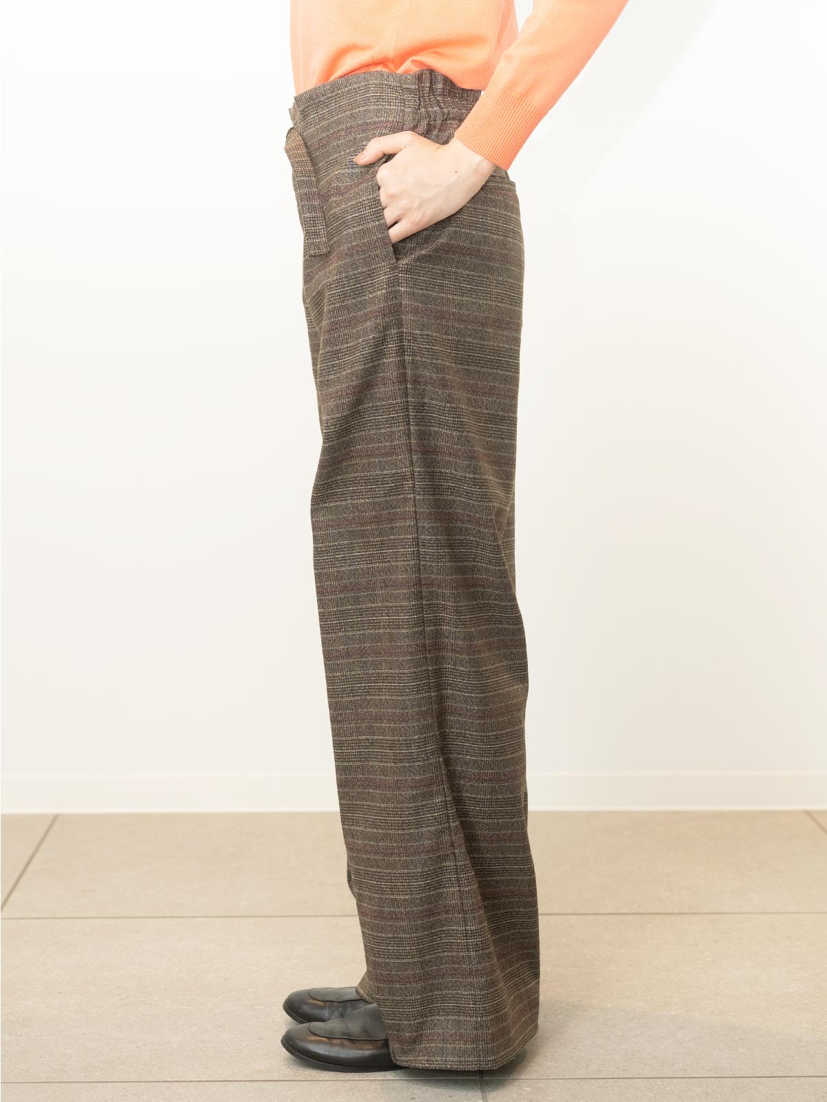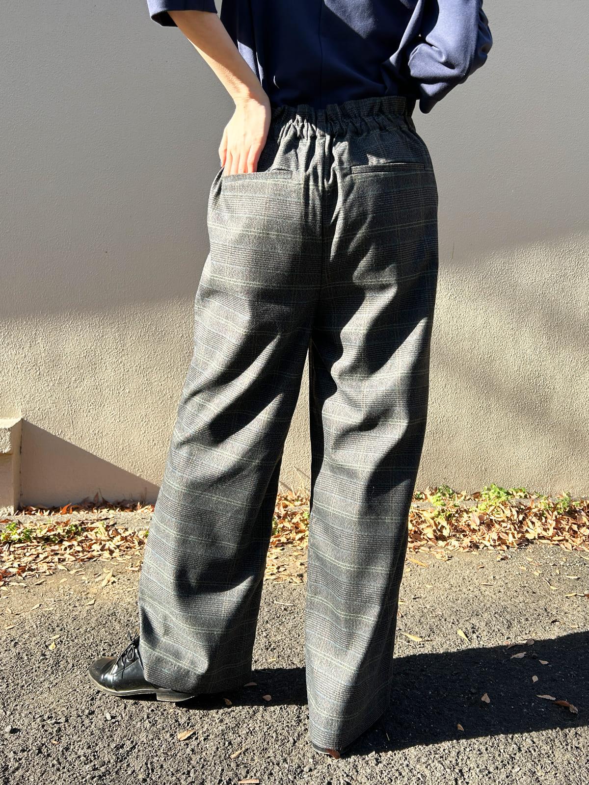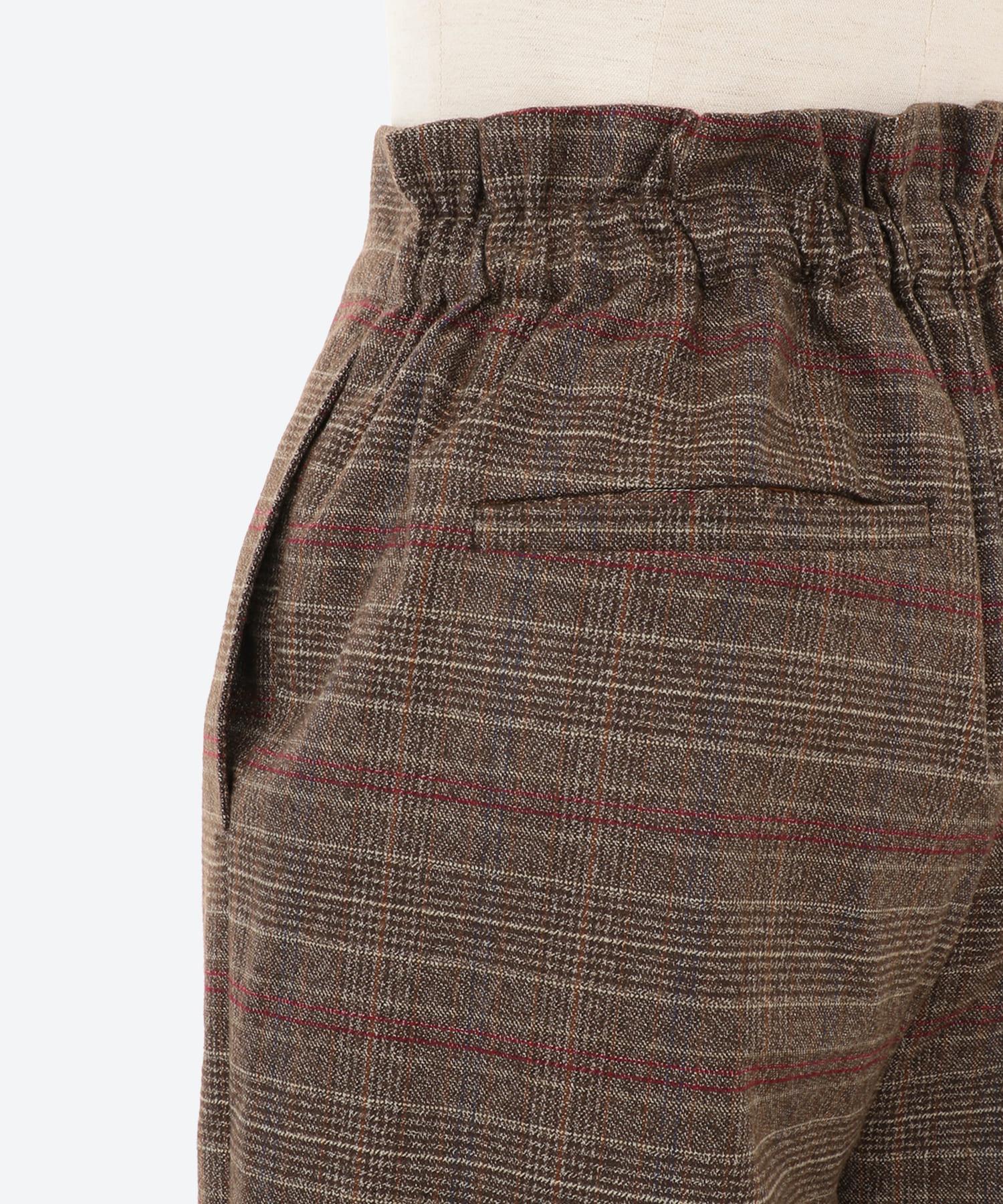 ワイドチェック柄ベルトパンツ