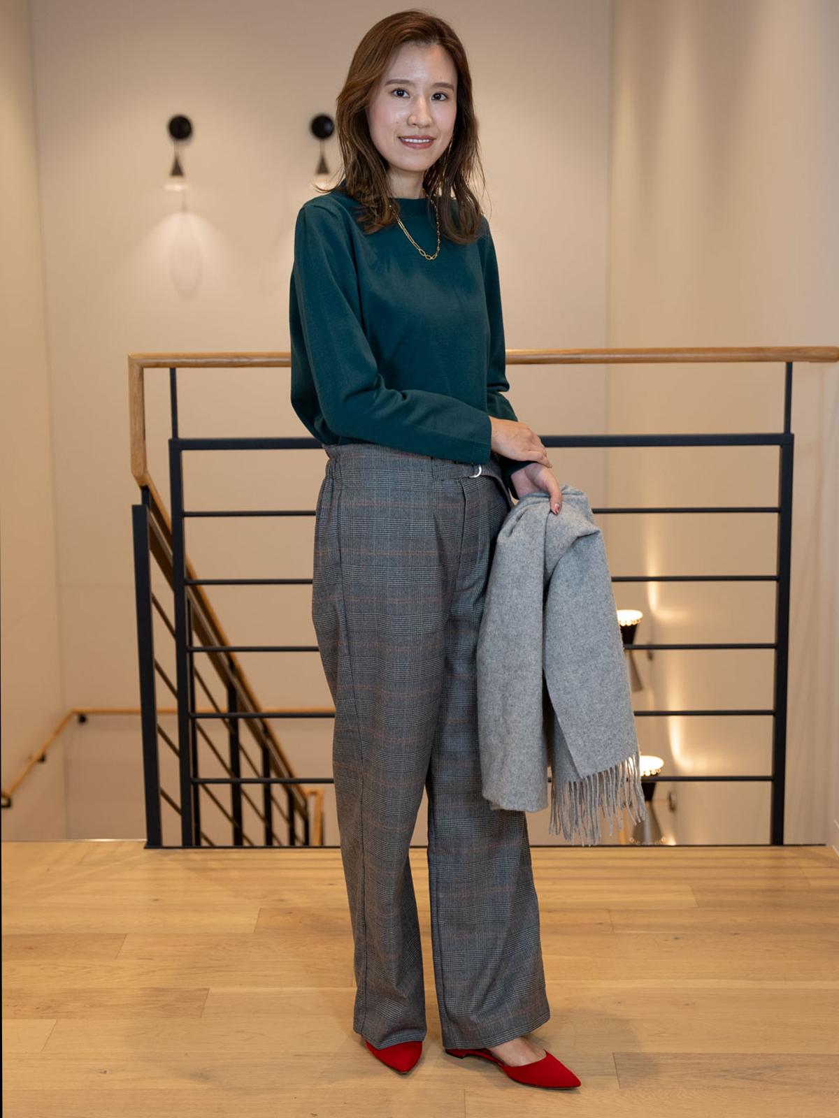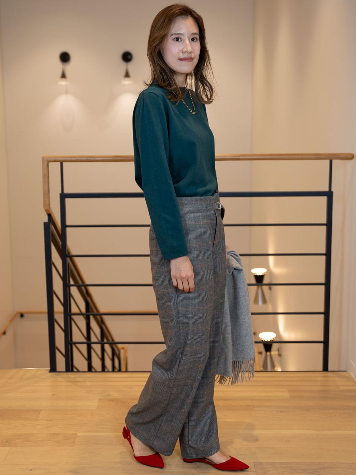 フロントタックとドッキングされたベルトがアクセントとなり、上品な印象に◎