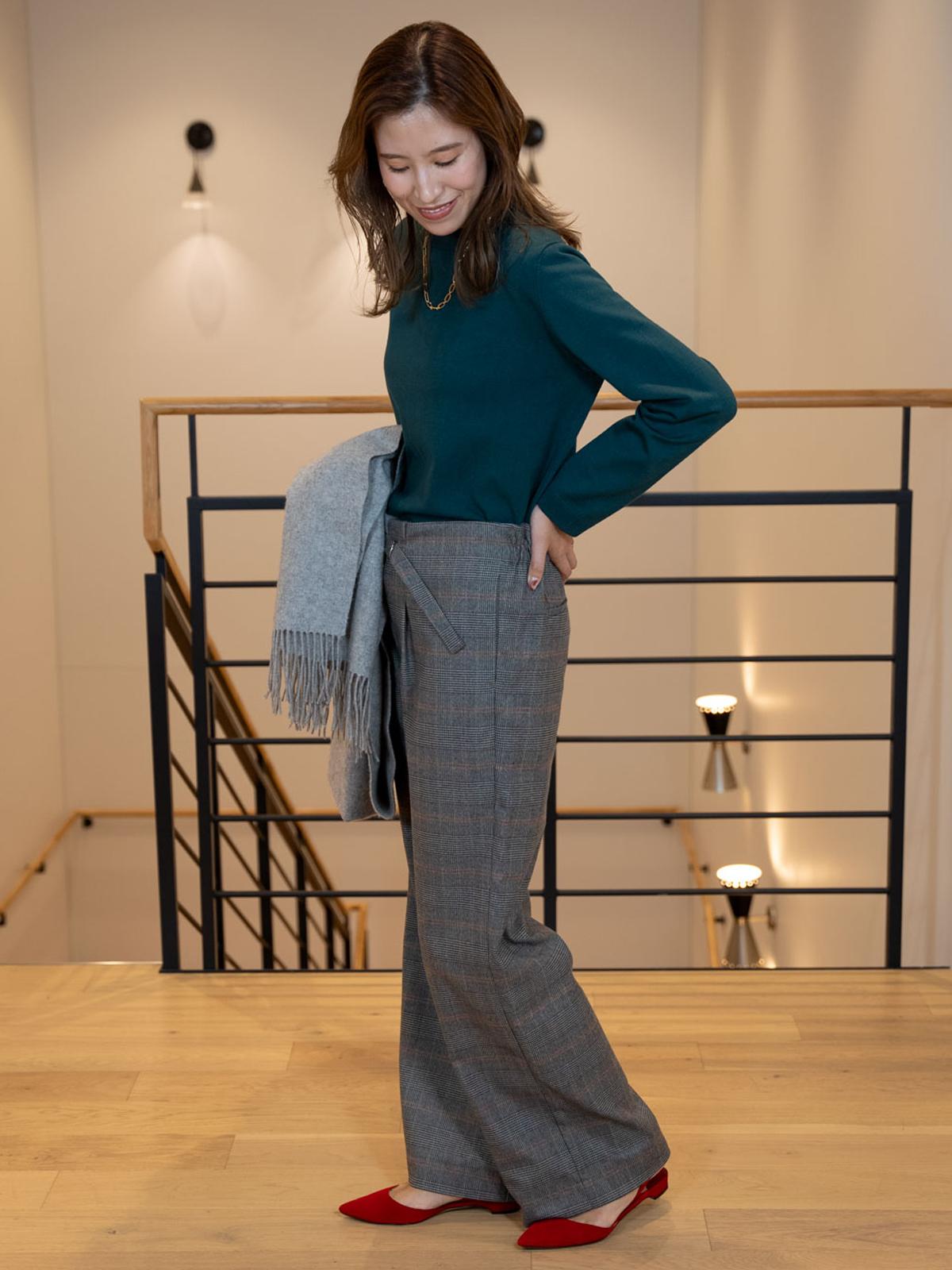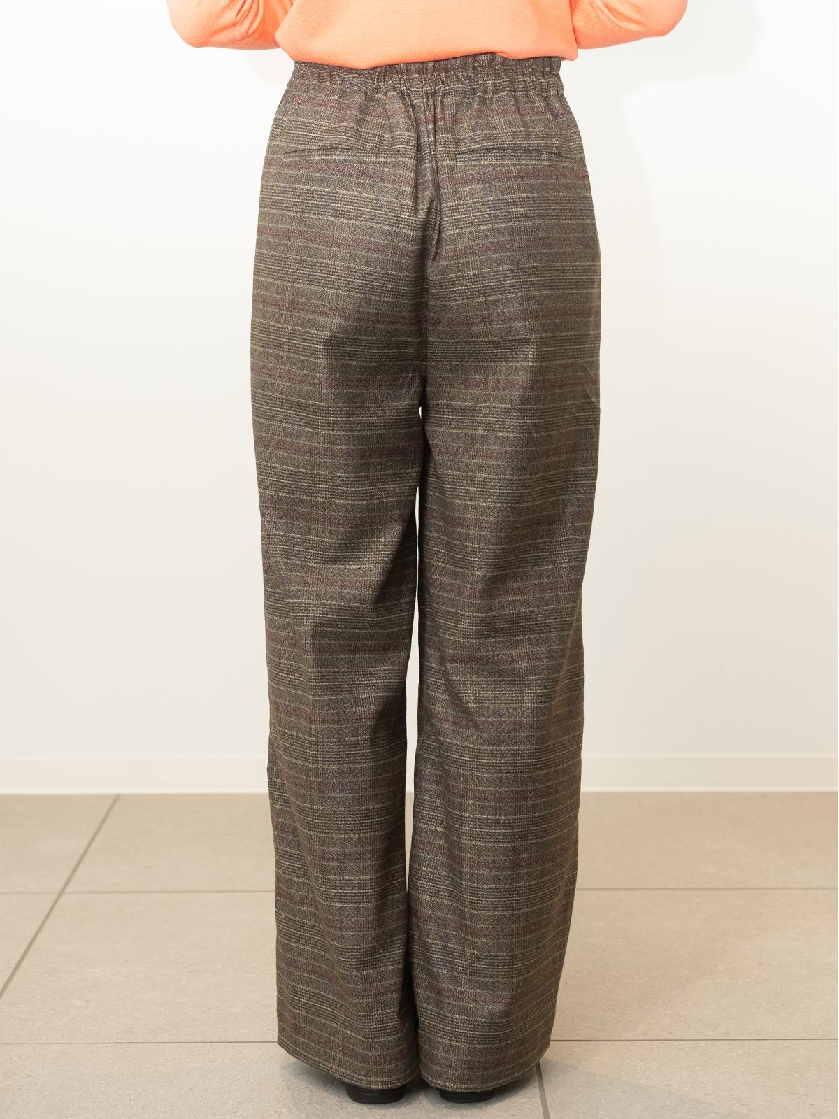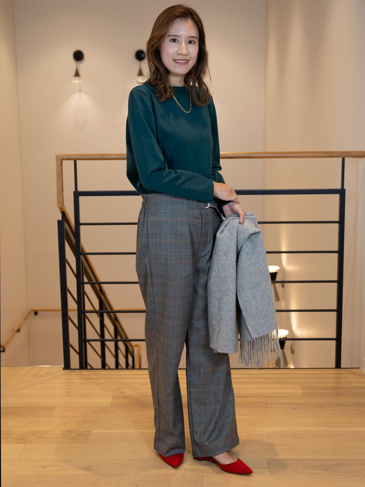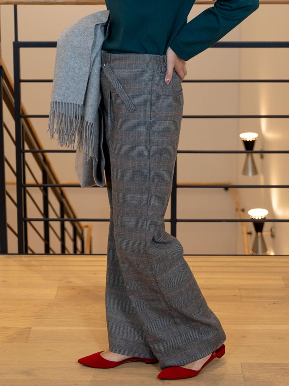 クラシカルなチェック柄のストレートワイドパンツ。