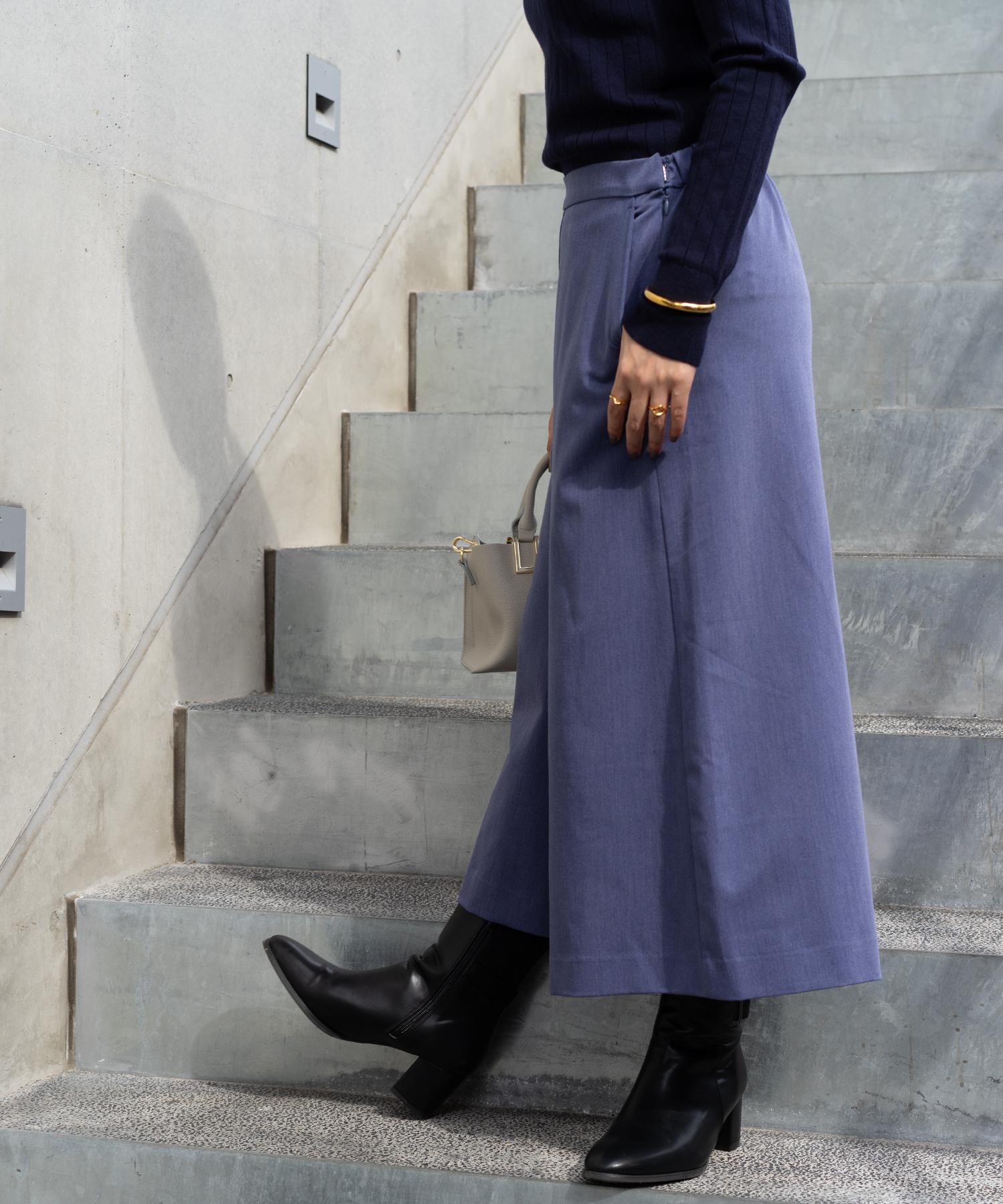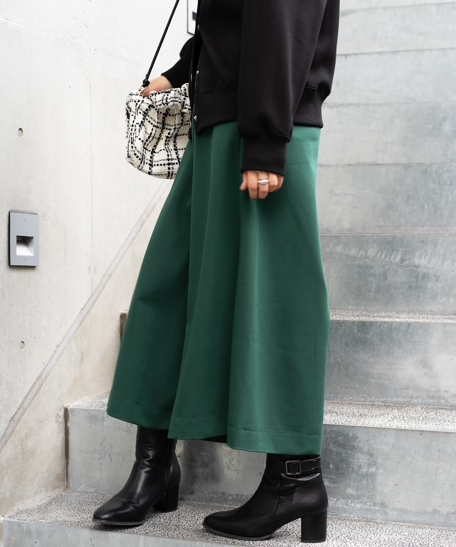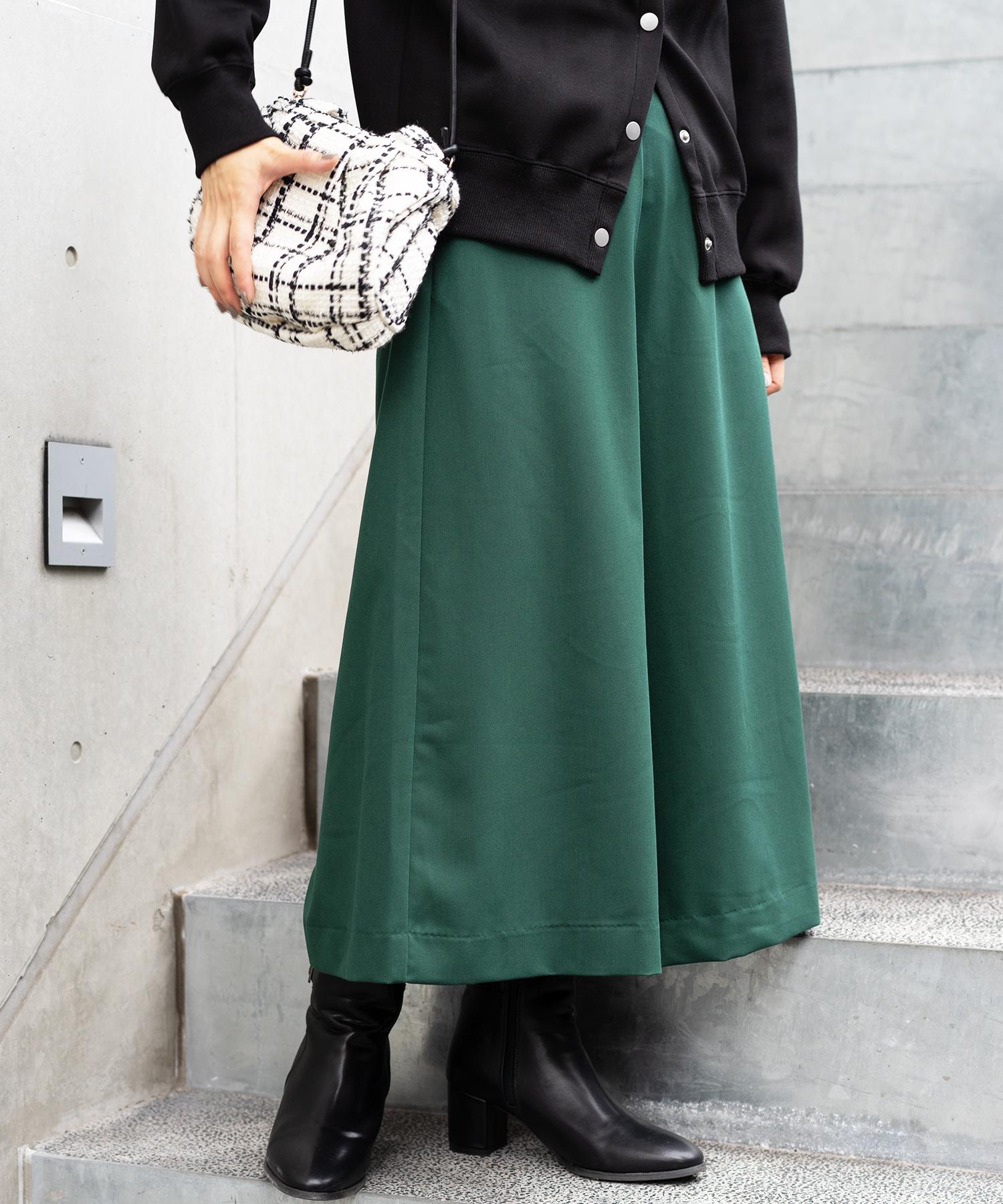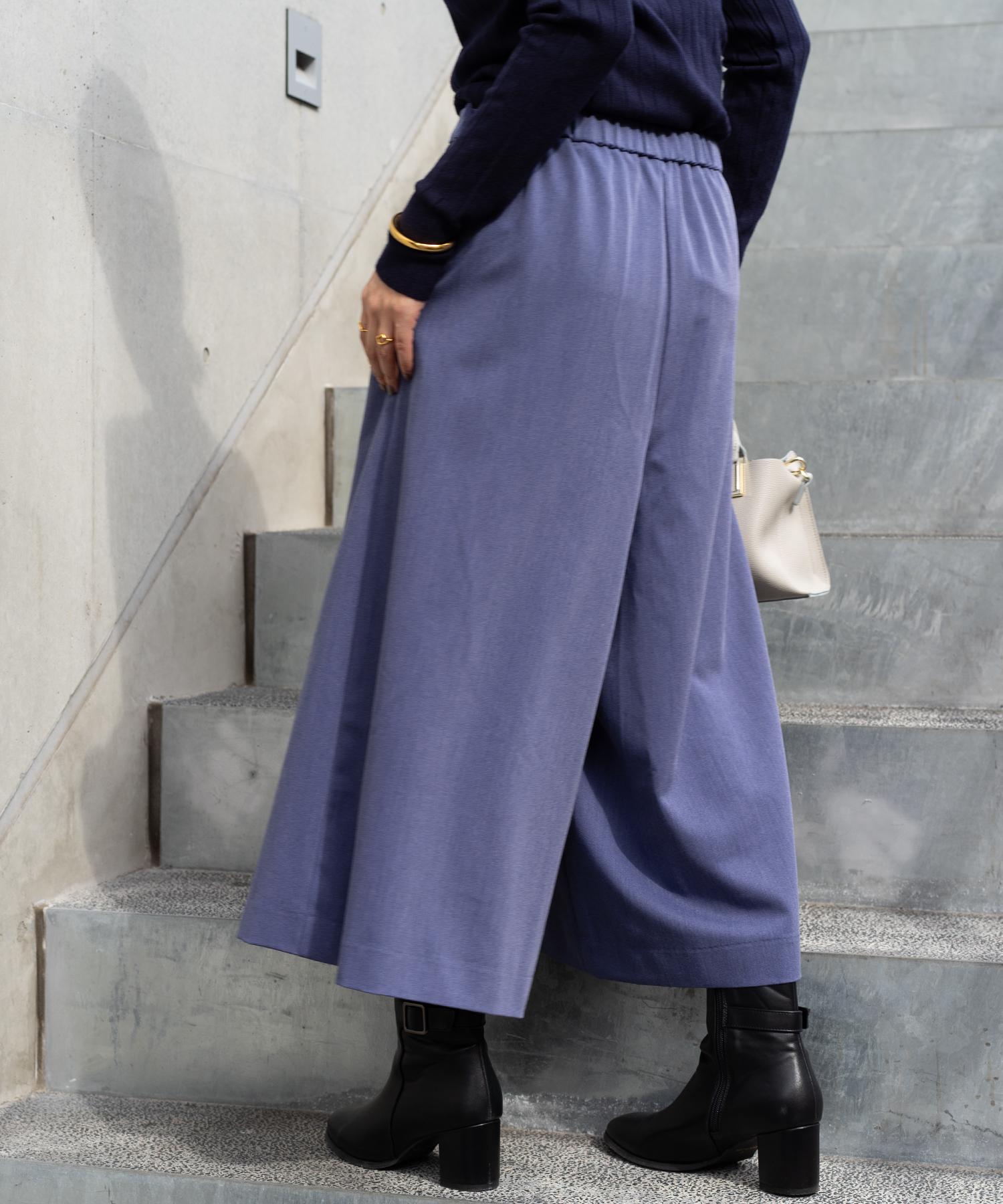 裾にかけてフレアに広がる7分丈ガウチョパンツ。