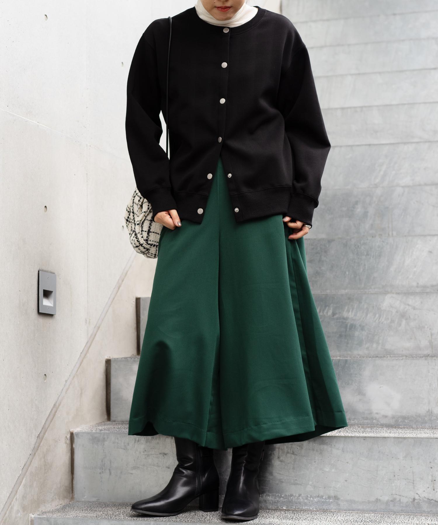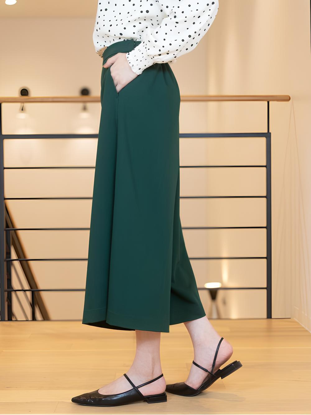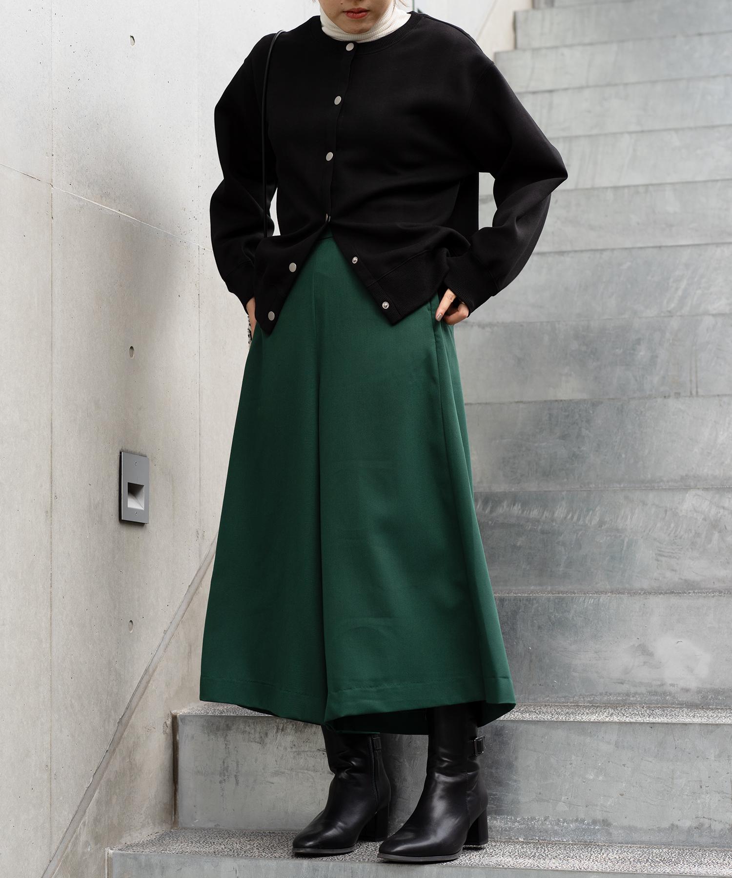 裾にかけてフレアに広がる7分丈ガウチョパンツ。