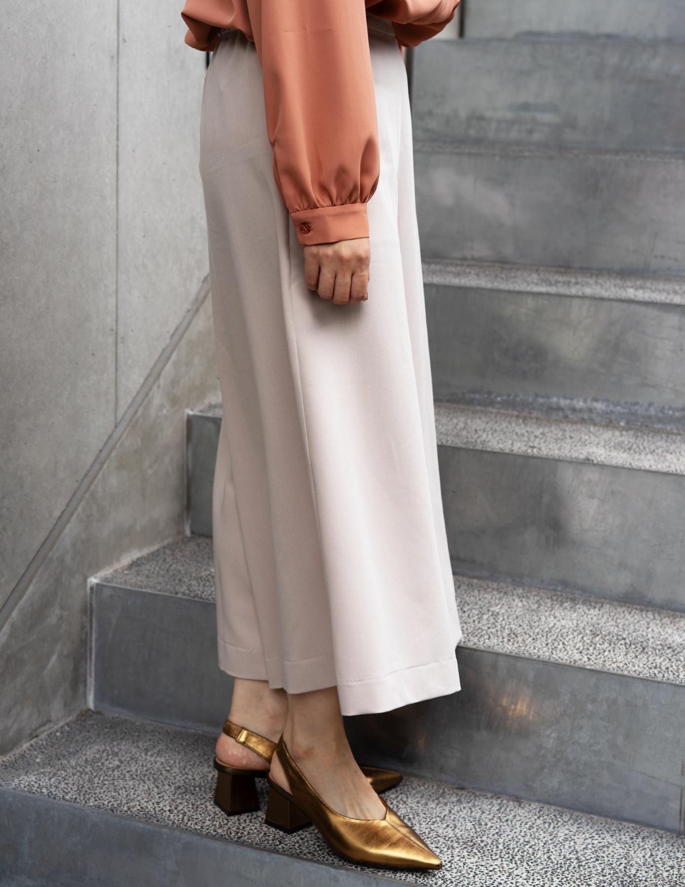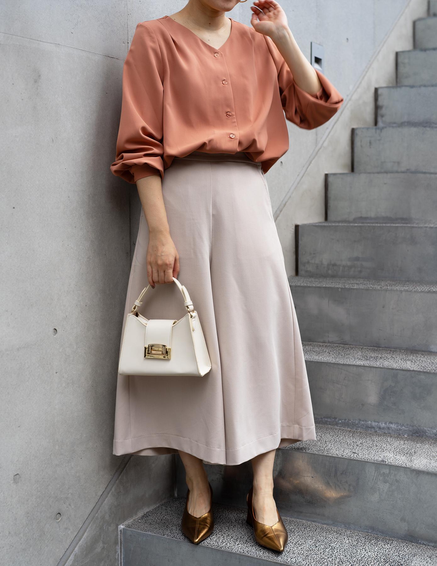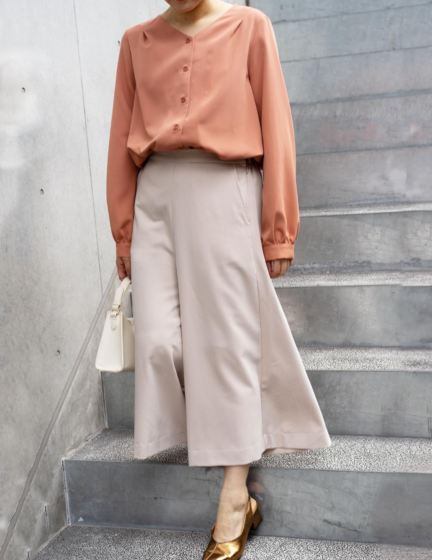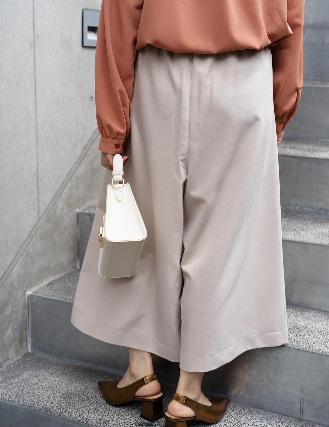 裾にかけてフレアに広がる7分丈ガウチョパンツ。