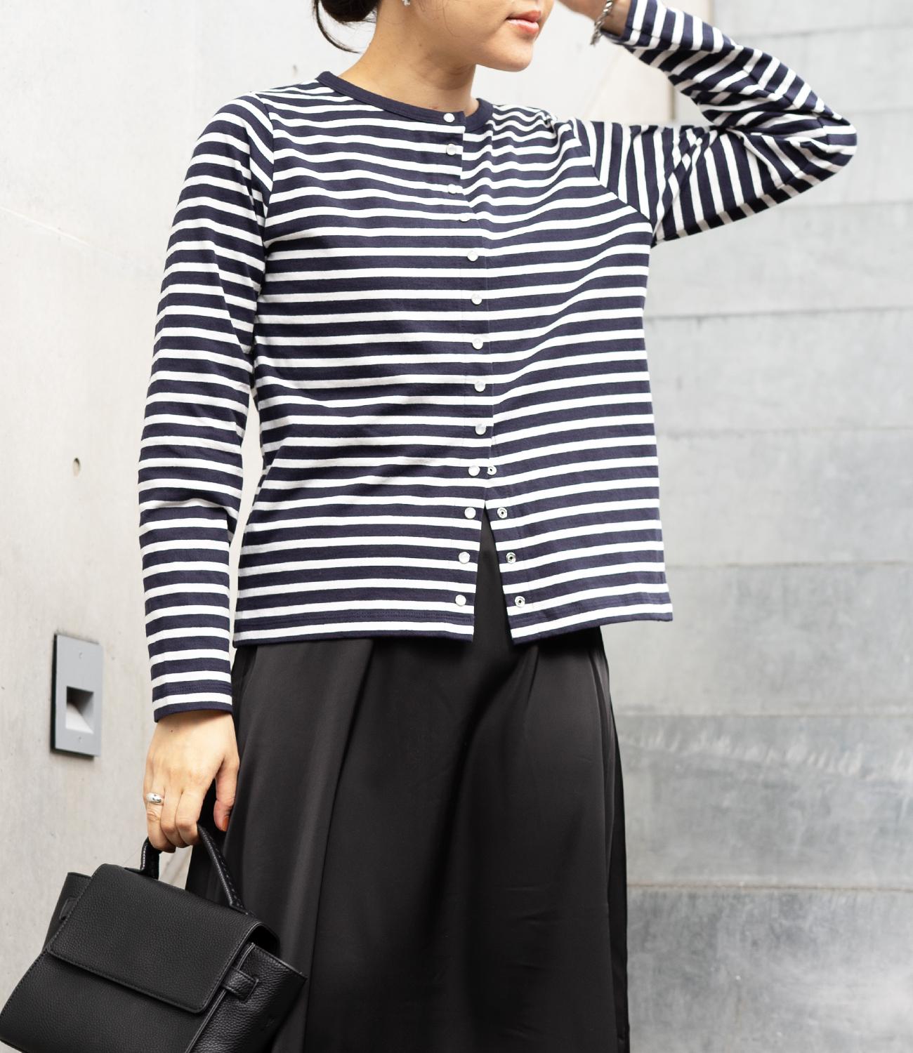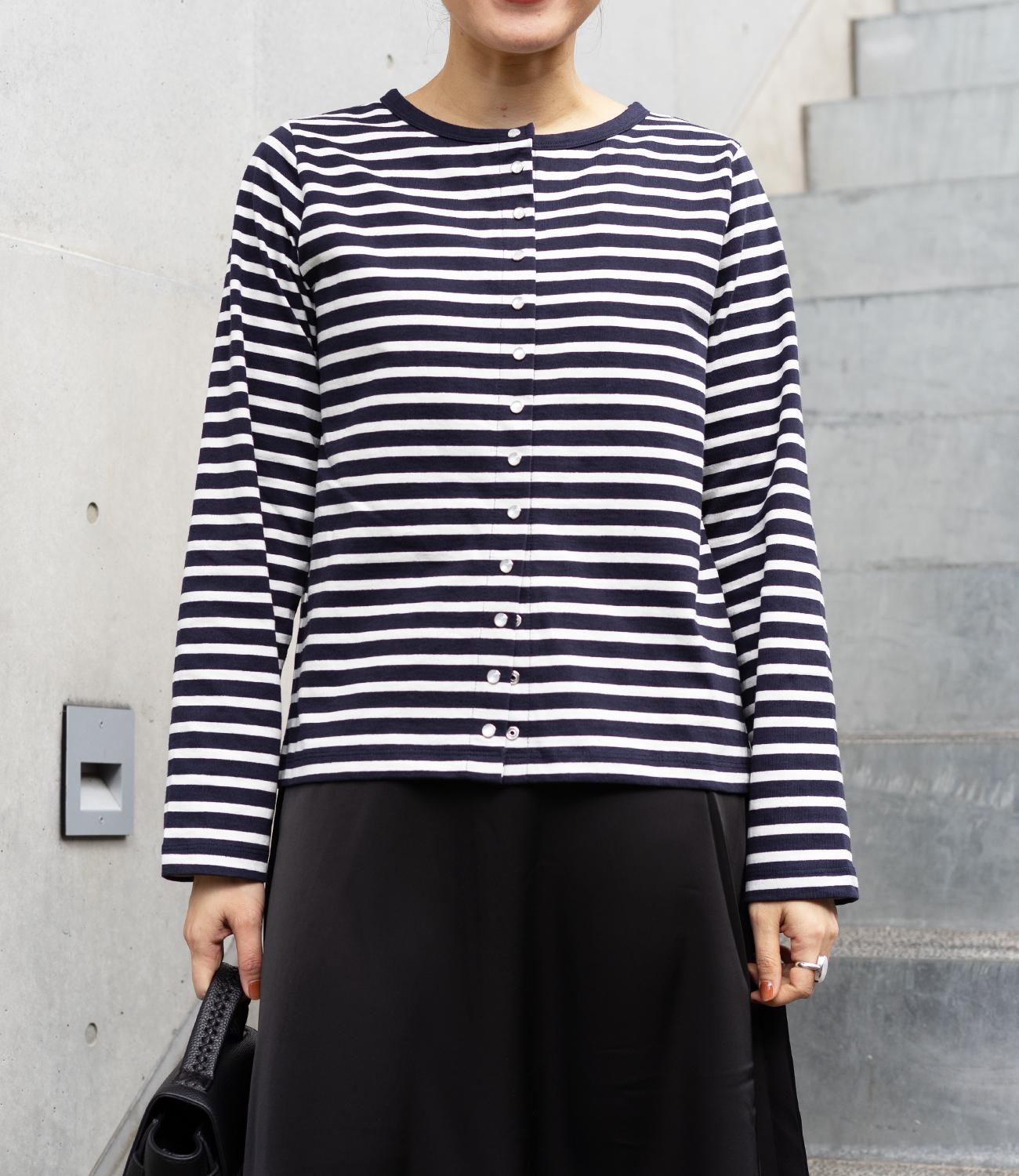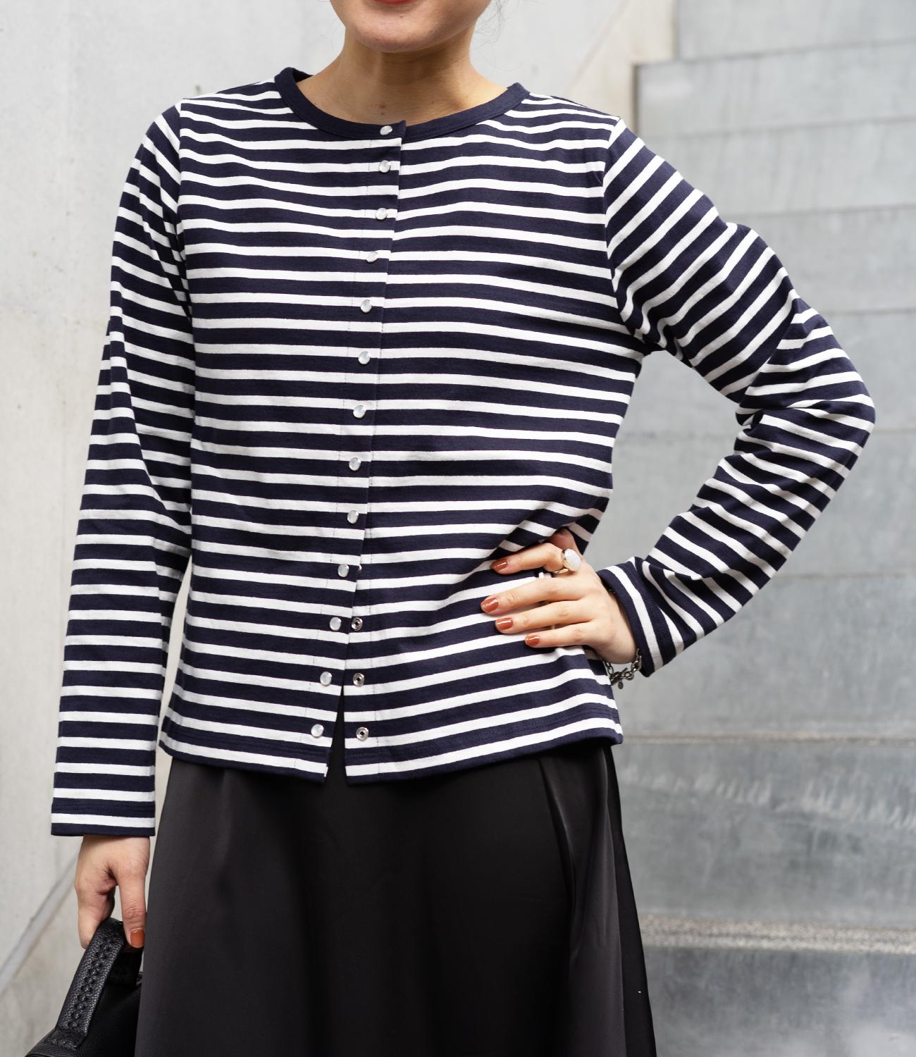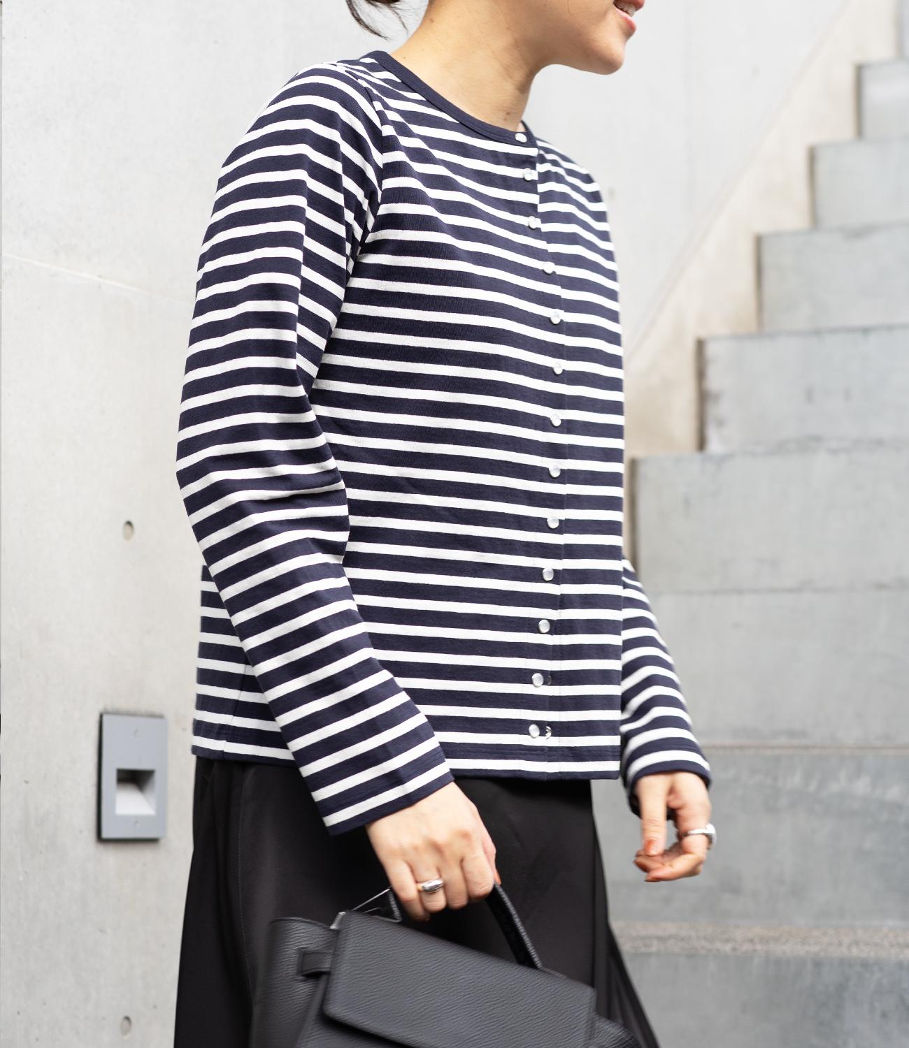 普段使いのしやすさが魅力的なボーダースナップカーディガン。