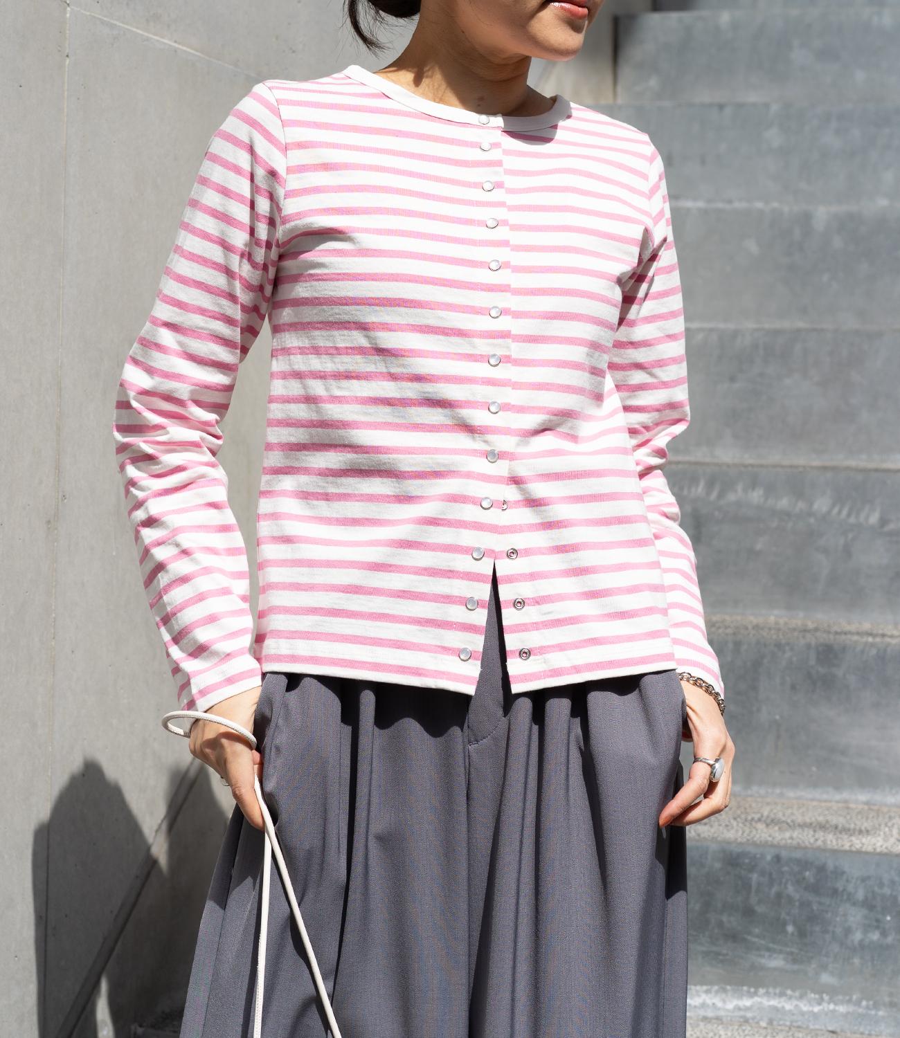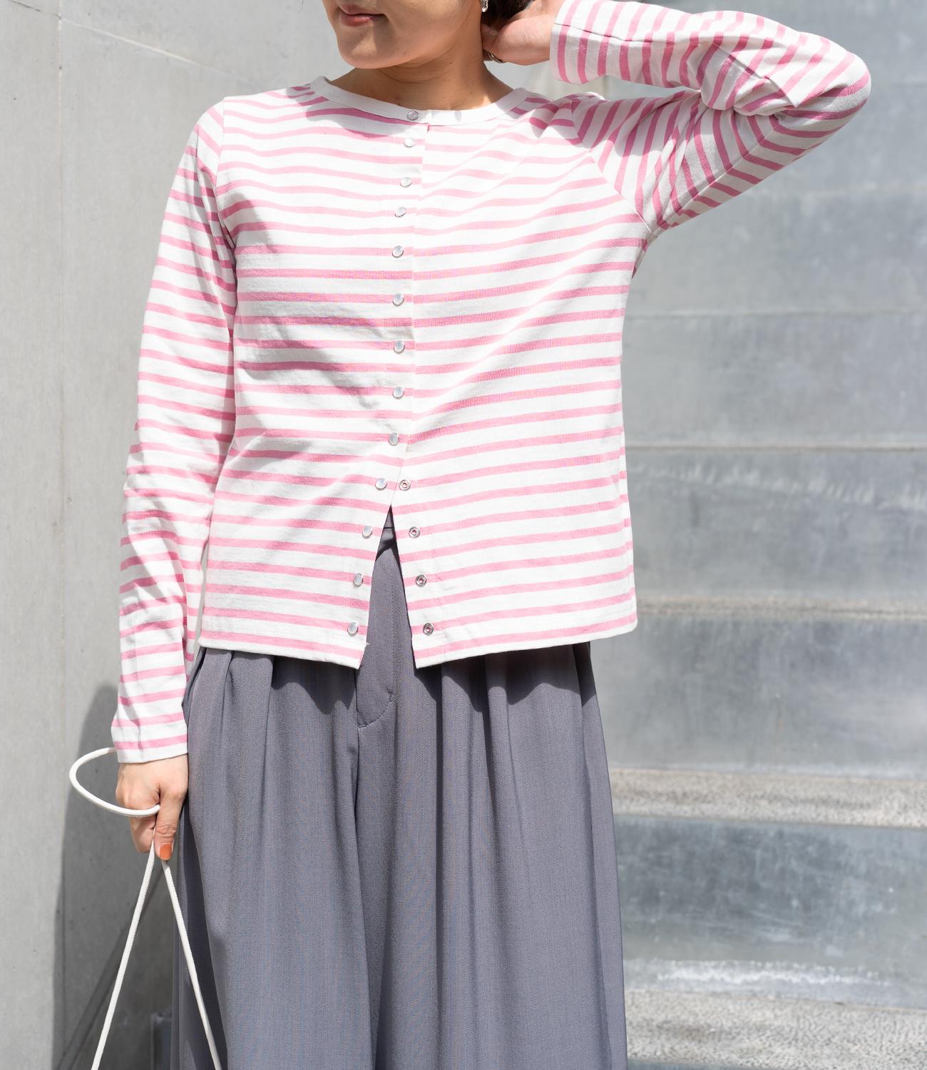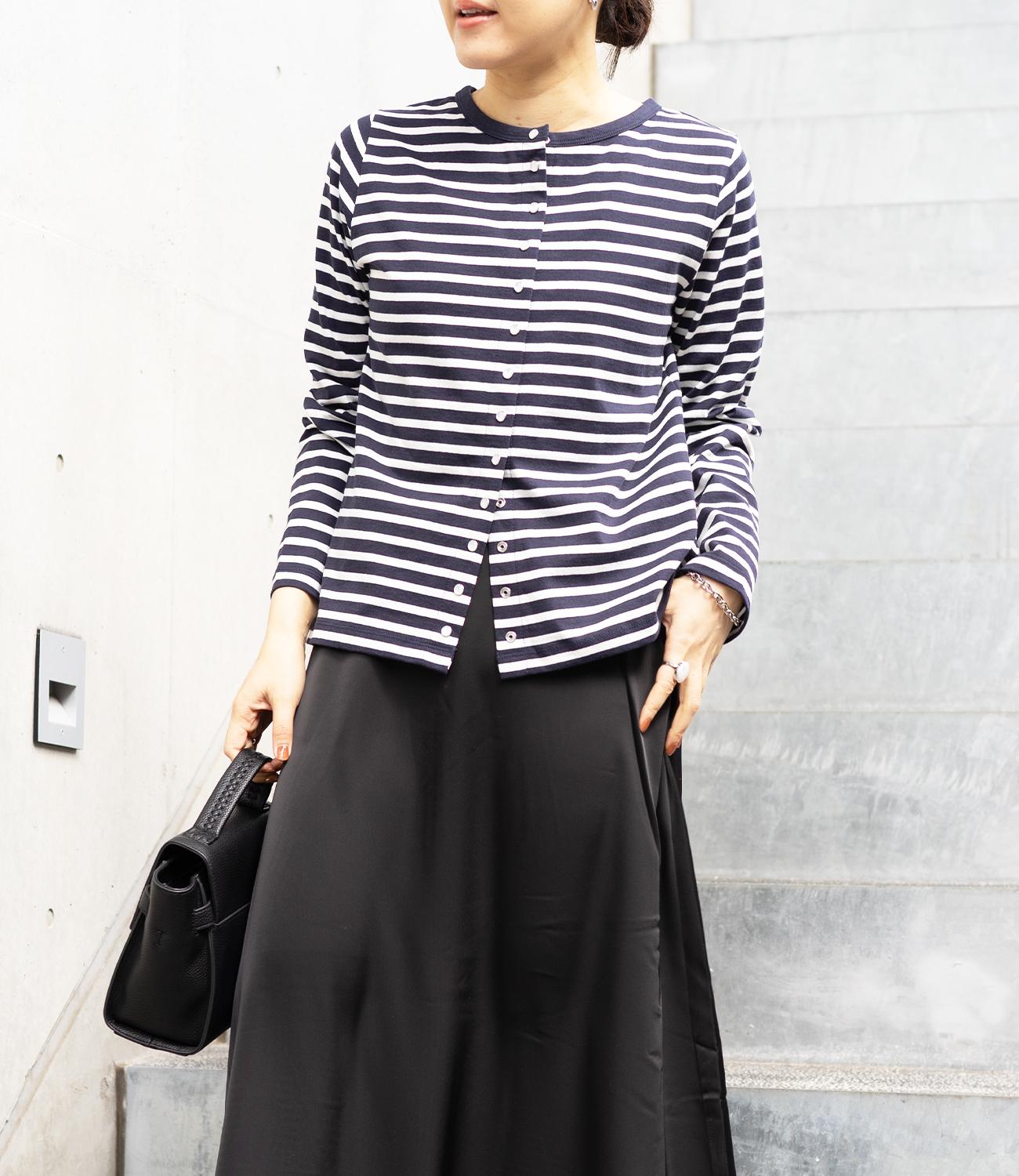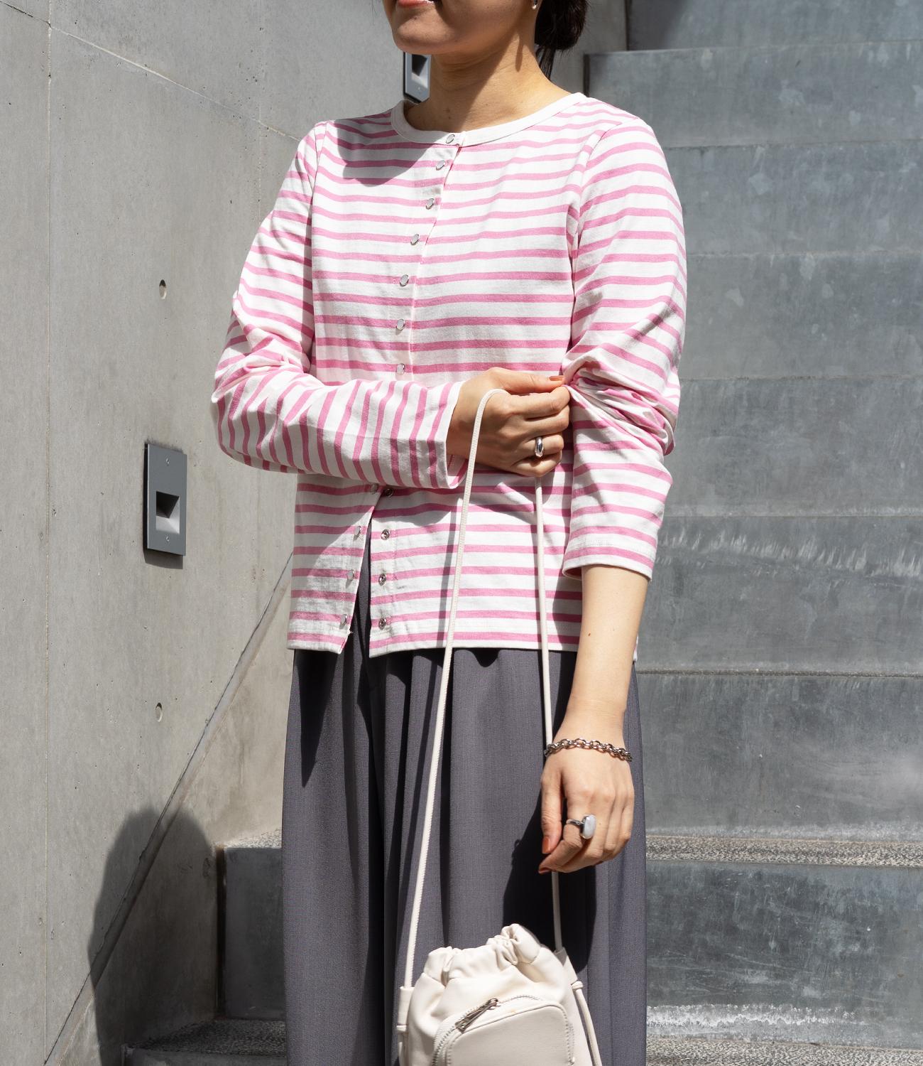 普段使いのしやすさが魅力的なボーダースナップカーディガン。