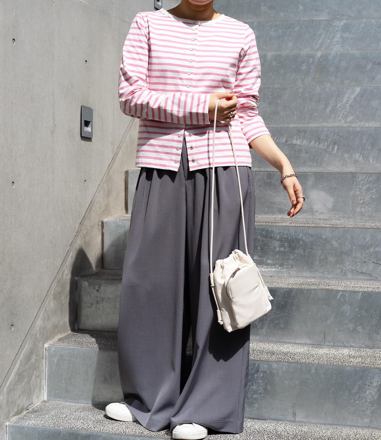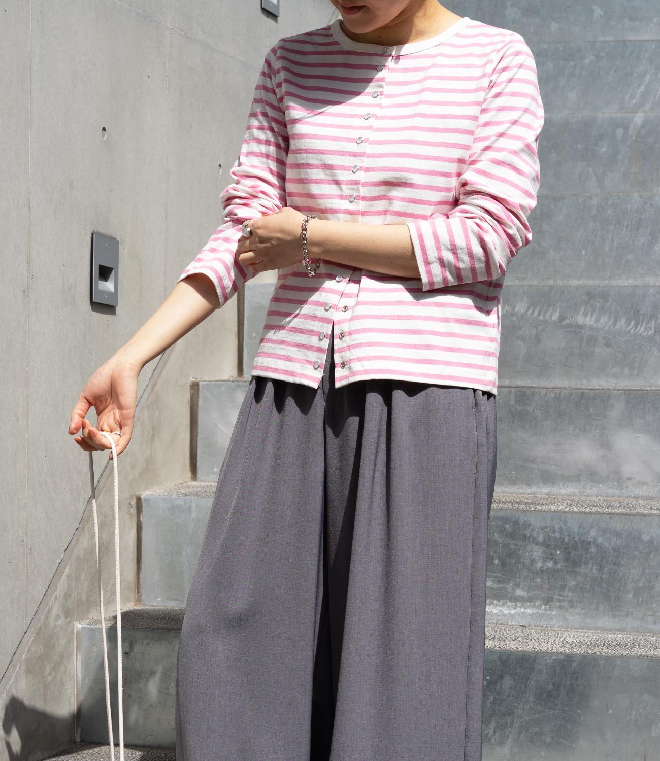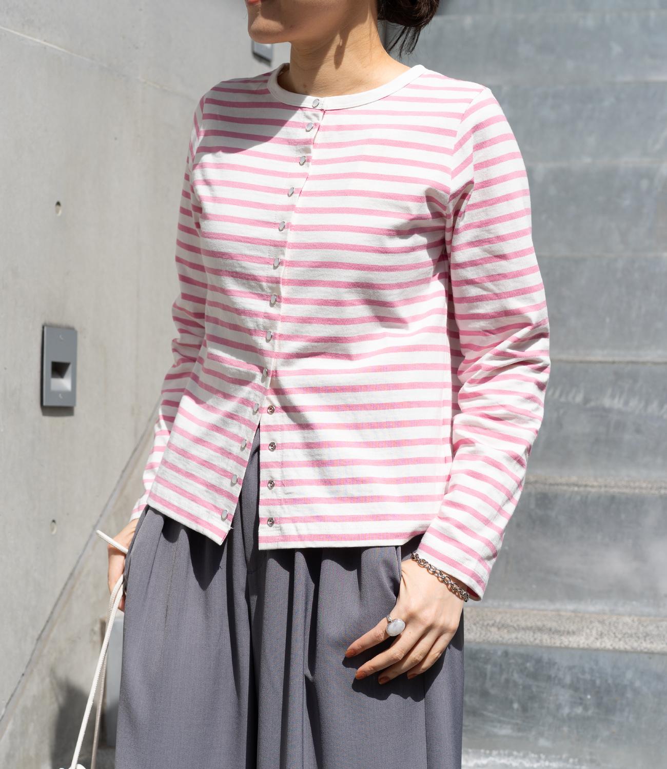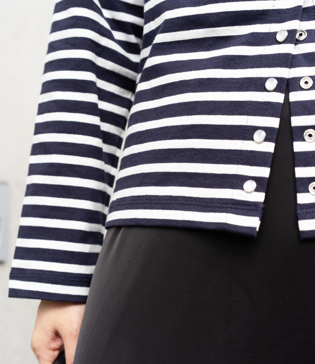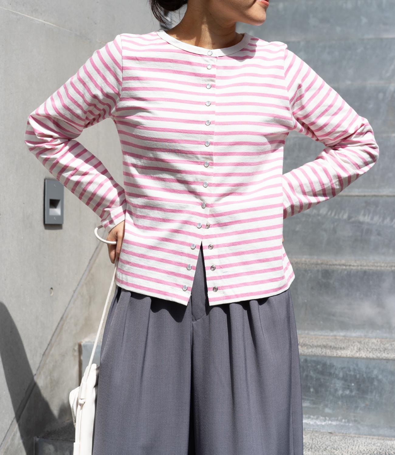 普段使いのしやすさが魅力的なボーダースナップカーディガン。