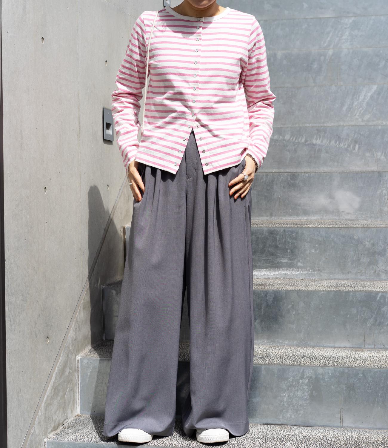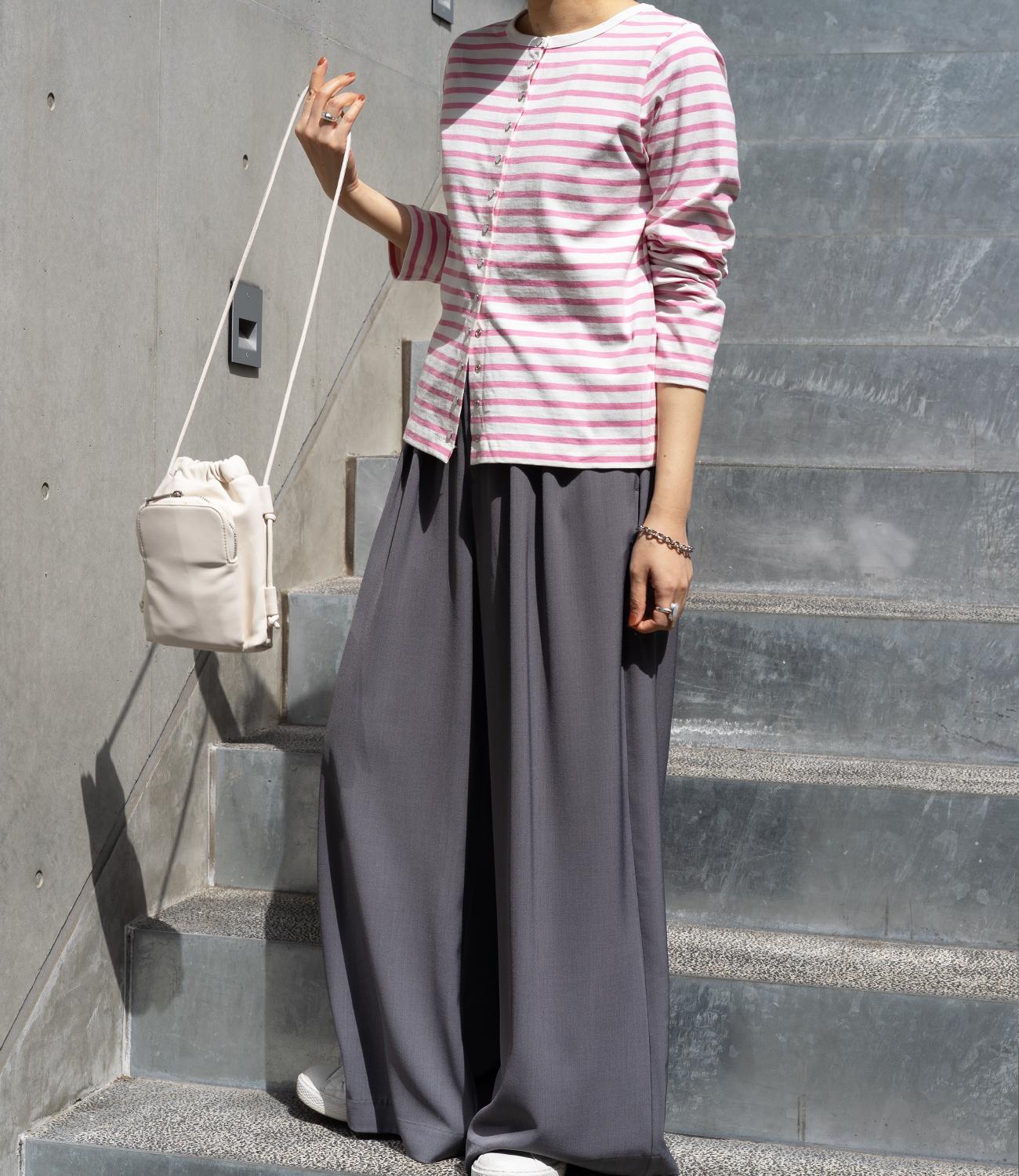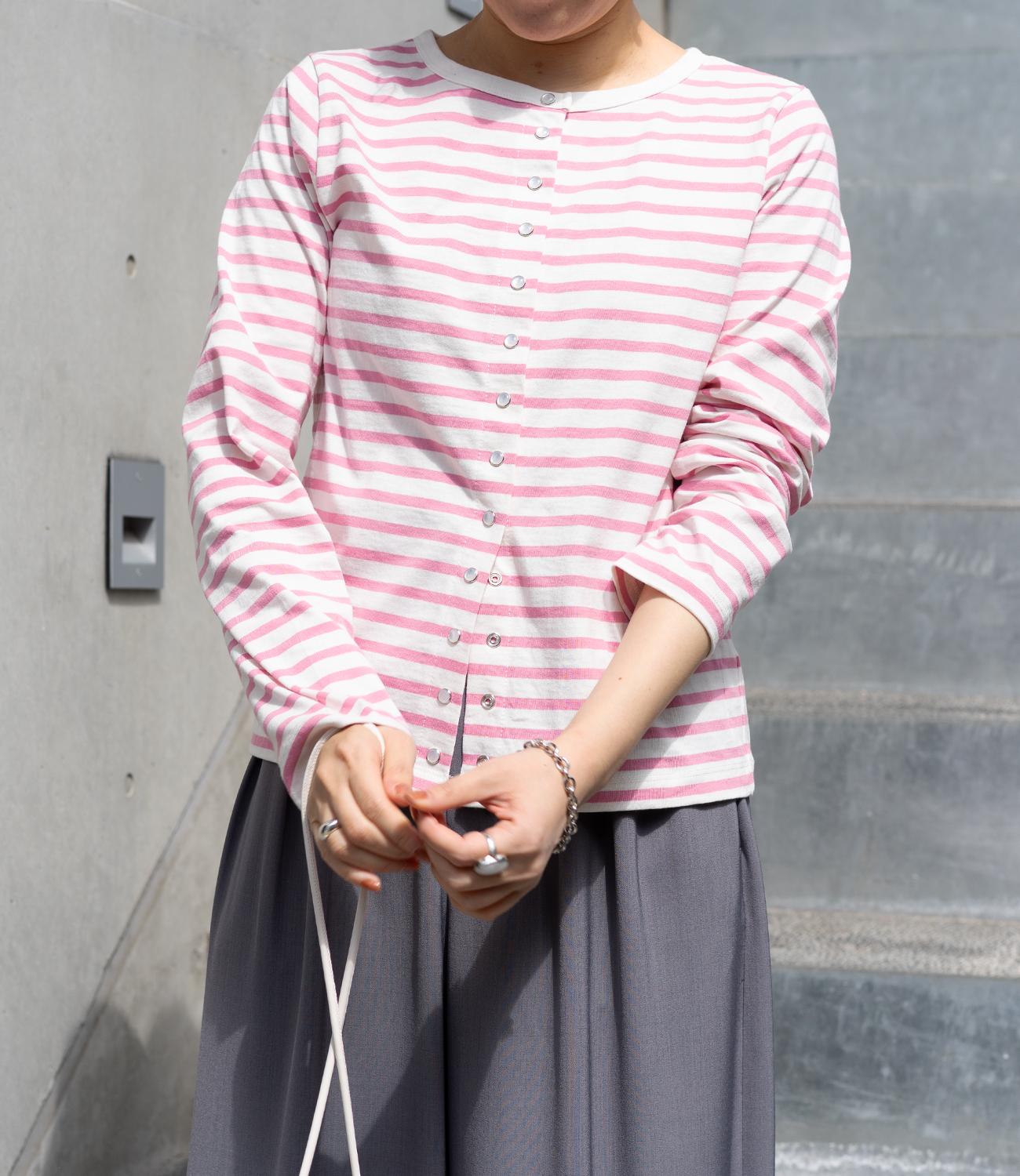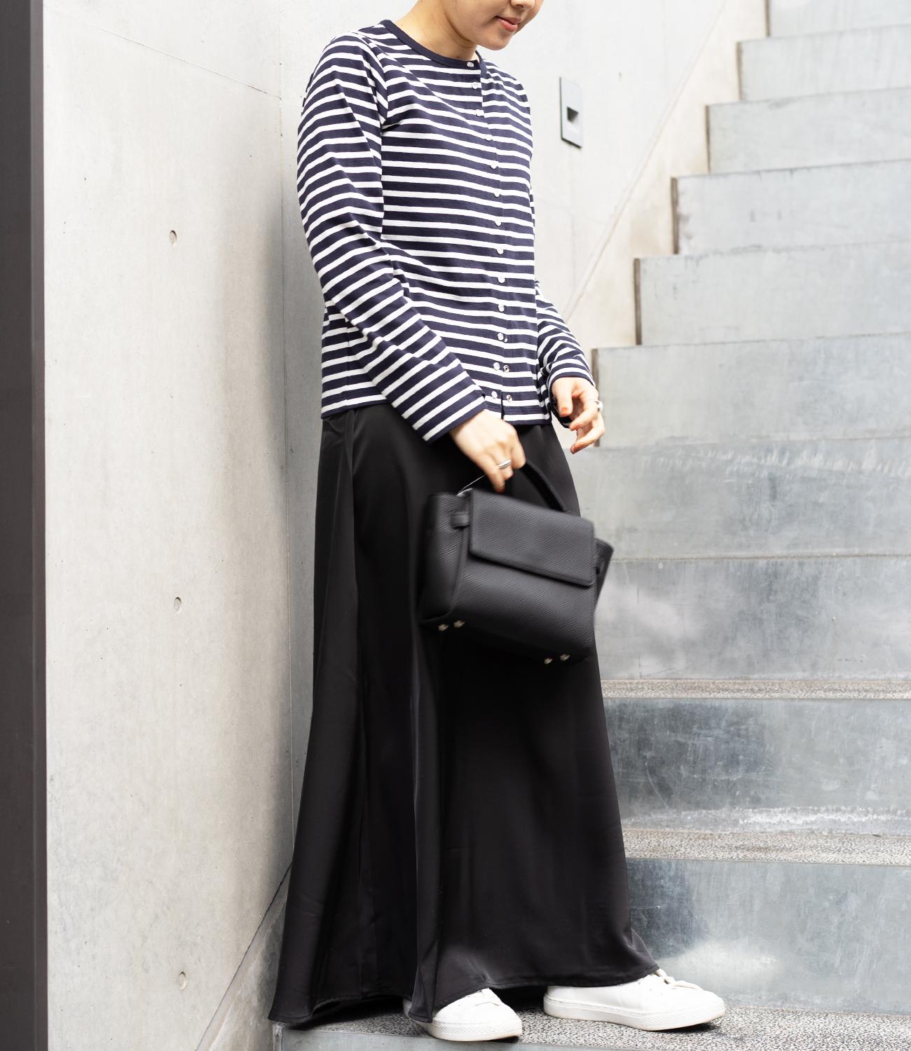 普段使いのしやすさが魅力的なボーダースナップカーディガン。