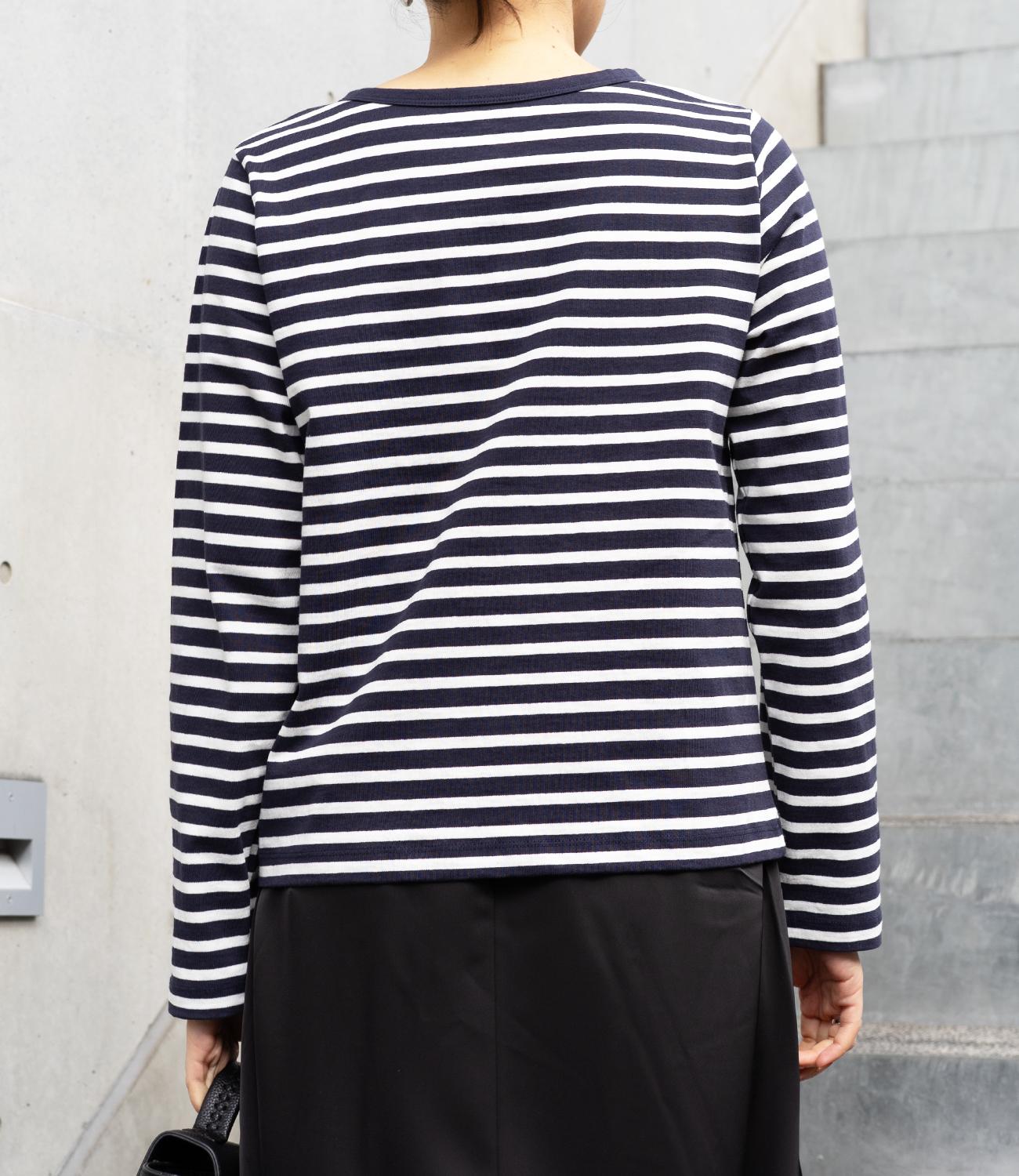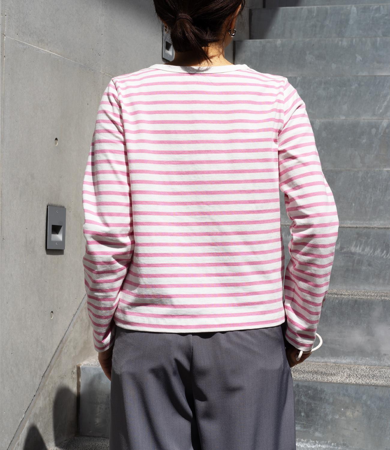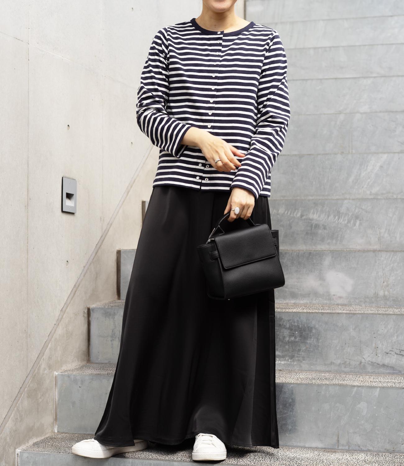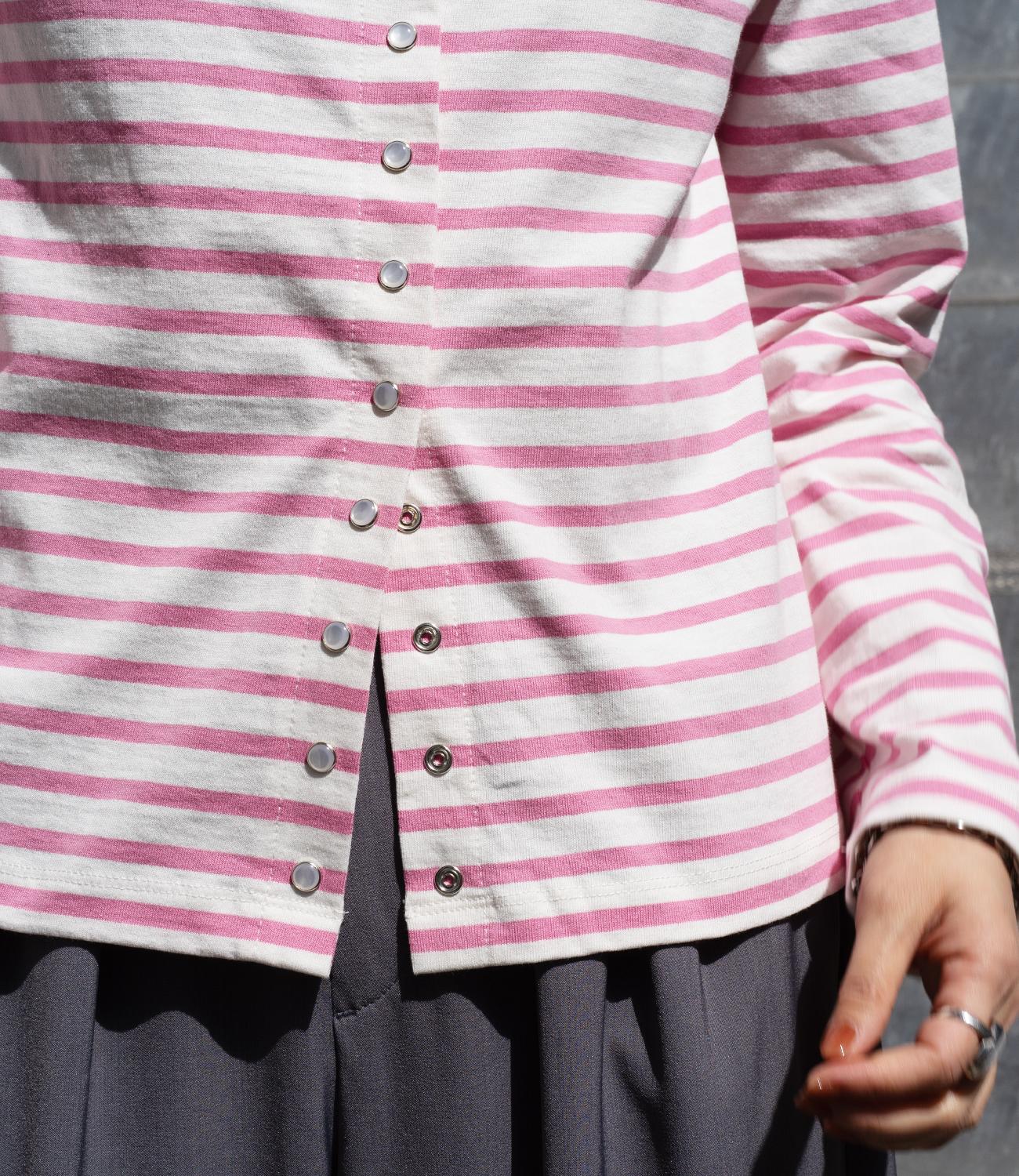 普段使いのしやすさが魅力的なボーダースナップカーディガン。