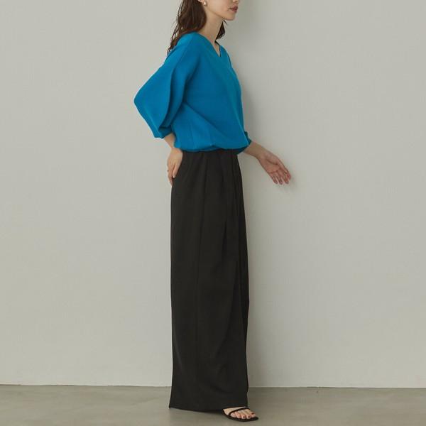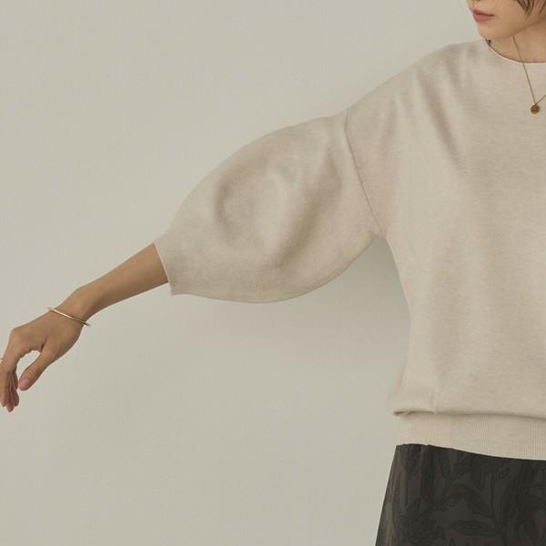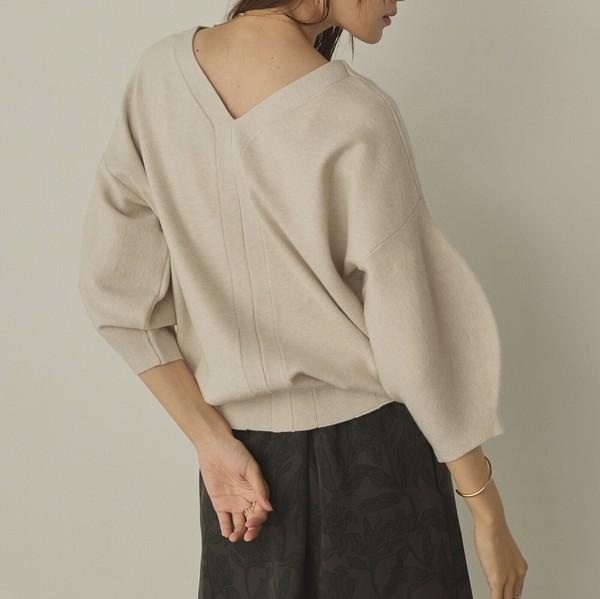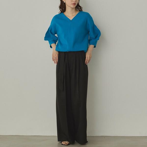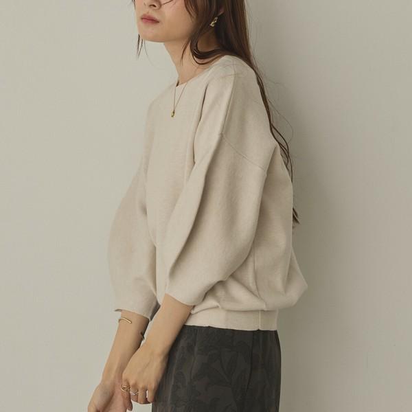 ぽわんとしたスリーブも柔らかい雰囲気を演出してくれます。裾は前後ともにタックを入れており、自然とブラウジングしたような雰囲気に。