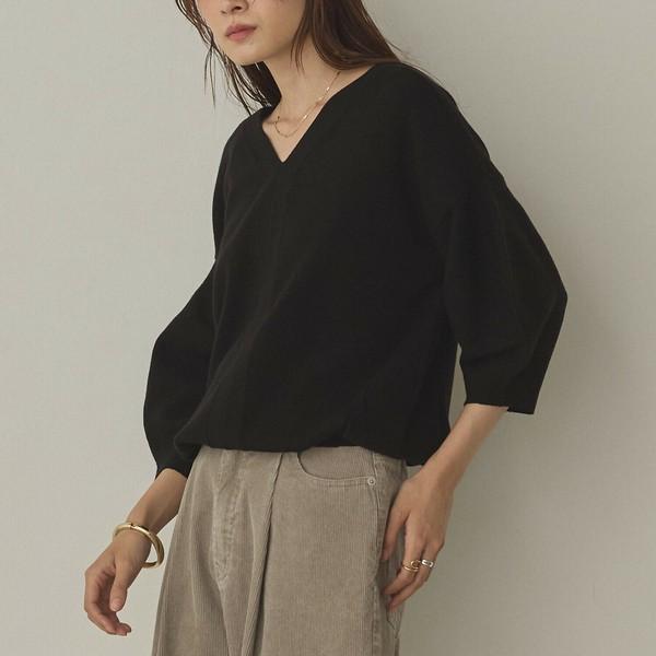 7部袖で秋口から、レイヤードでも楽しめる1枚です。デニム合わせでカジュアルに、ボリュームスカートでフェミニンにと、マルチに色々なコーデに使えるのも◎