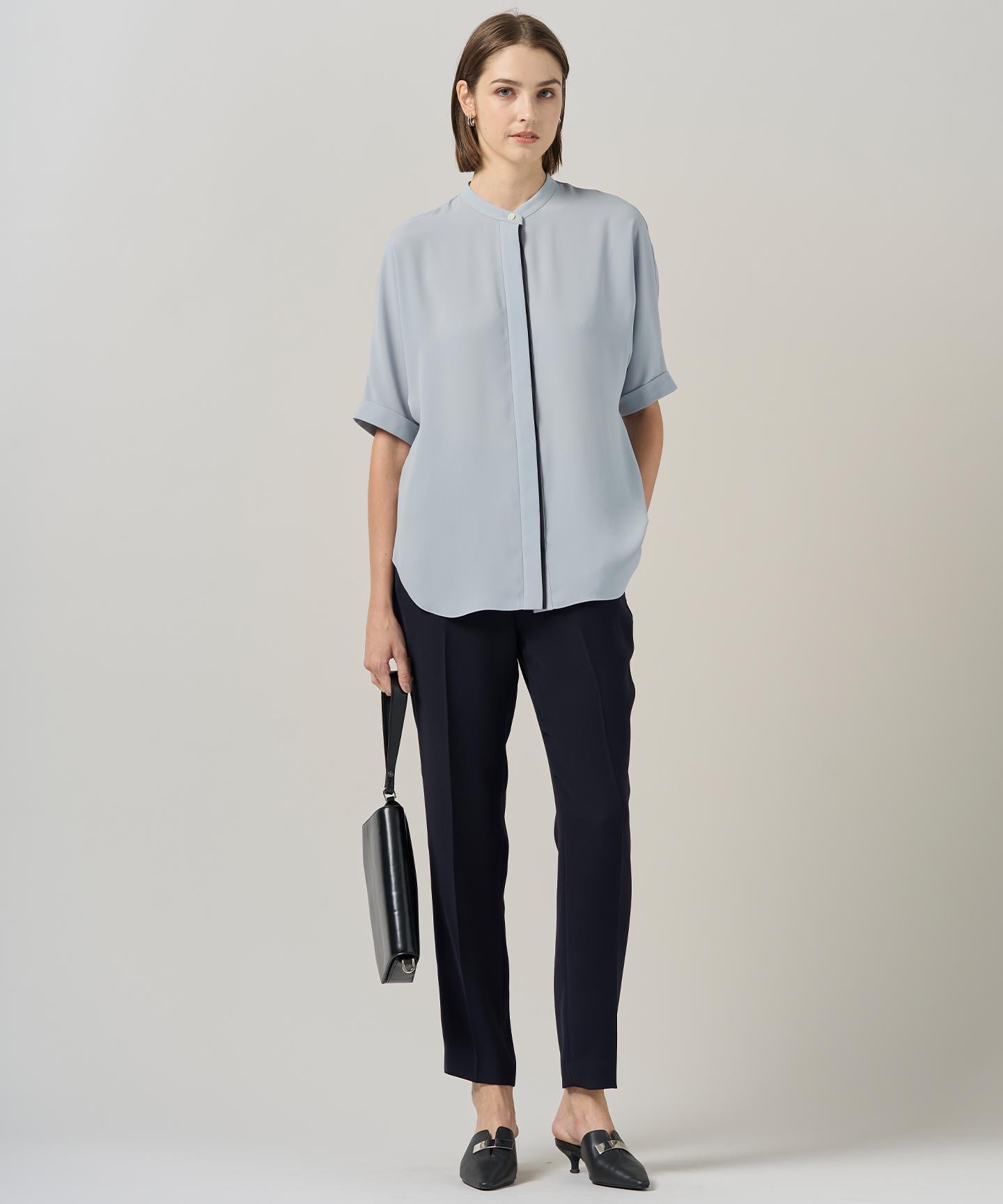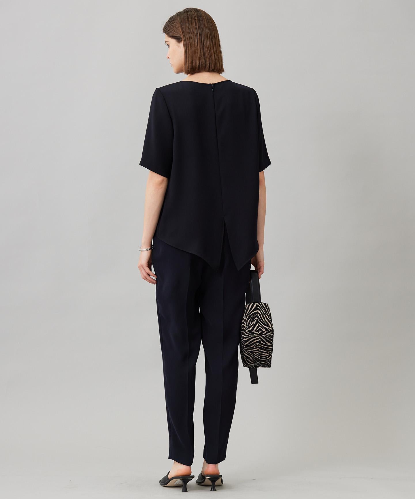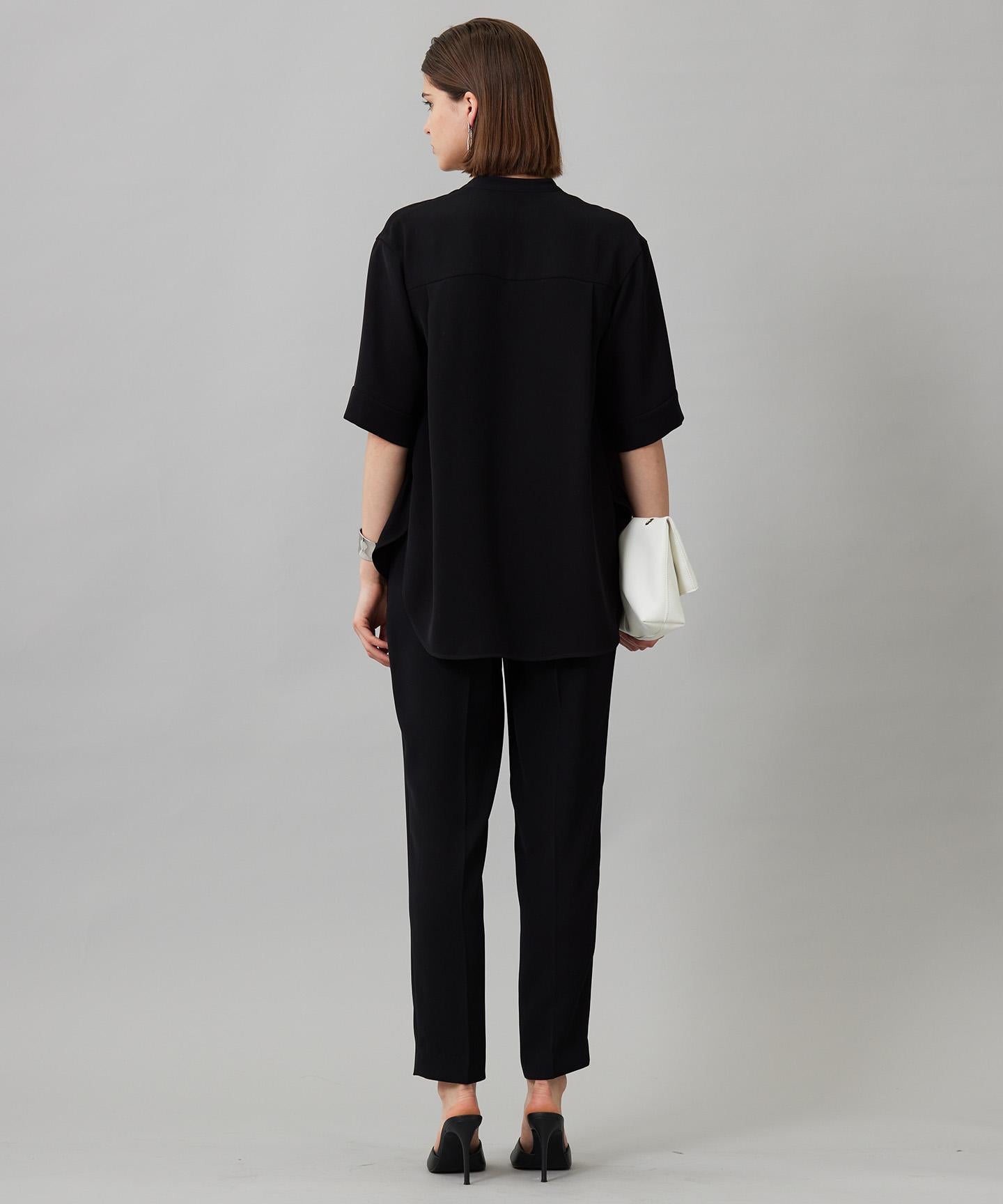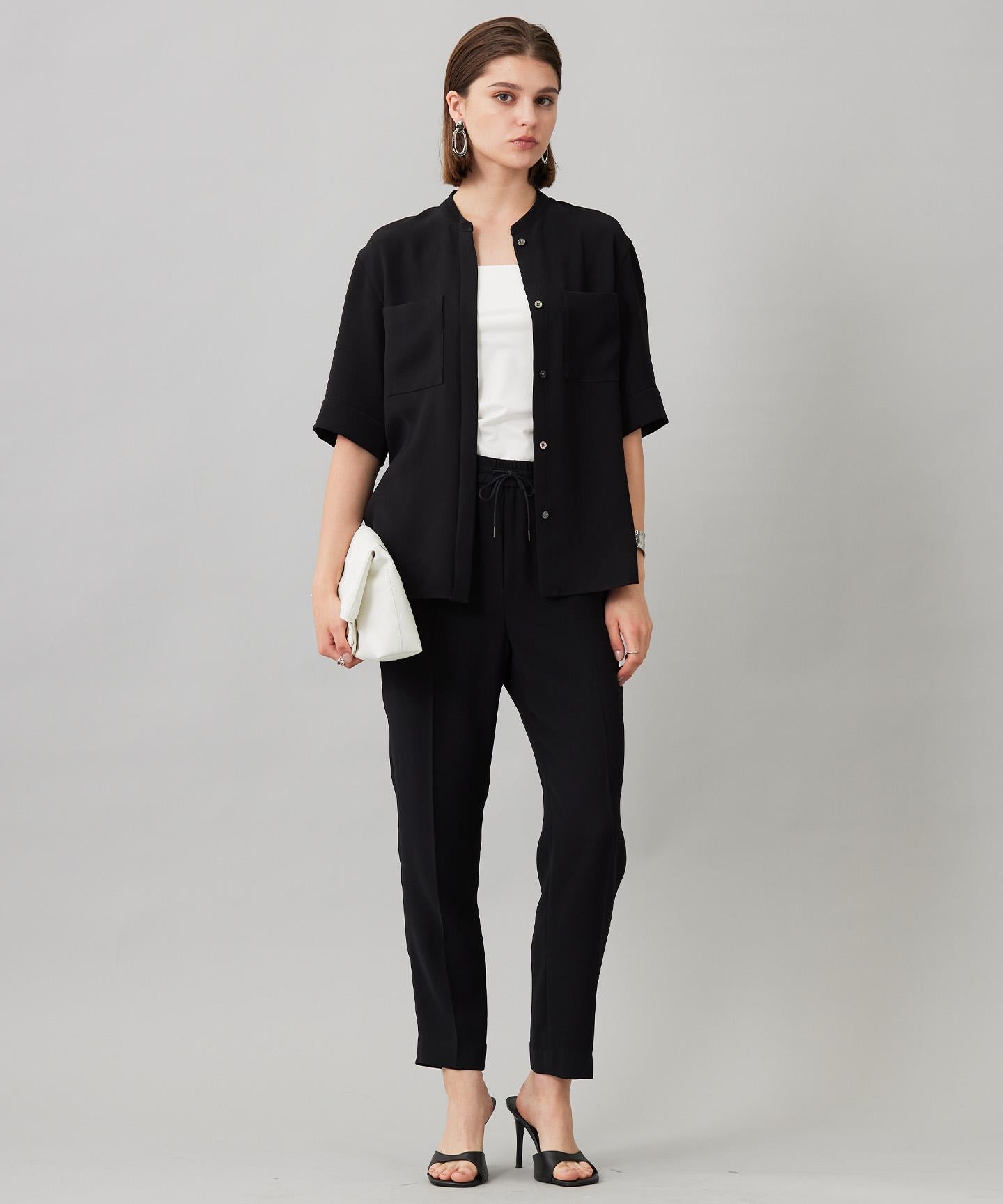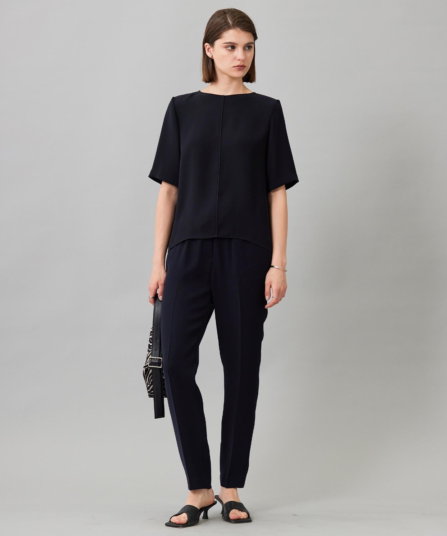 ■デザインウエストがドロスト仕様で、ストレスフリーな履き心地のスティックパンツです。合わせるトップスを選ばず、カジュアルからビジネス、セレモニーまで幅広いシーンで活躍します。単品でも同シリーズのブラウスとのセットアップでの着用もおすすめです。