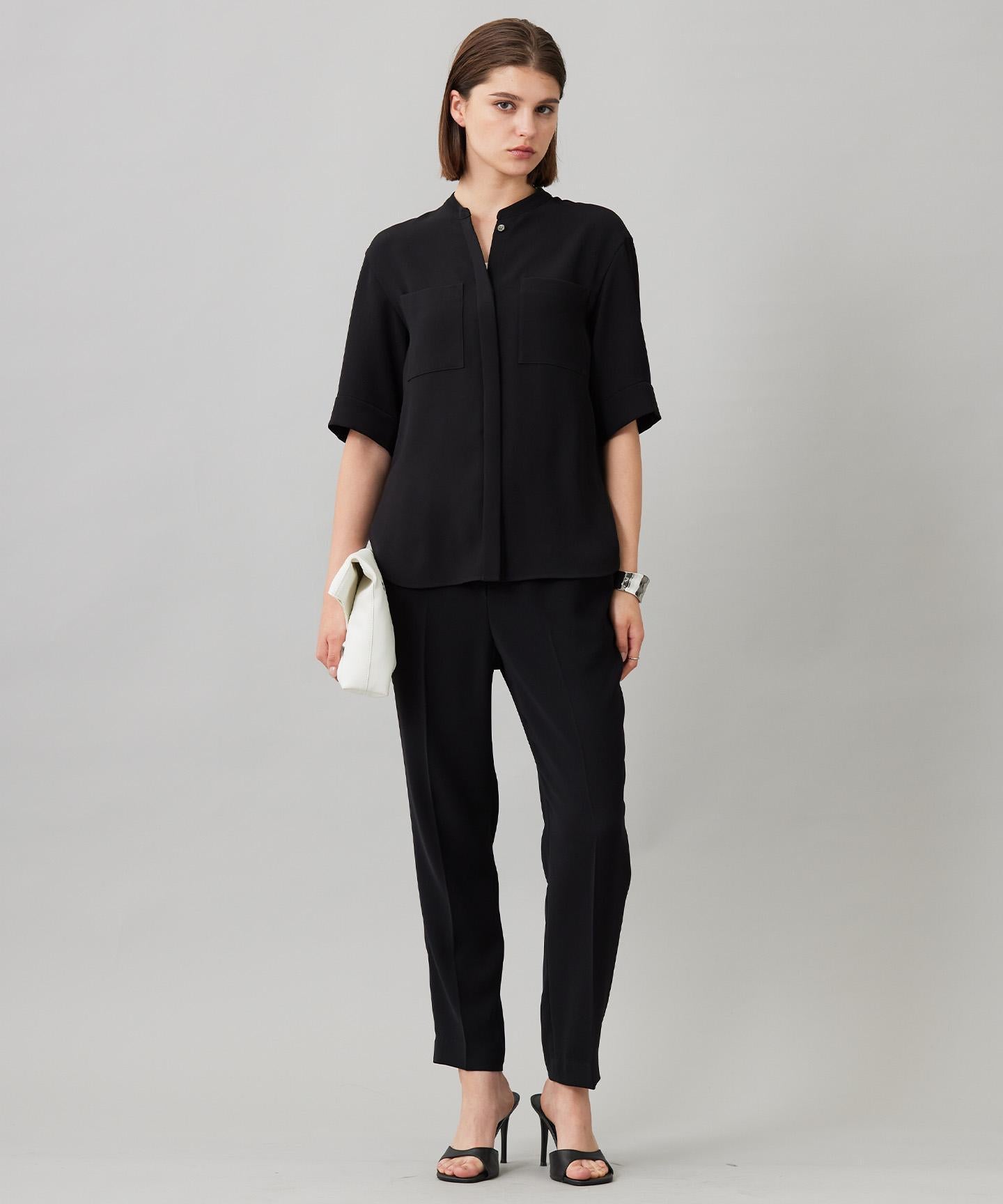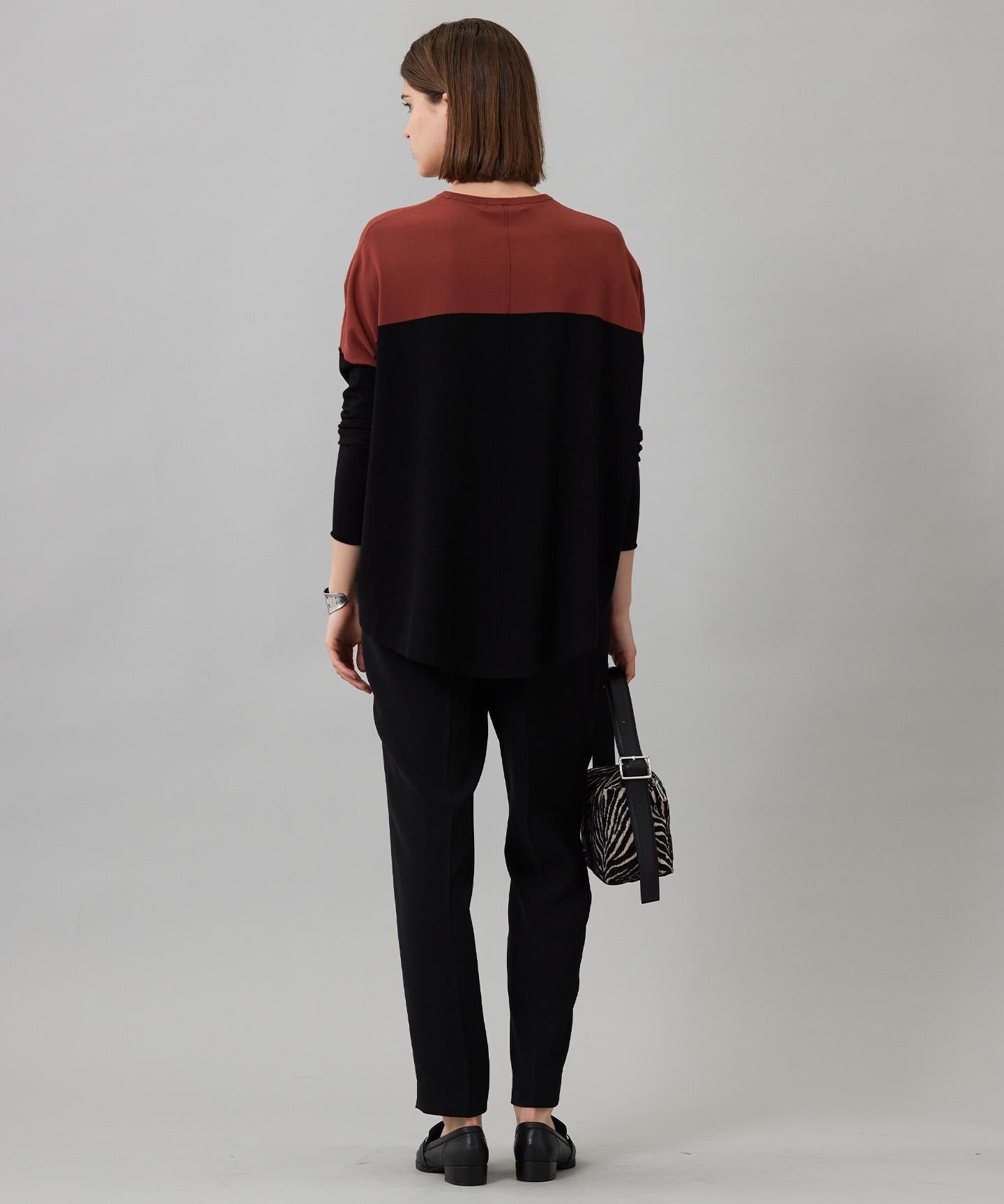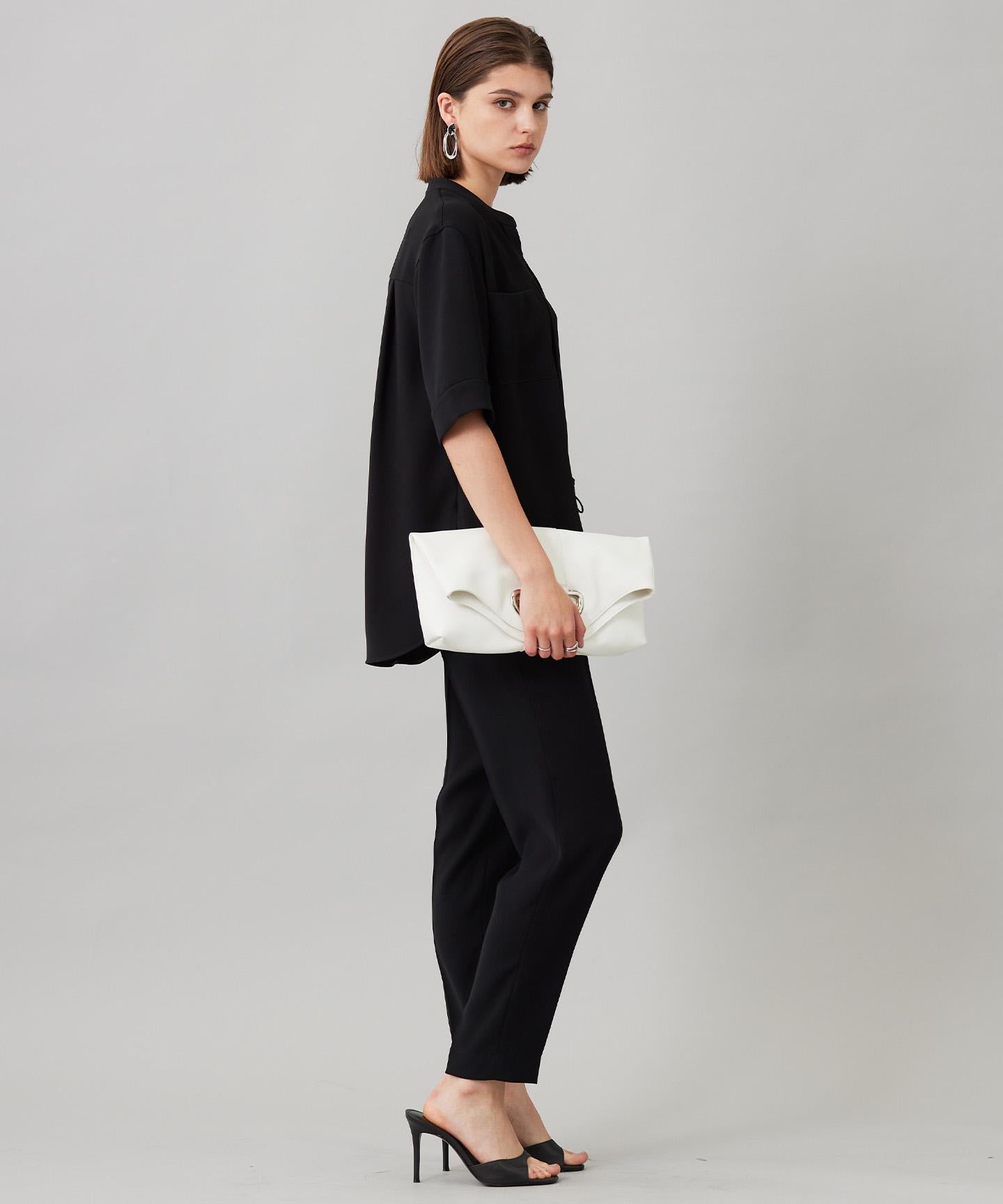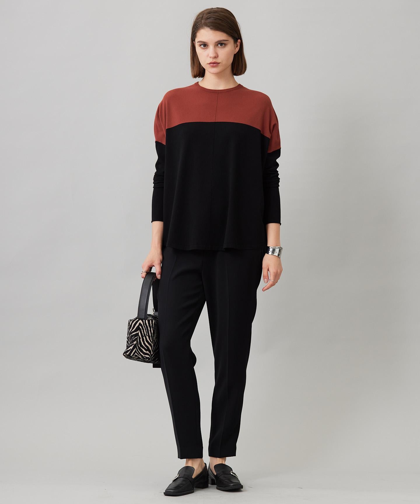 ■デザインウエストがドロスト仕様で、ストレスフリーな履き心地のスティックパンツです。合わせるトップスを選ばず、カジュアルからビジネス、セレモニーまで幅広いシーンで活躍します。単品でも同シリーズのブラウスとのセットアップでの着用もおすすめです。