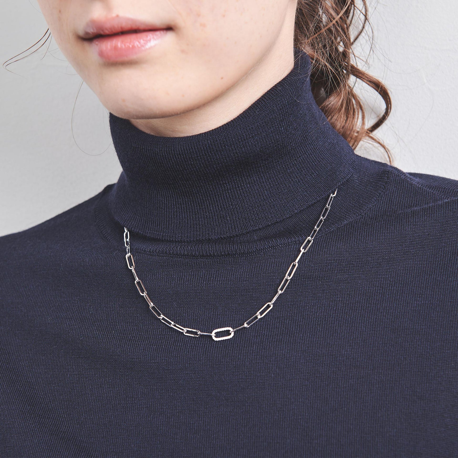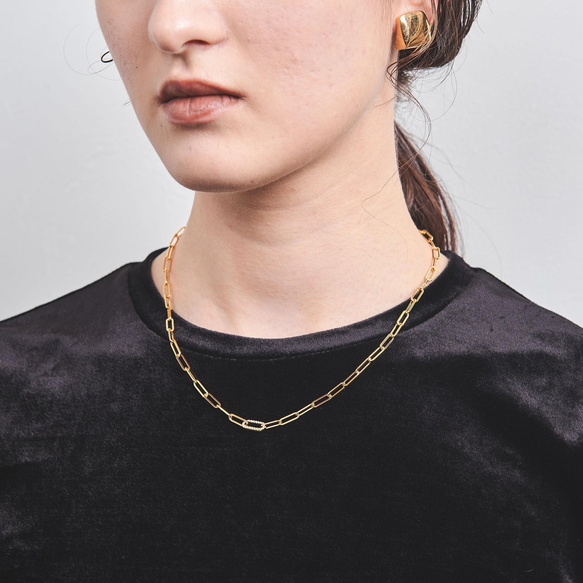 デザインチェーンにビジューパーツを忍ばせたネックレス。