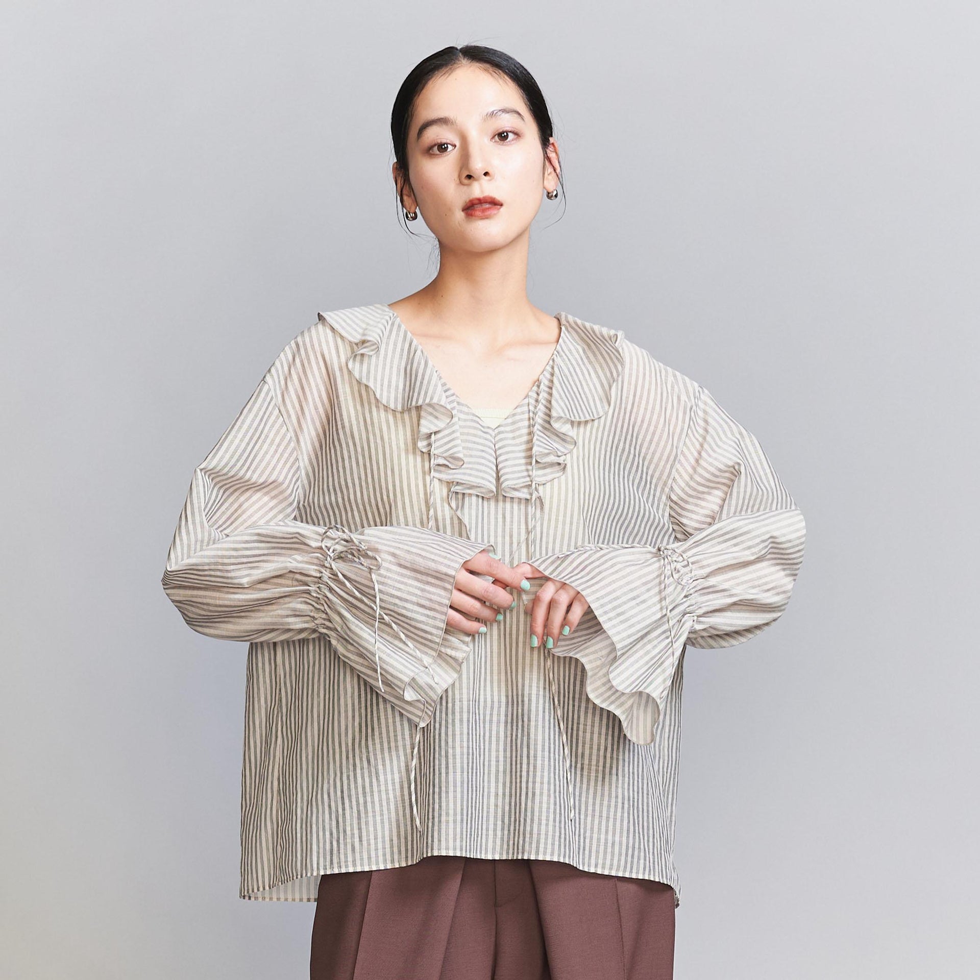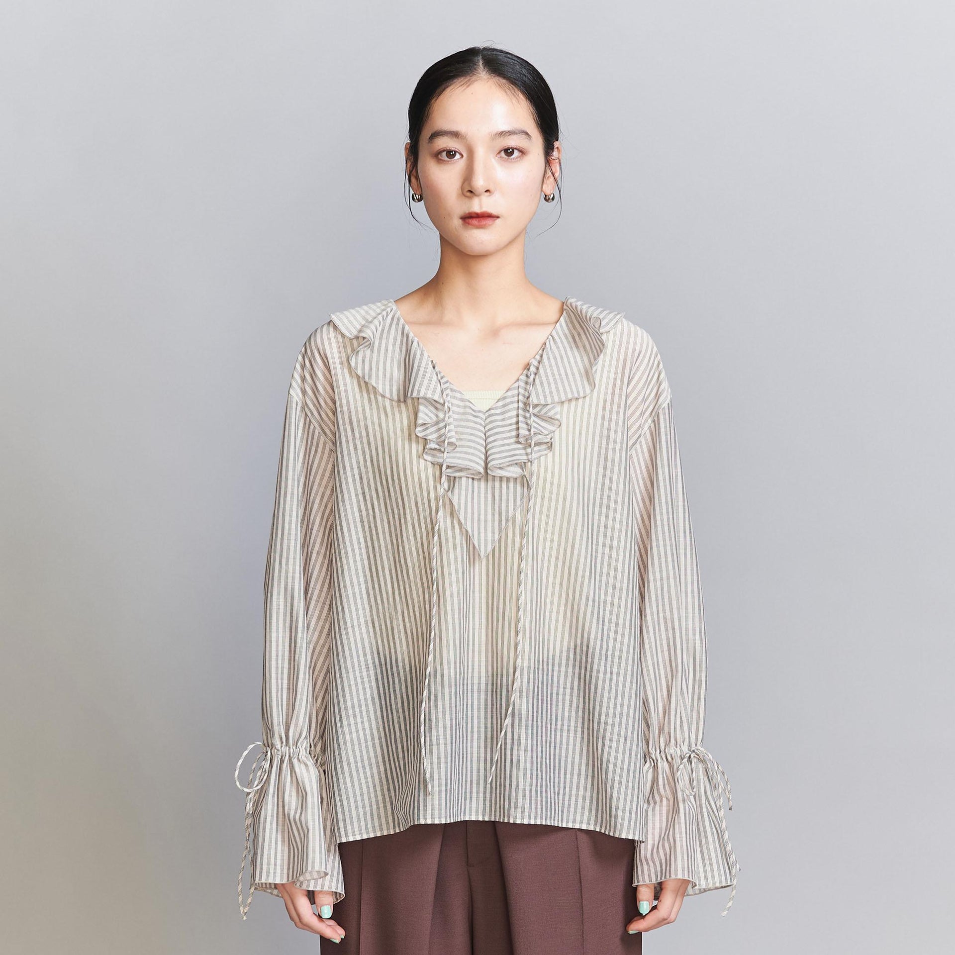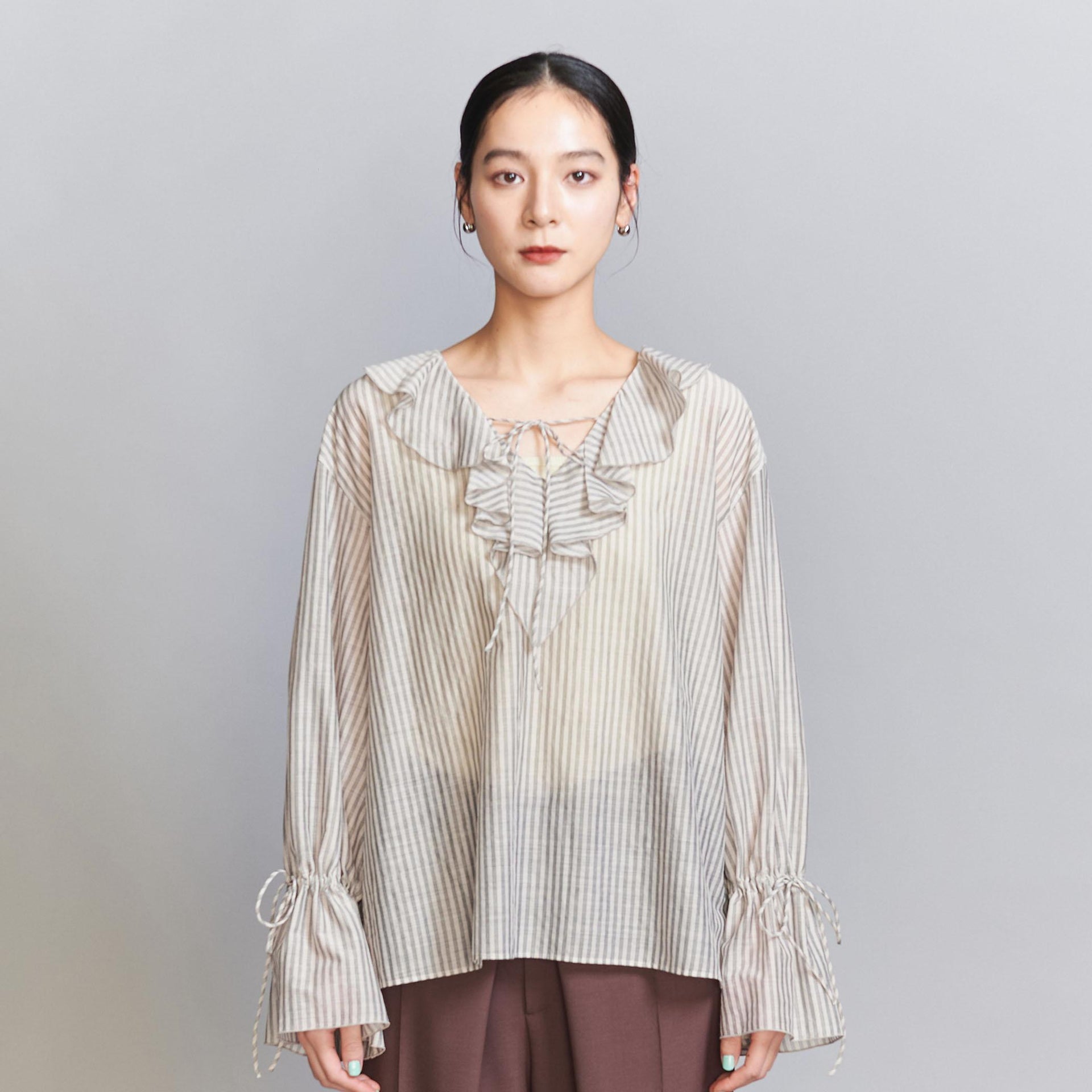 ストライプ ラッフルシャツ