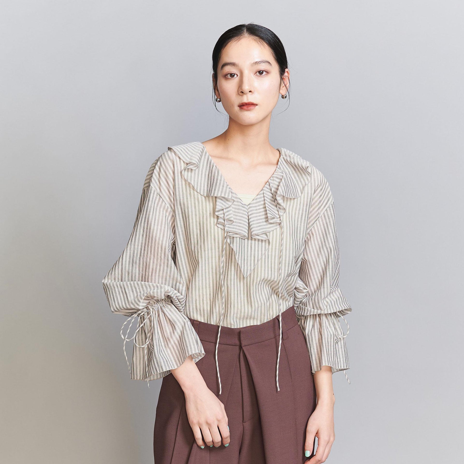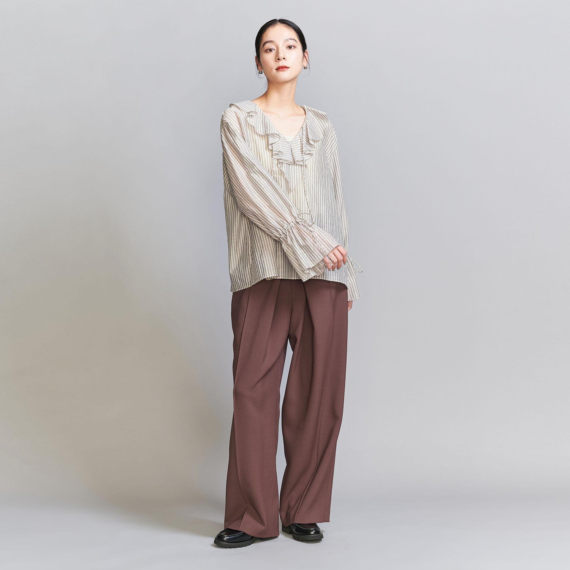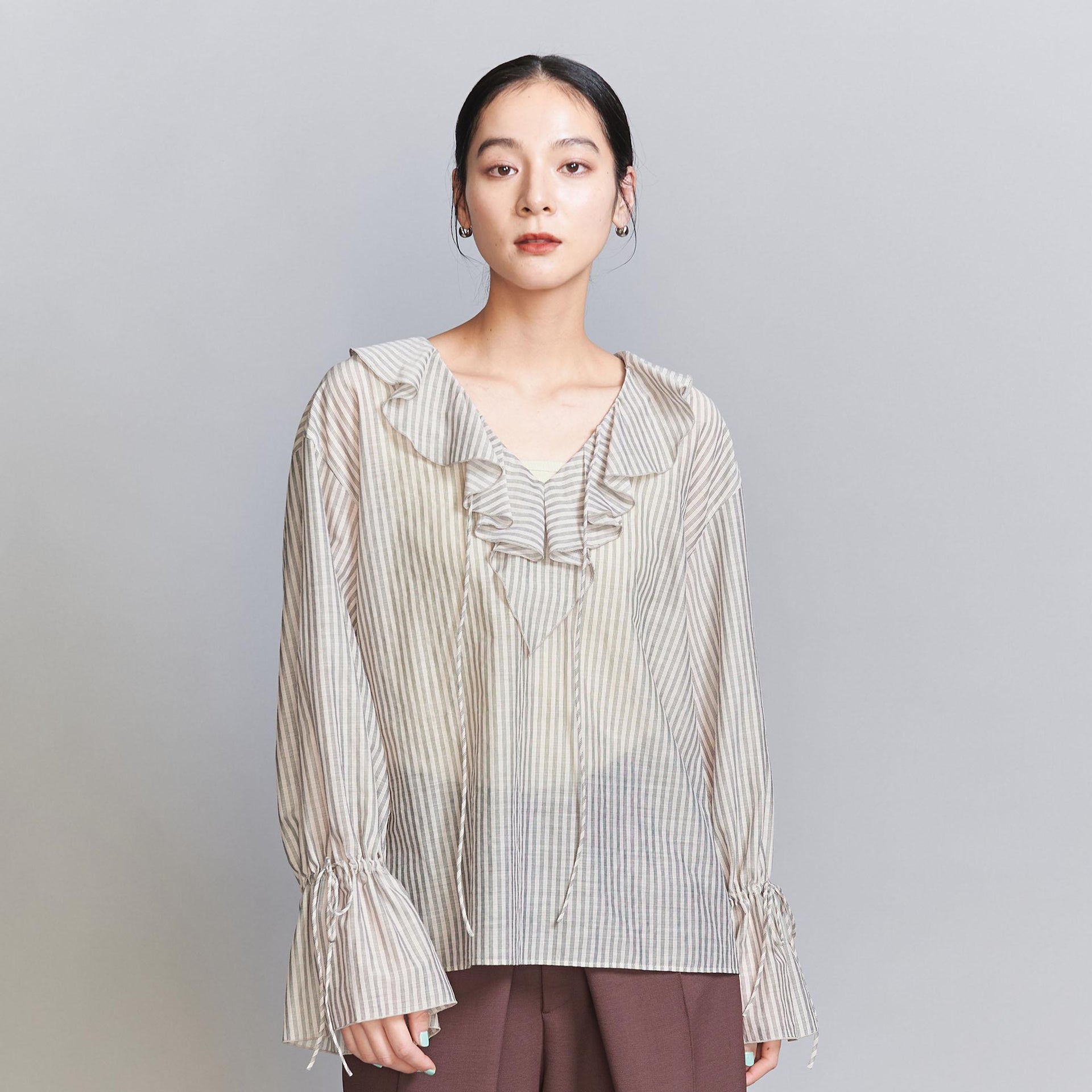 ストライプ ラッフルシャツ
