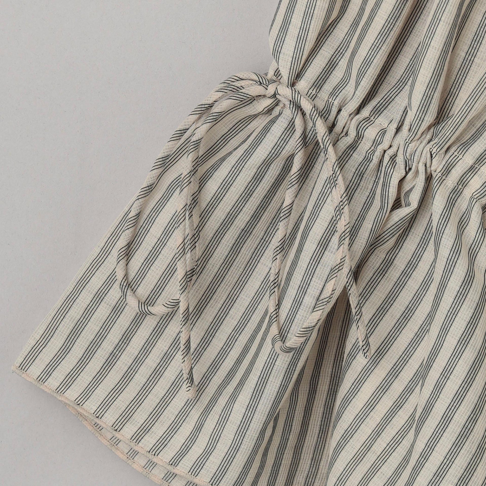 細紐はリボン結びにしても、結ばずに垂らしてラフに着こなすのも◎。