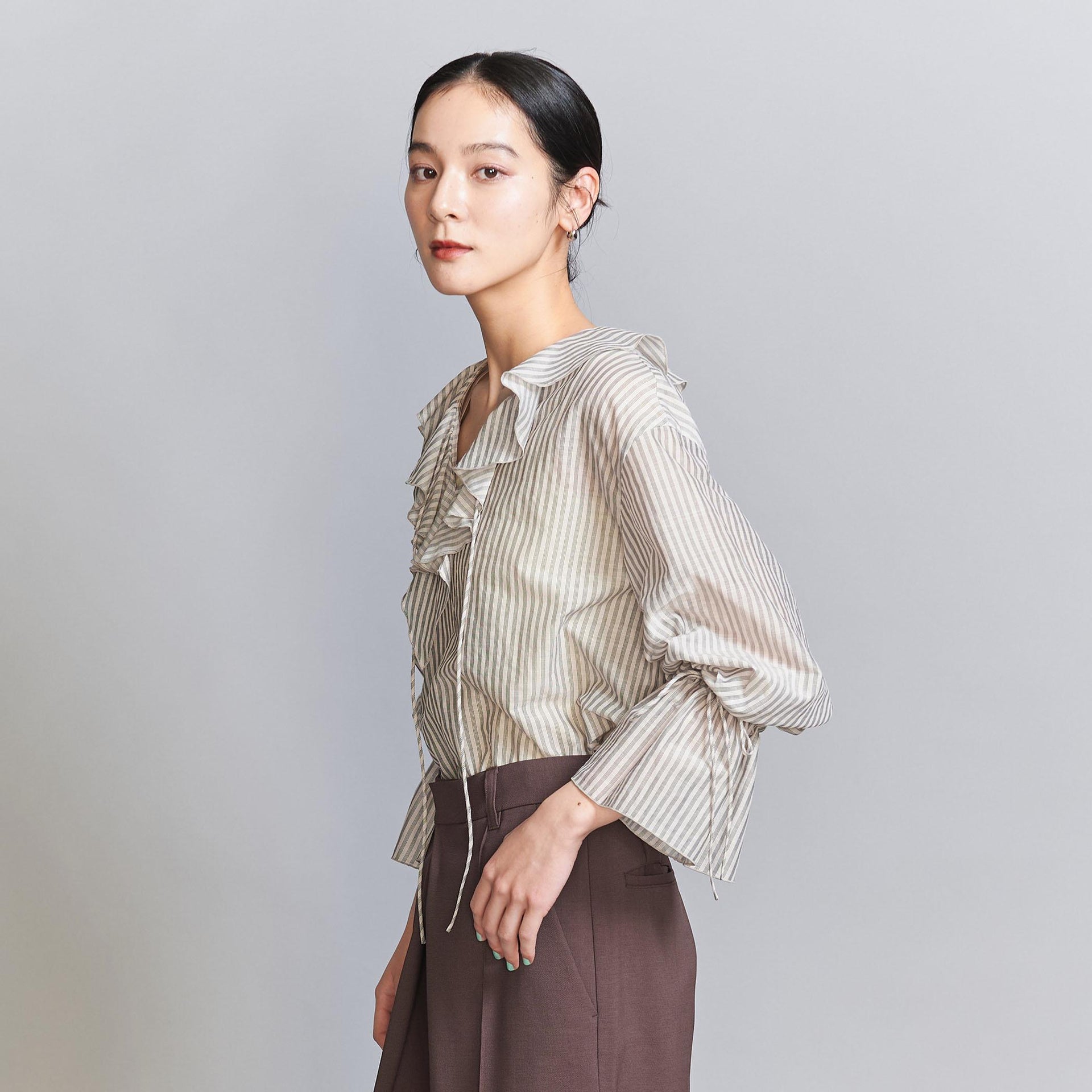 大人の甘さを漂わせる着映えラッフルシャツ