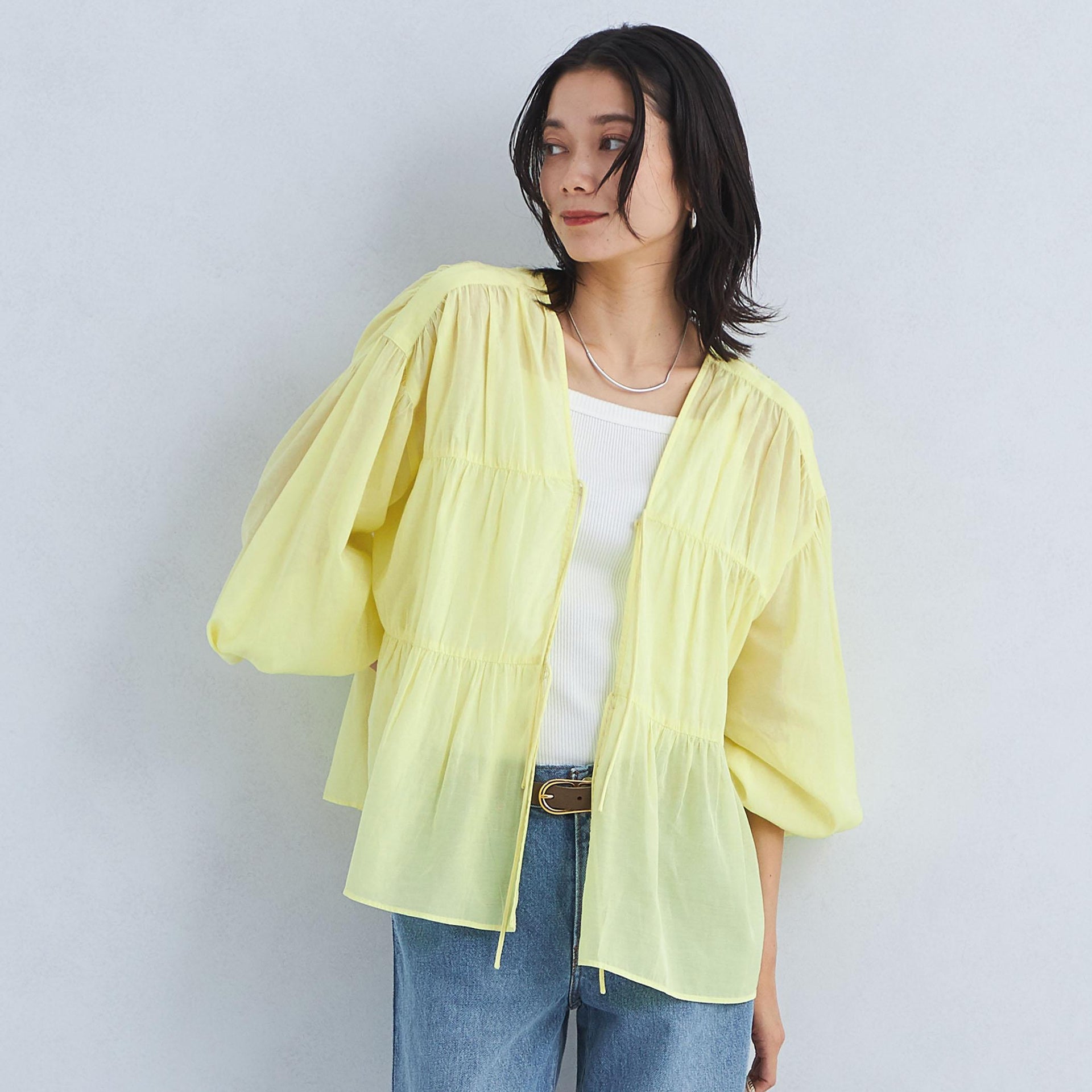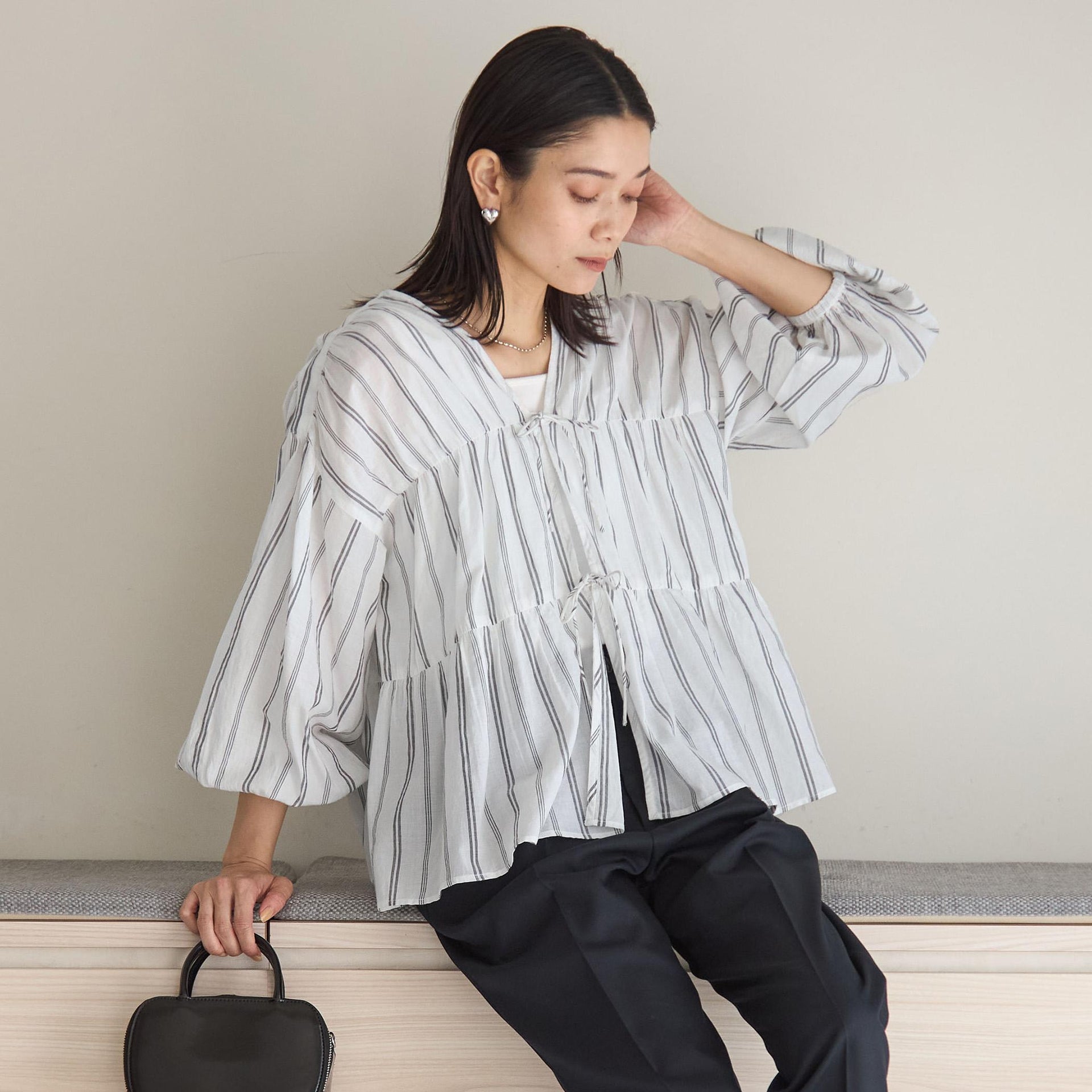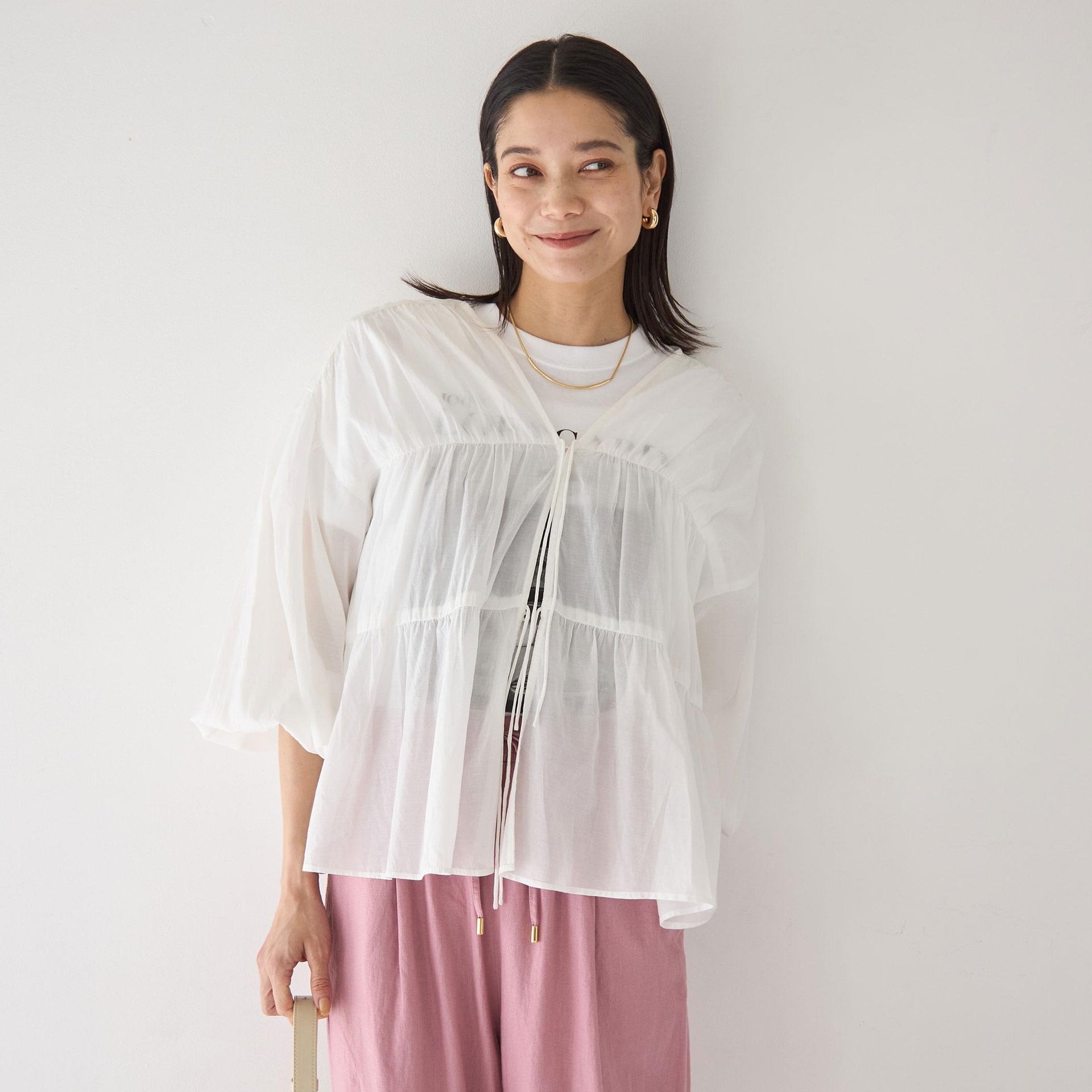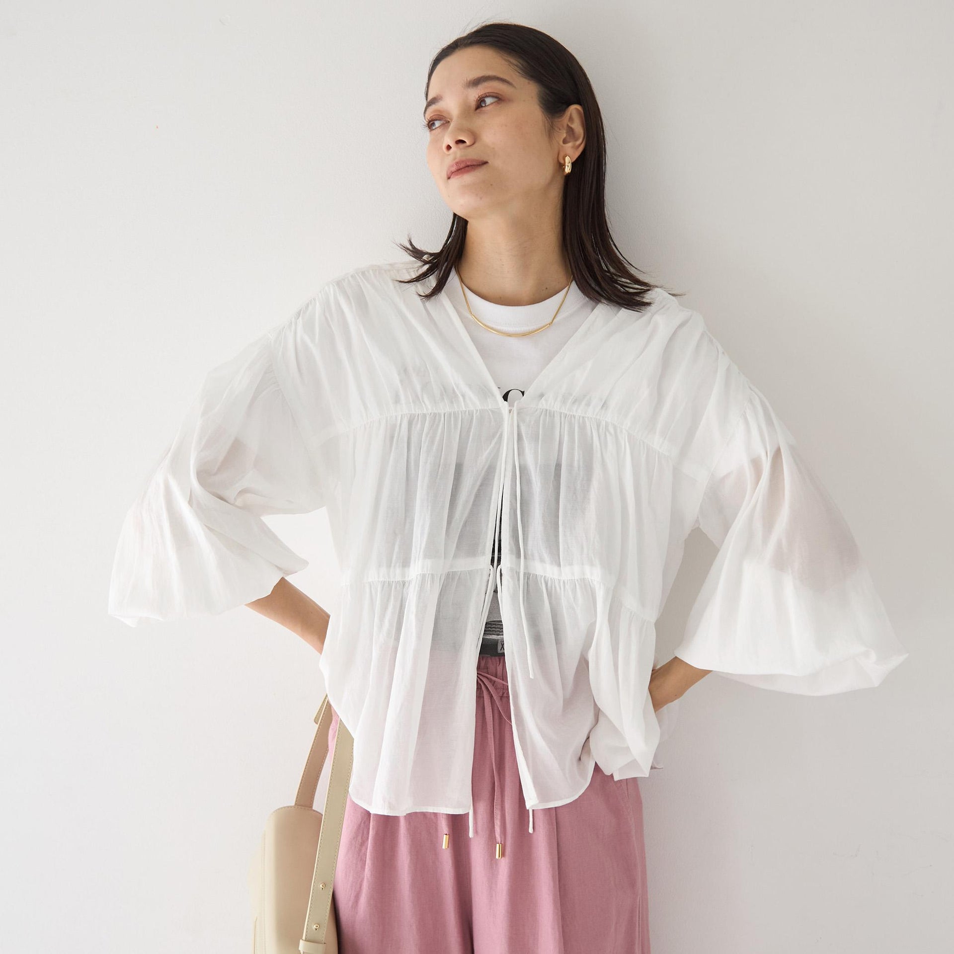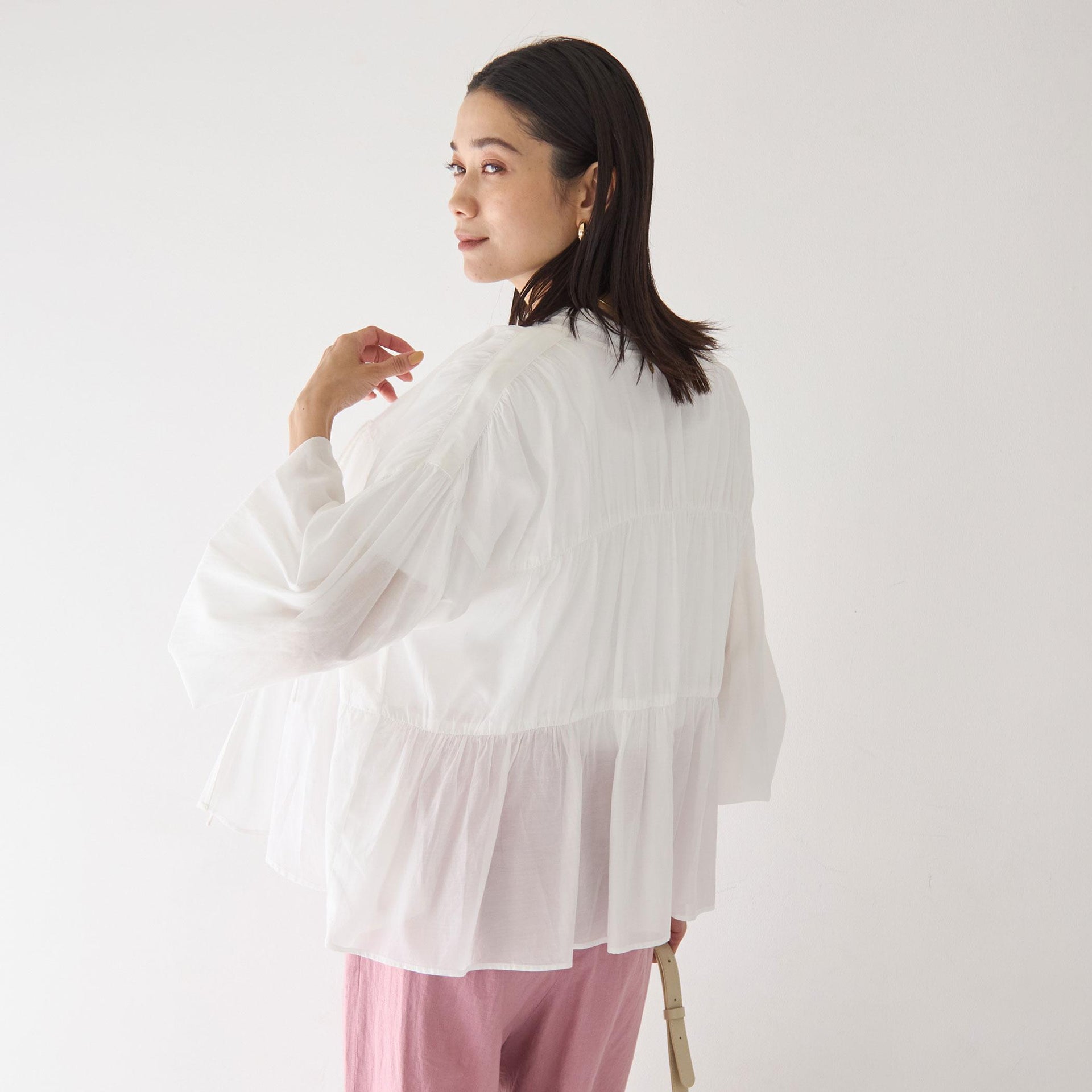 ブラウスとしてはもちろん、羽織りとしても活躍する前後2WAY仕様で、甘さと華やかさを自在にアレンジ。