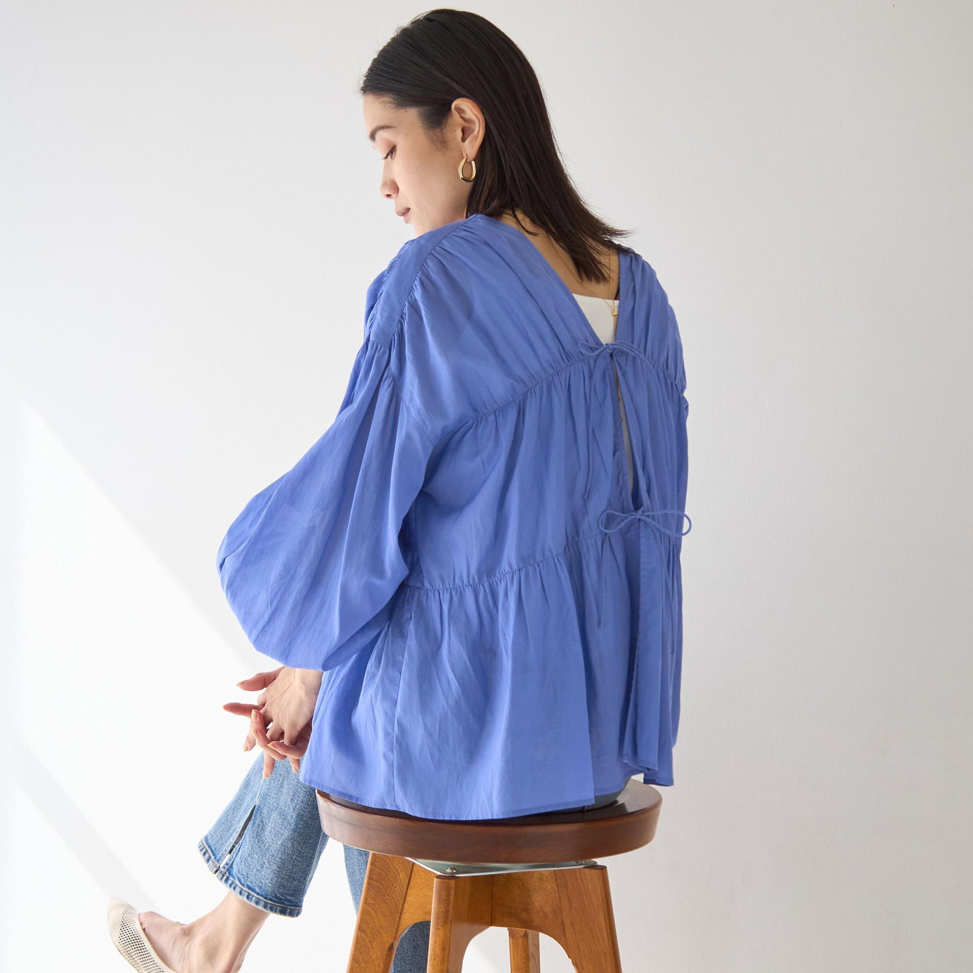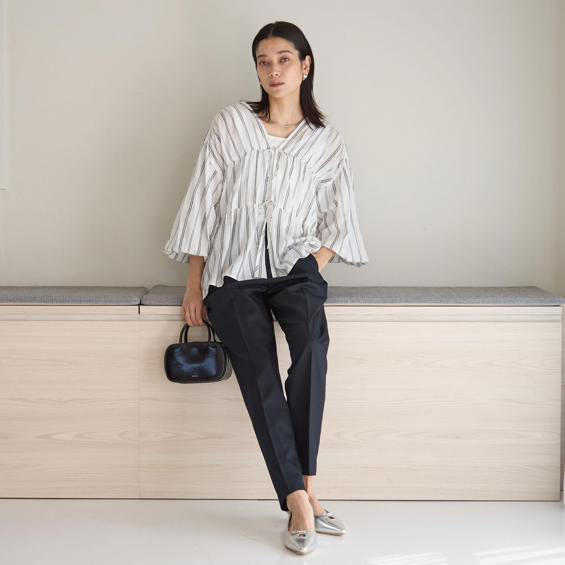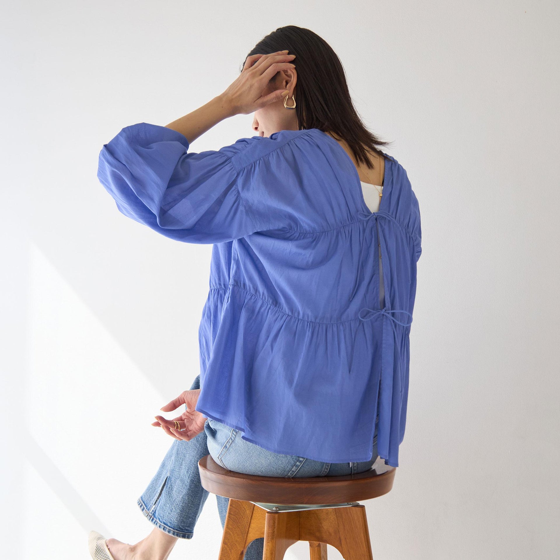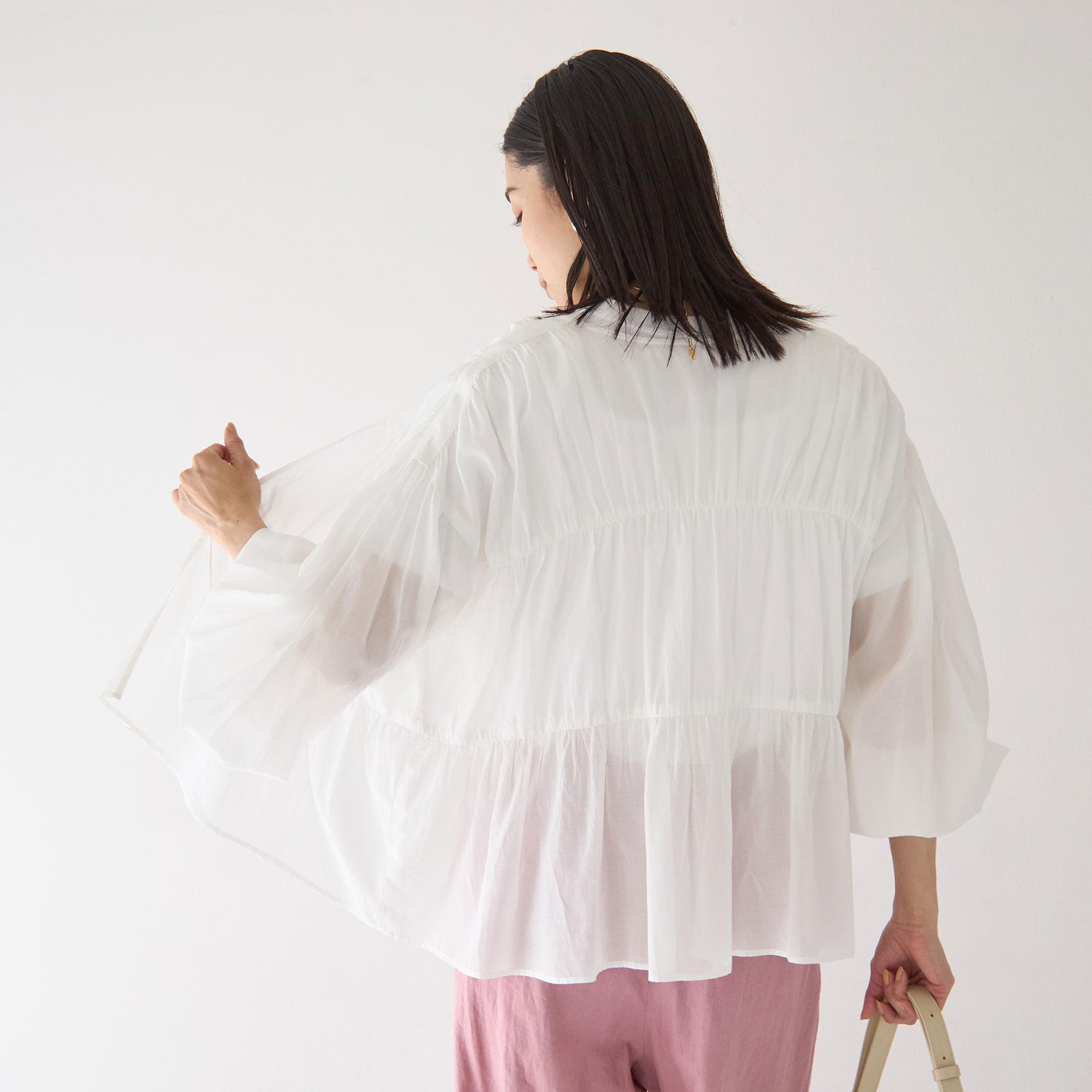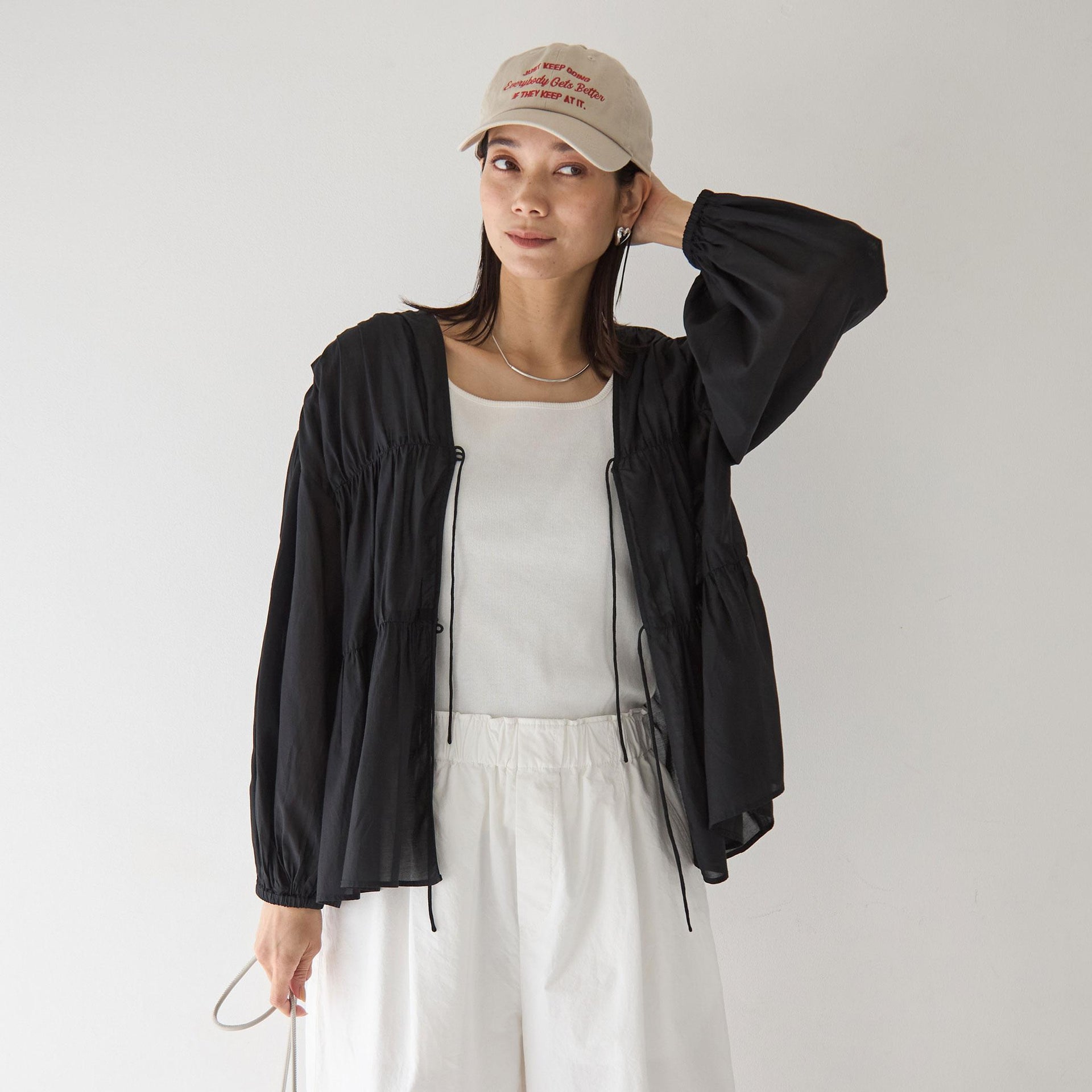ブラウスとしてはもちろん、羽織りとしても活躍する前後2WAY仕様で、甘さと華やかさを自在にアレンジ。