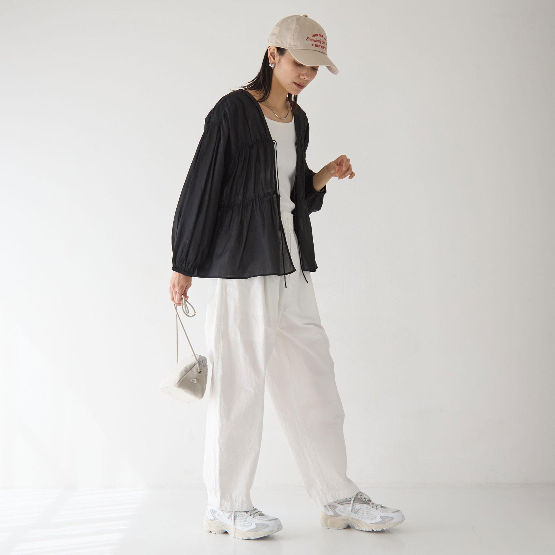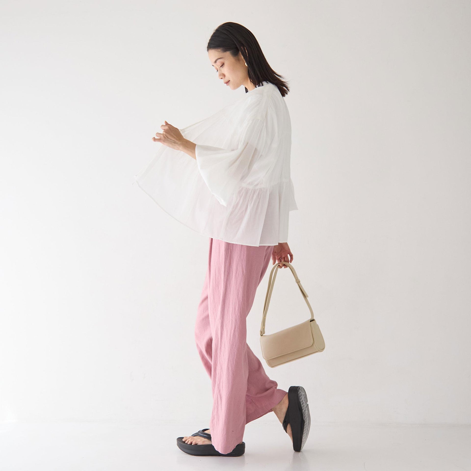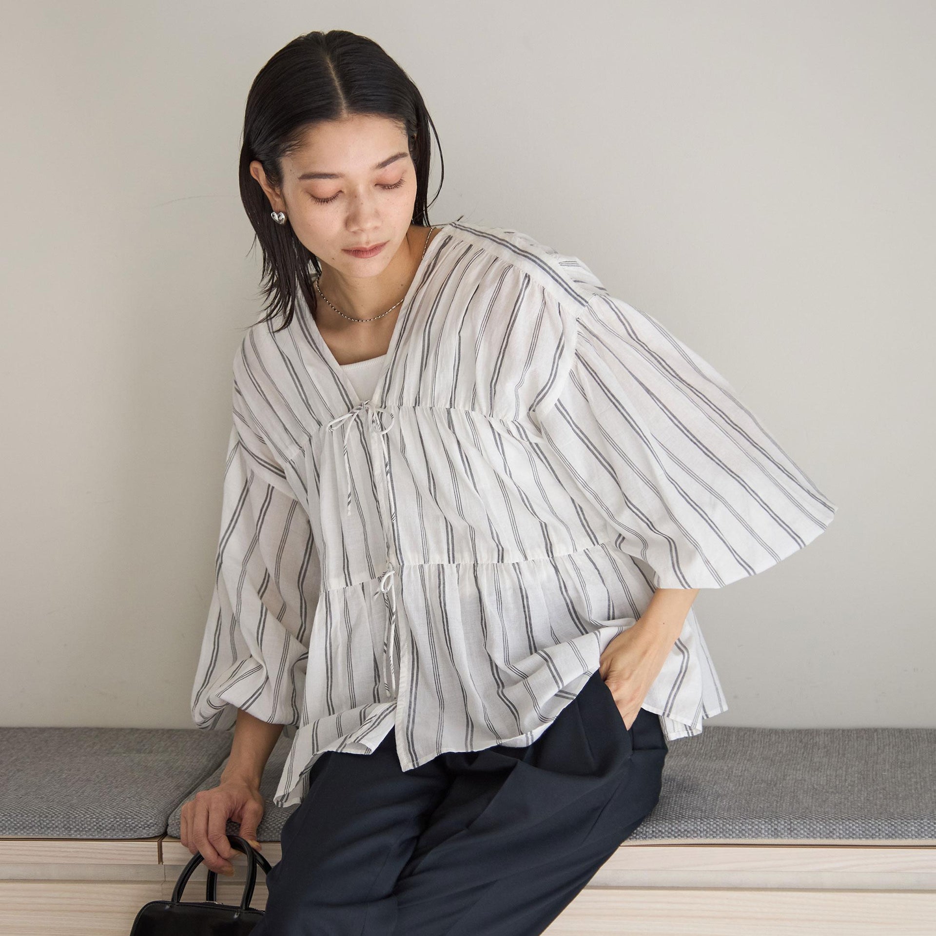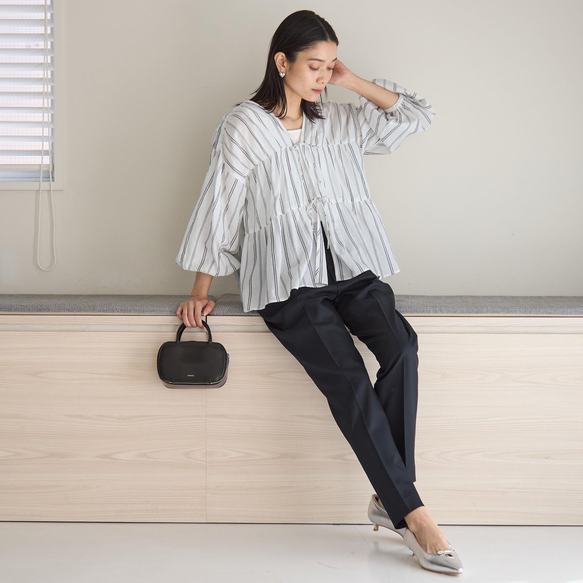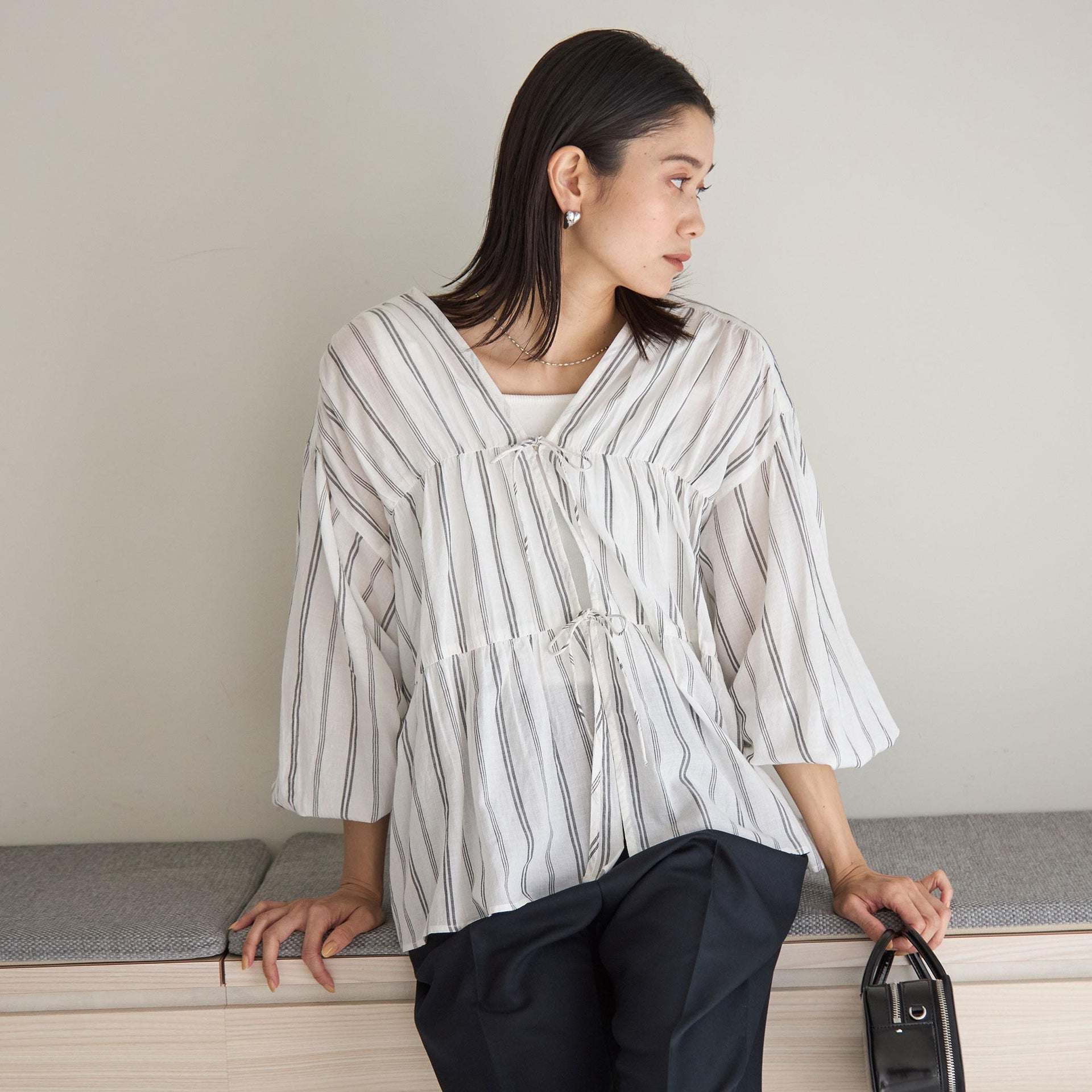 ブラウスとしてはもちろん、羽織りとしても活躍する前後2WAY仕様で、甘さと華やかさを自在にアレンジ。