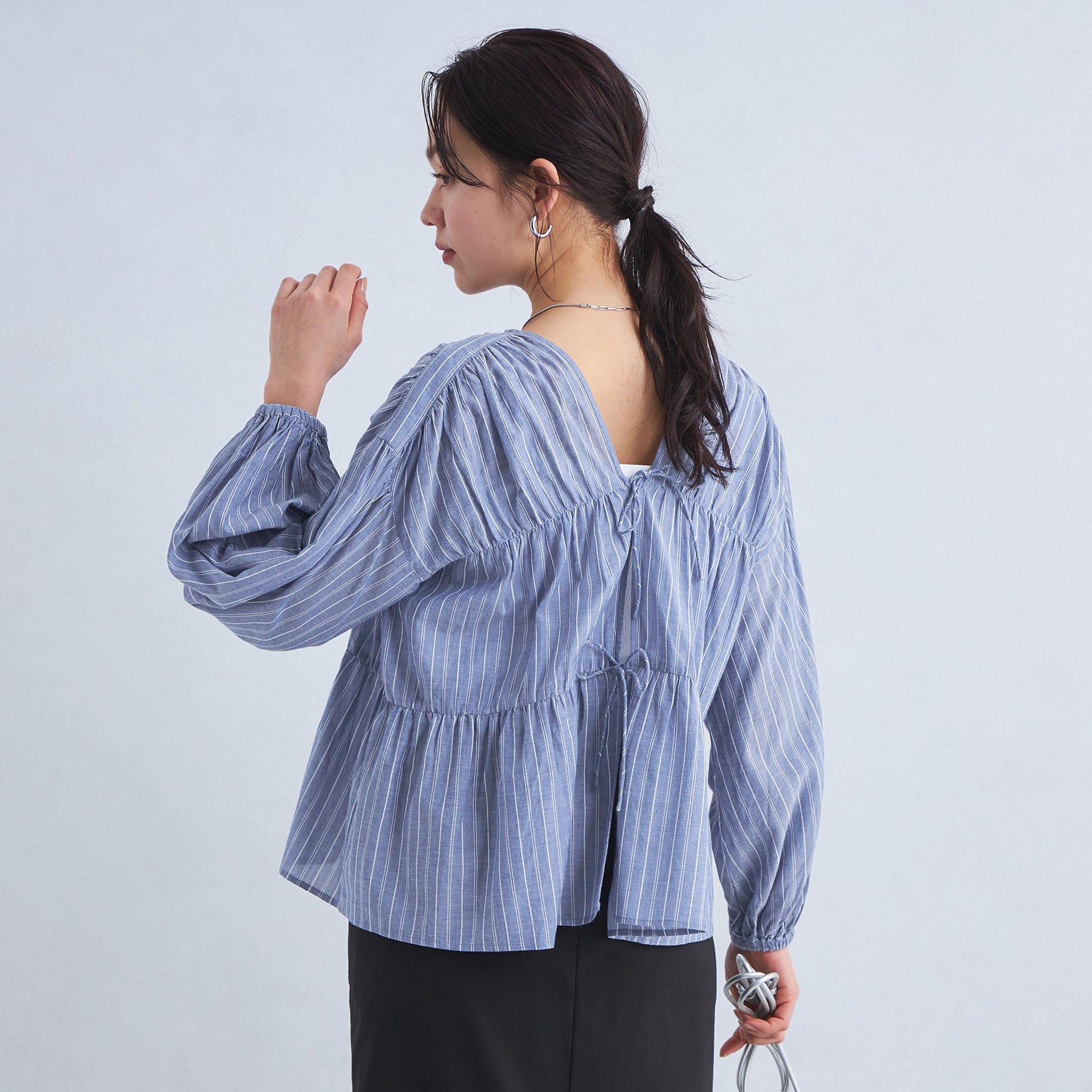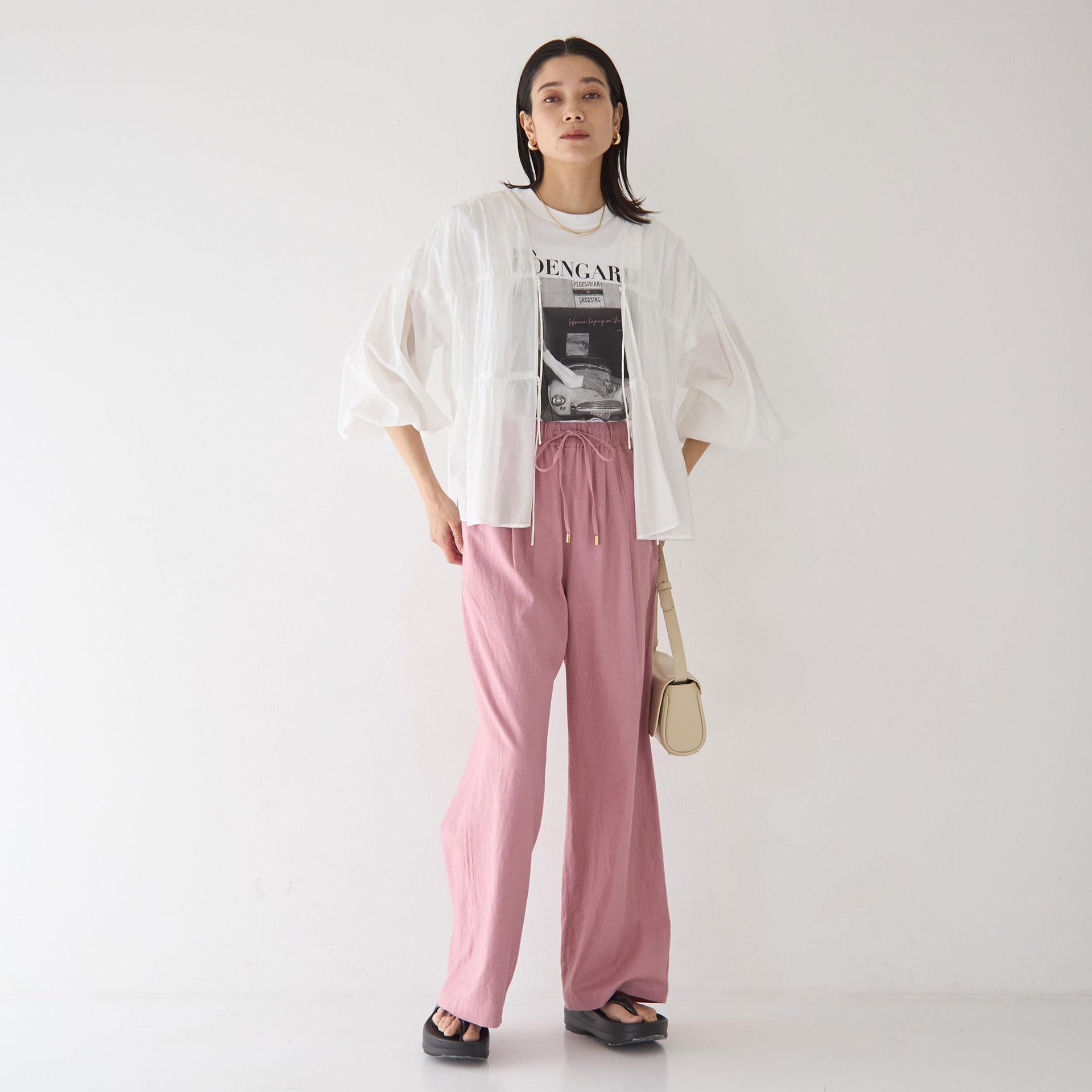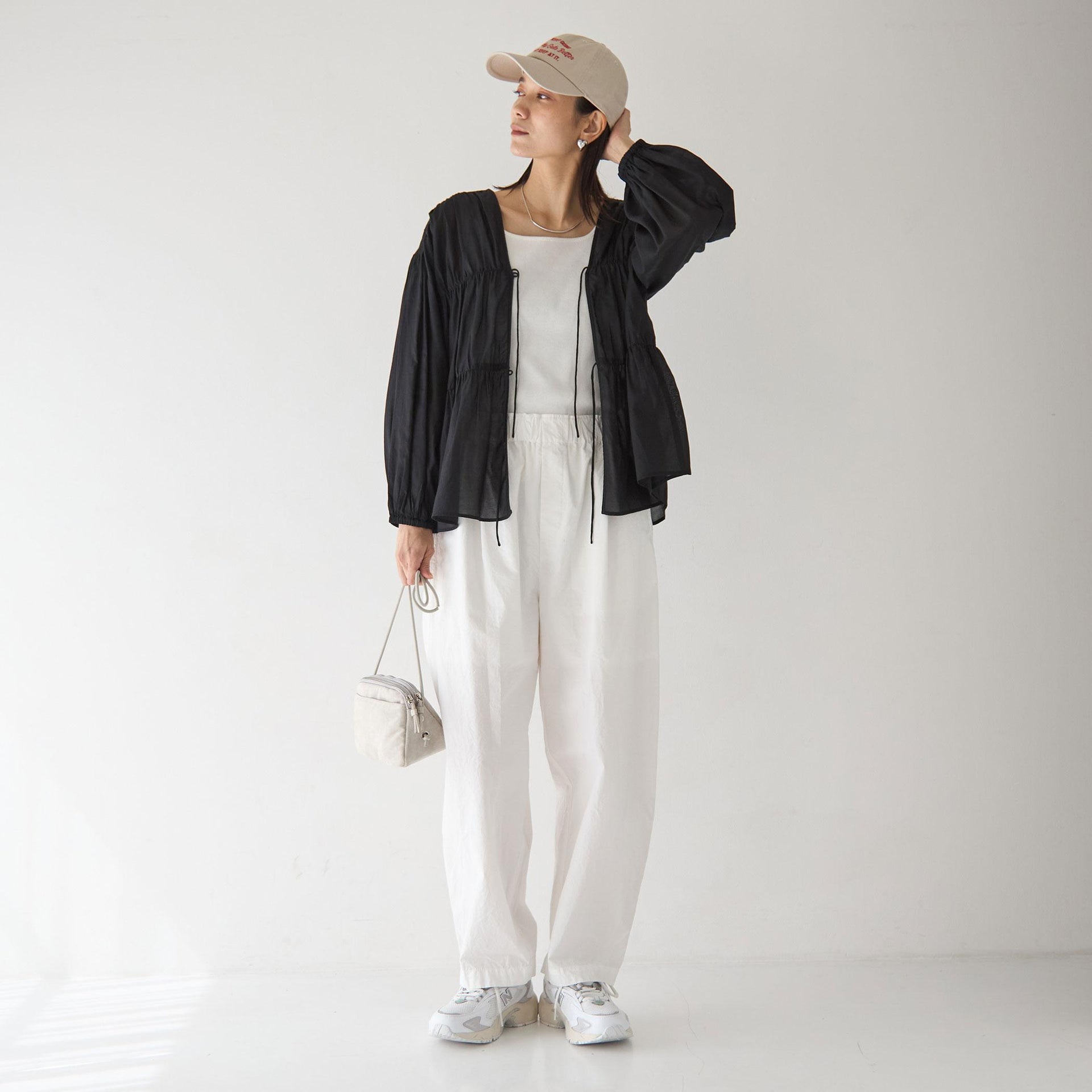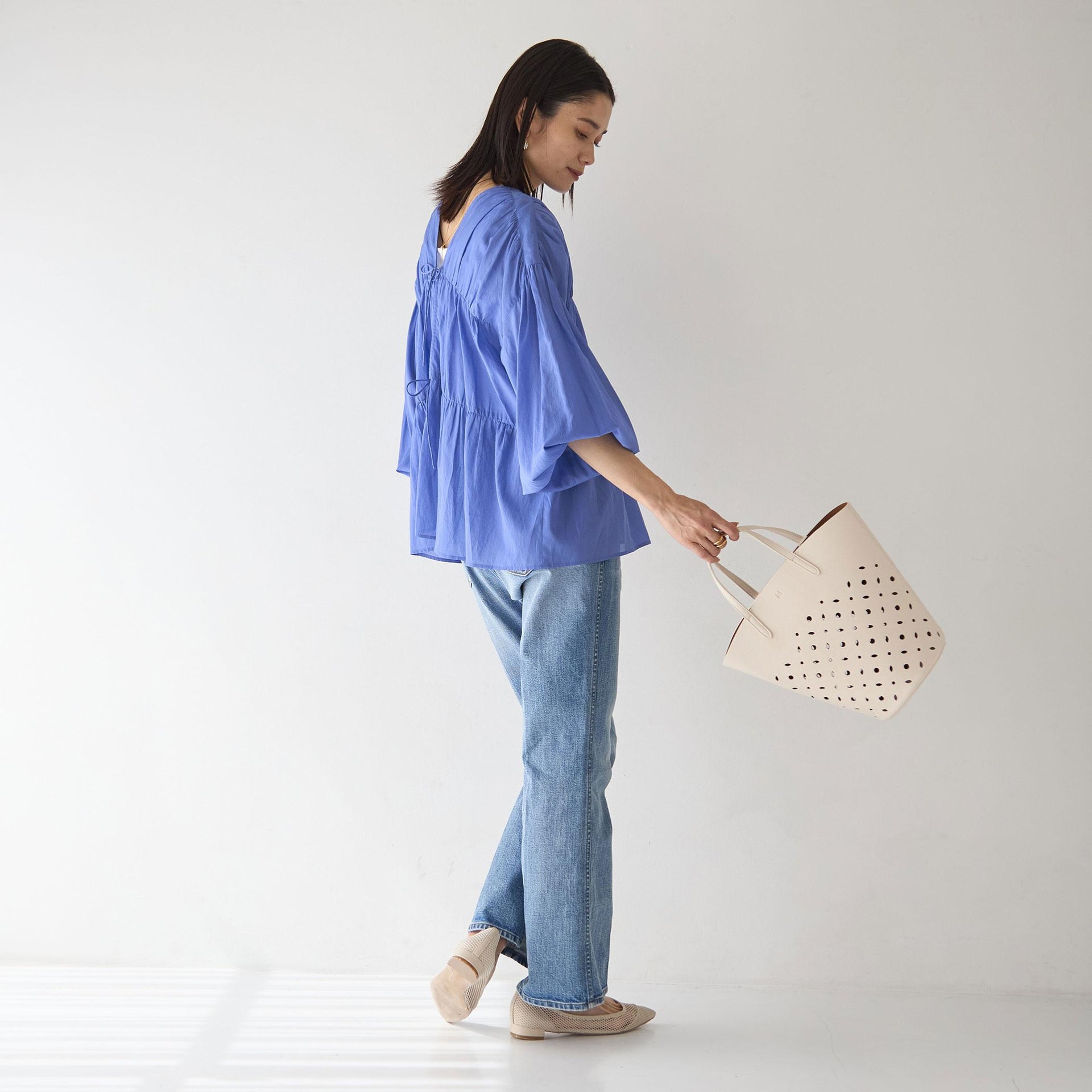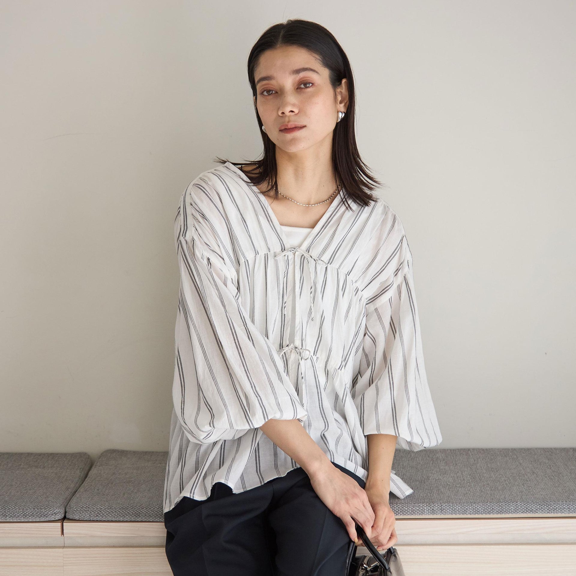 ブラウスとしてはもちろん、羽織りとしても活躍する前後2WAY仕様で、甘さと華やかさを自在にアレンジ。