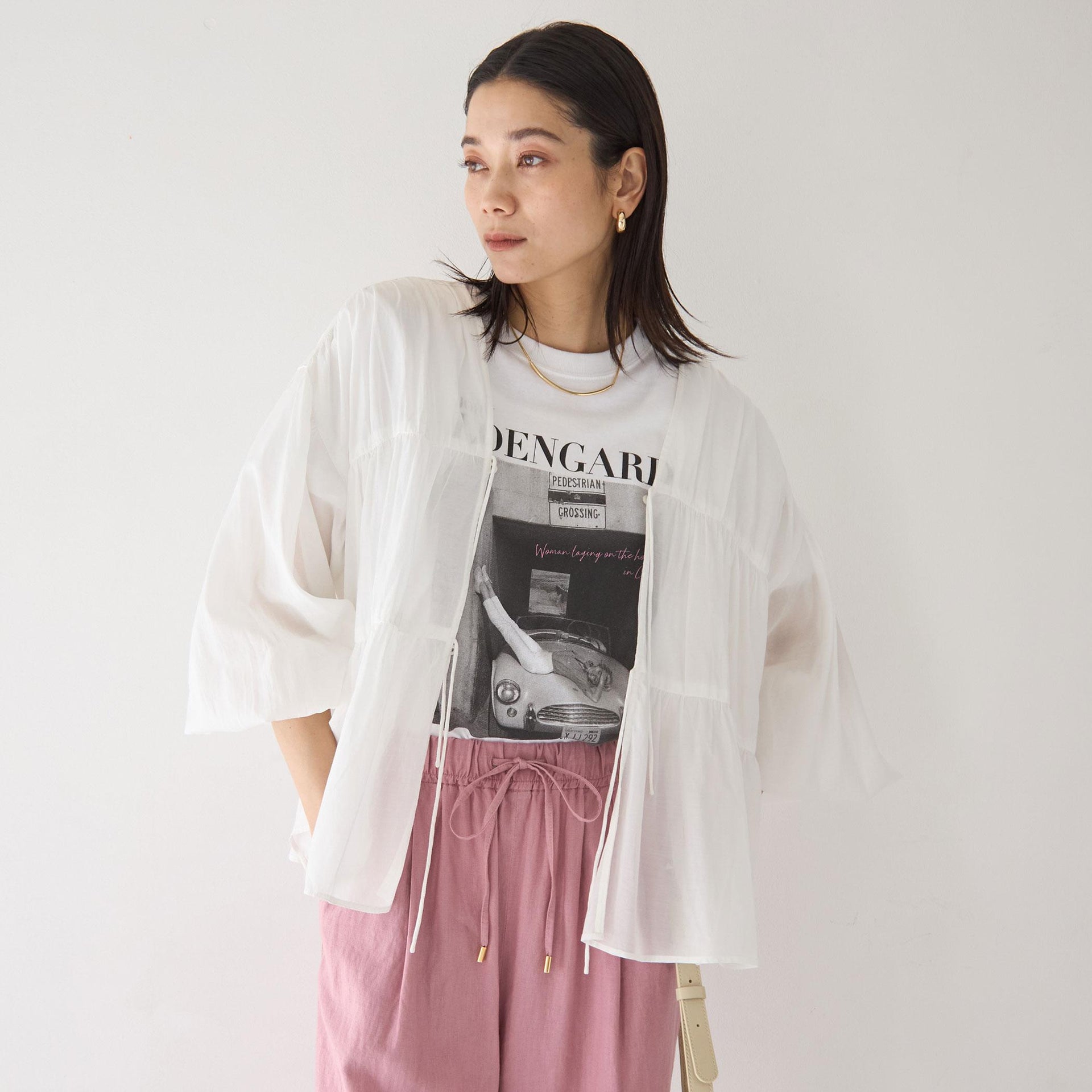 羽織るだけで決まるデザインで、春夏ムードをぐっと引き上げる主役級の一枚。