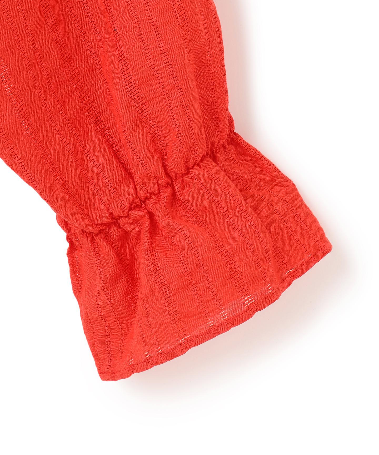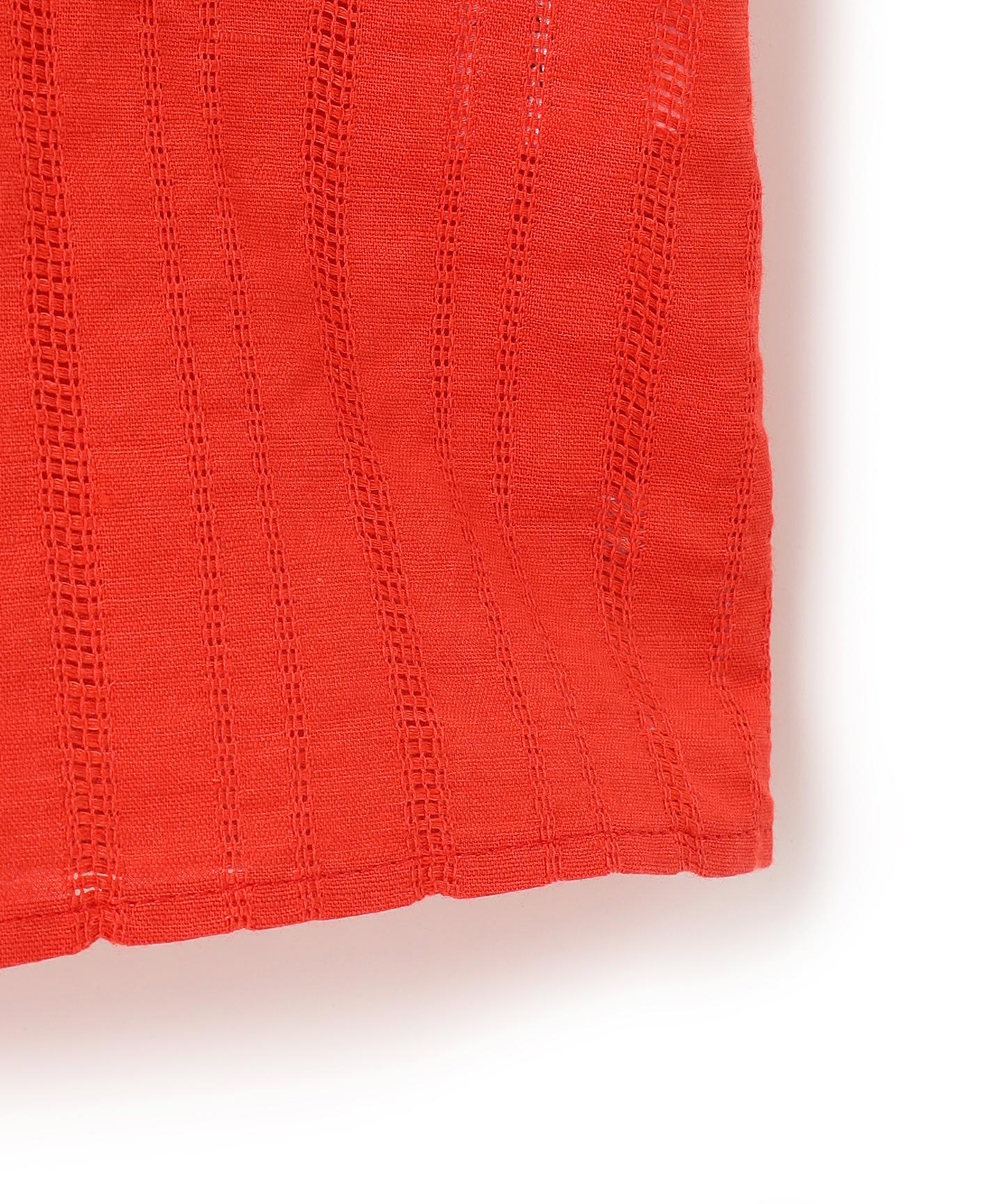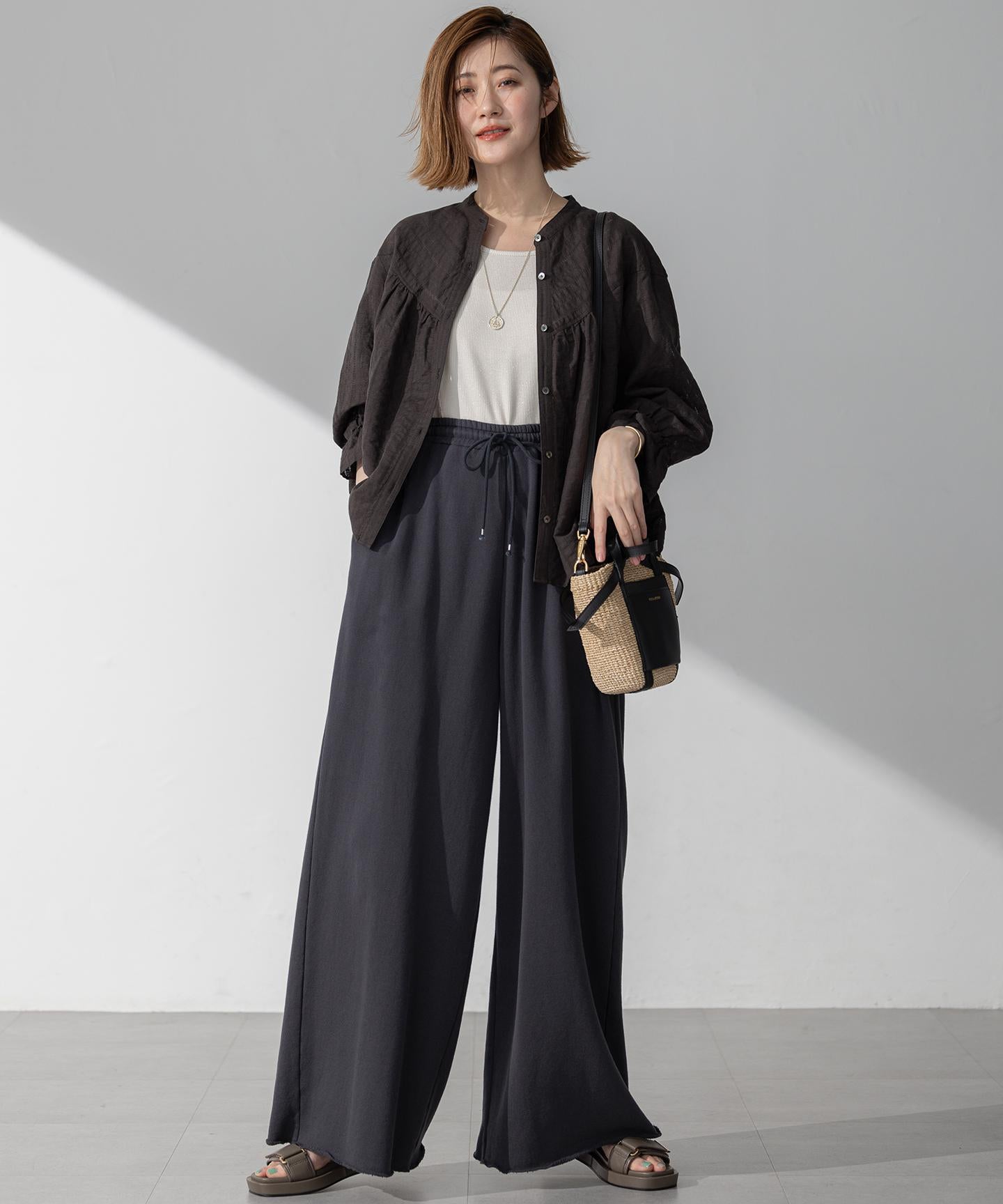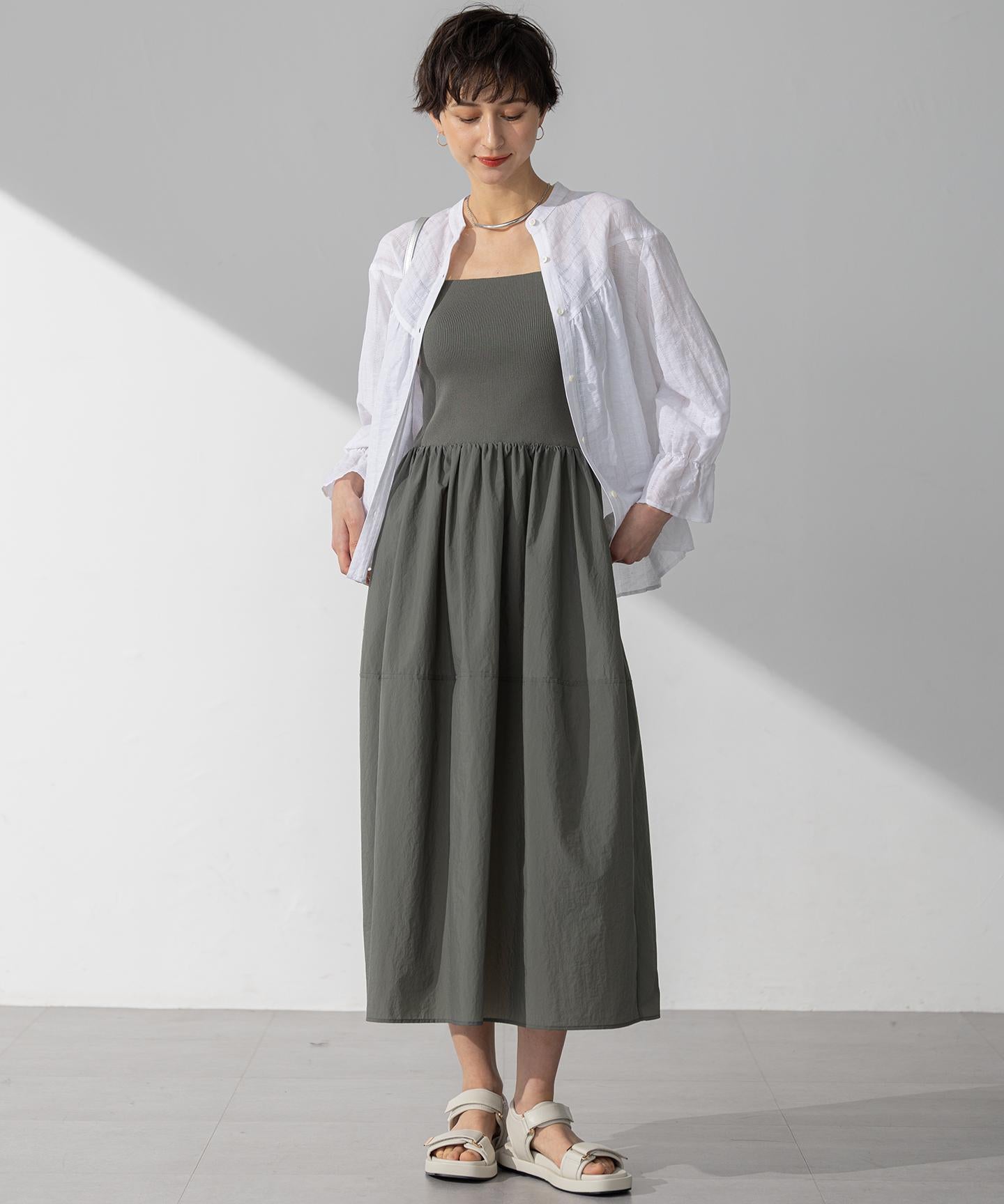 肩まわりはすっきりとコンパクトな作りで、胸元の切り替え下からはギャザーを入れているので、身体のラインを拾わず、切り替え下からはギャザーフレアになっているので張り付かず、涼しげな印象でご着用いただけます。前の釦を閉じていても開けてもサマになる1枚です。カジュアルにもきれいめにも着回せるので、さまざまなシーンで活躍してくれます。カラーはシックなブラック(#005)、爽やかで清涼感のあるホワイト(#001)、目を惹くオレンジ(#020)の3色展開です。
