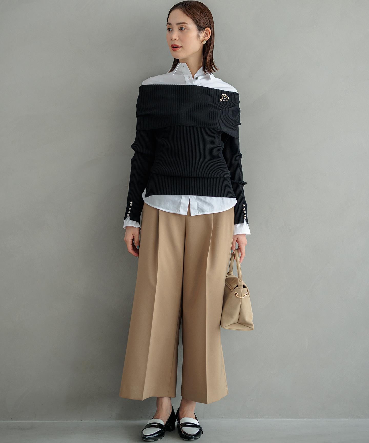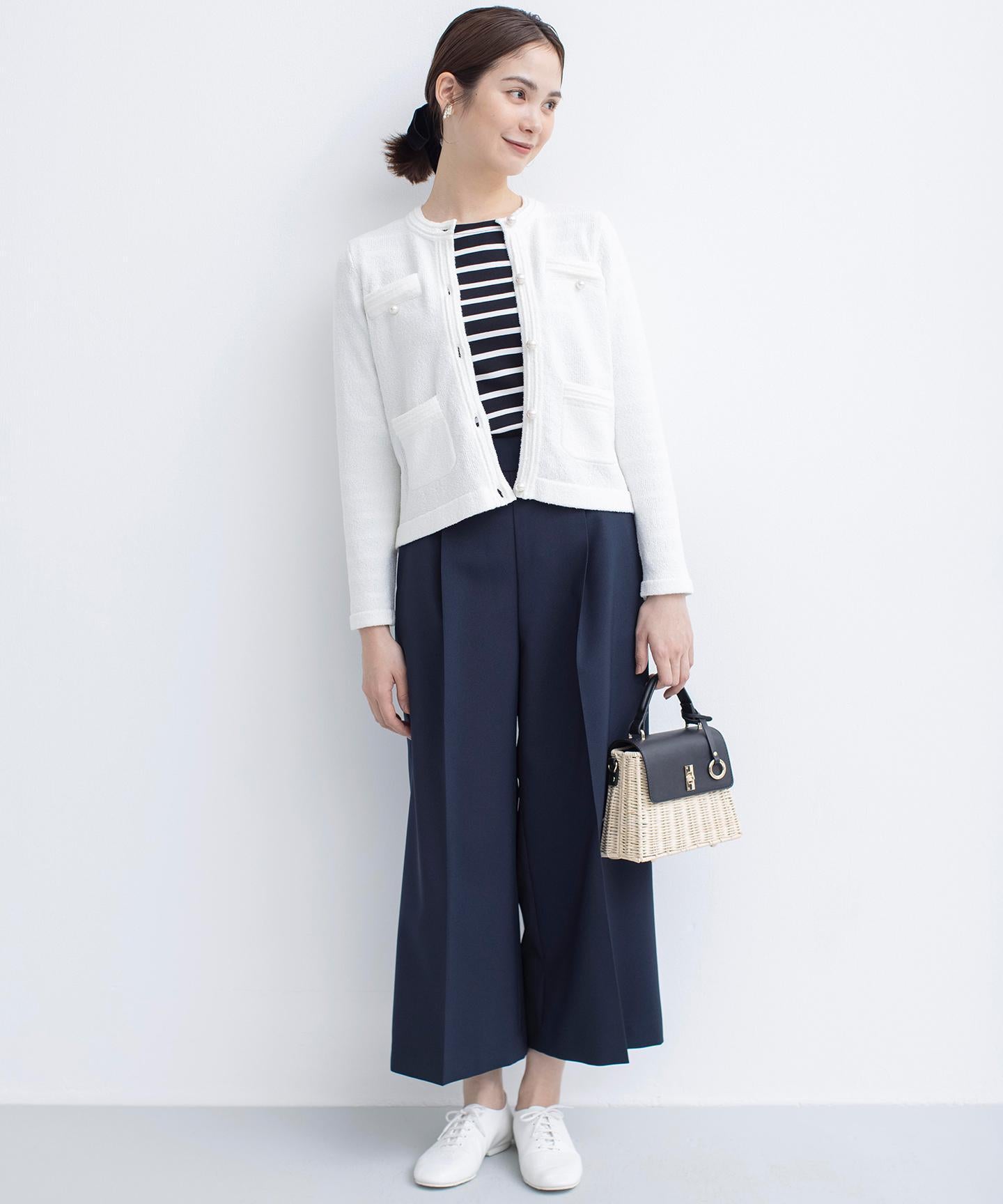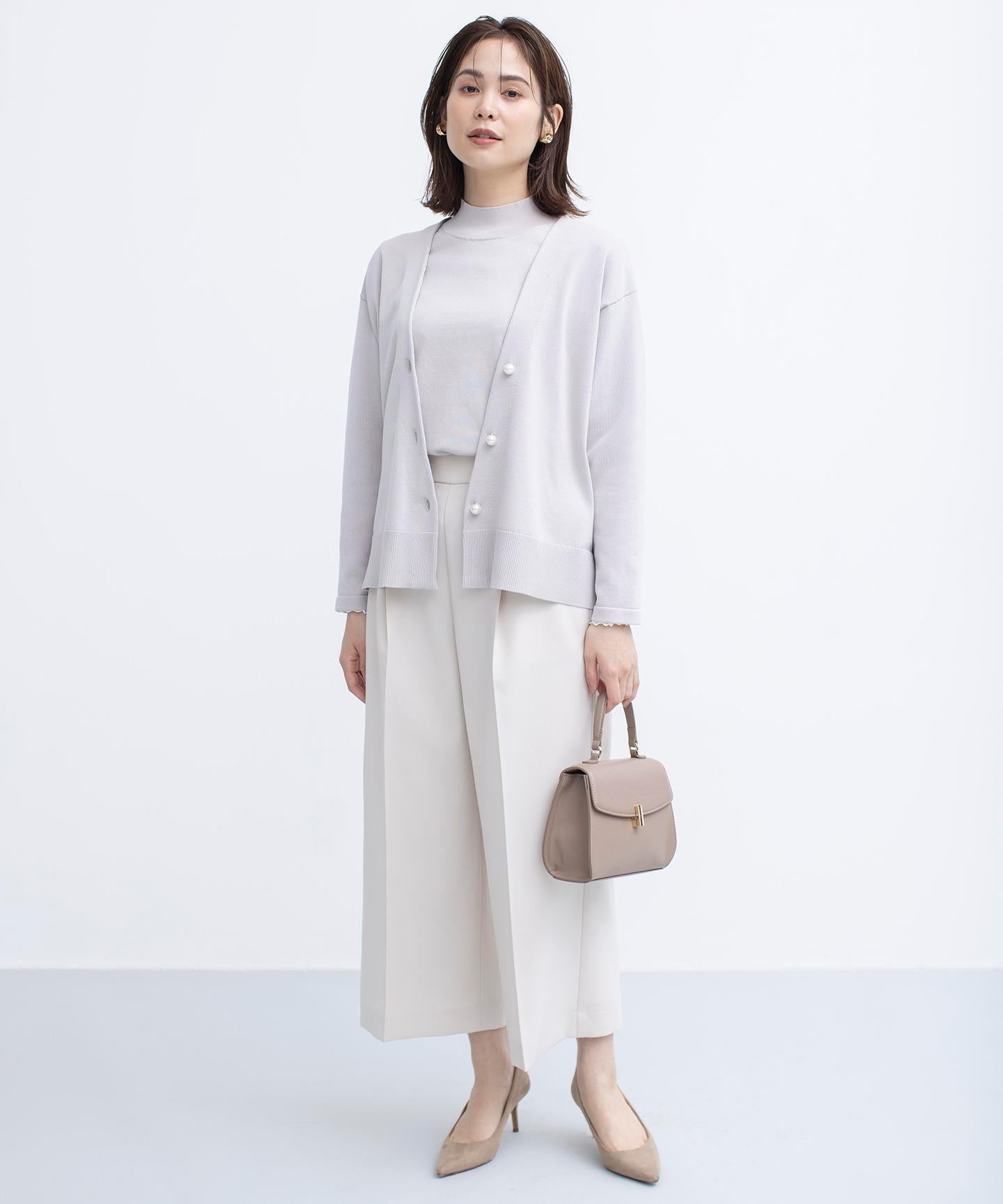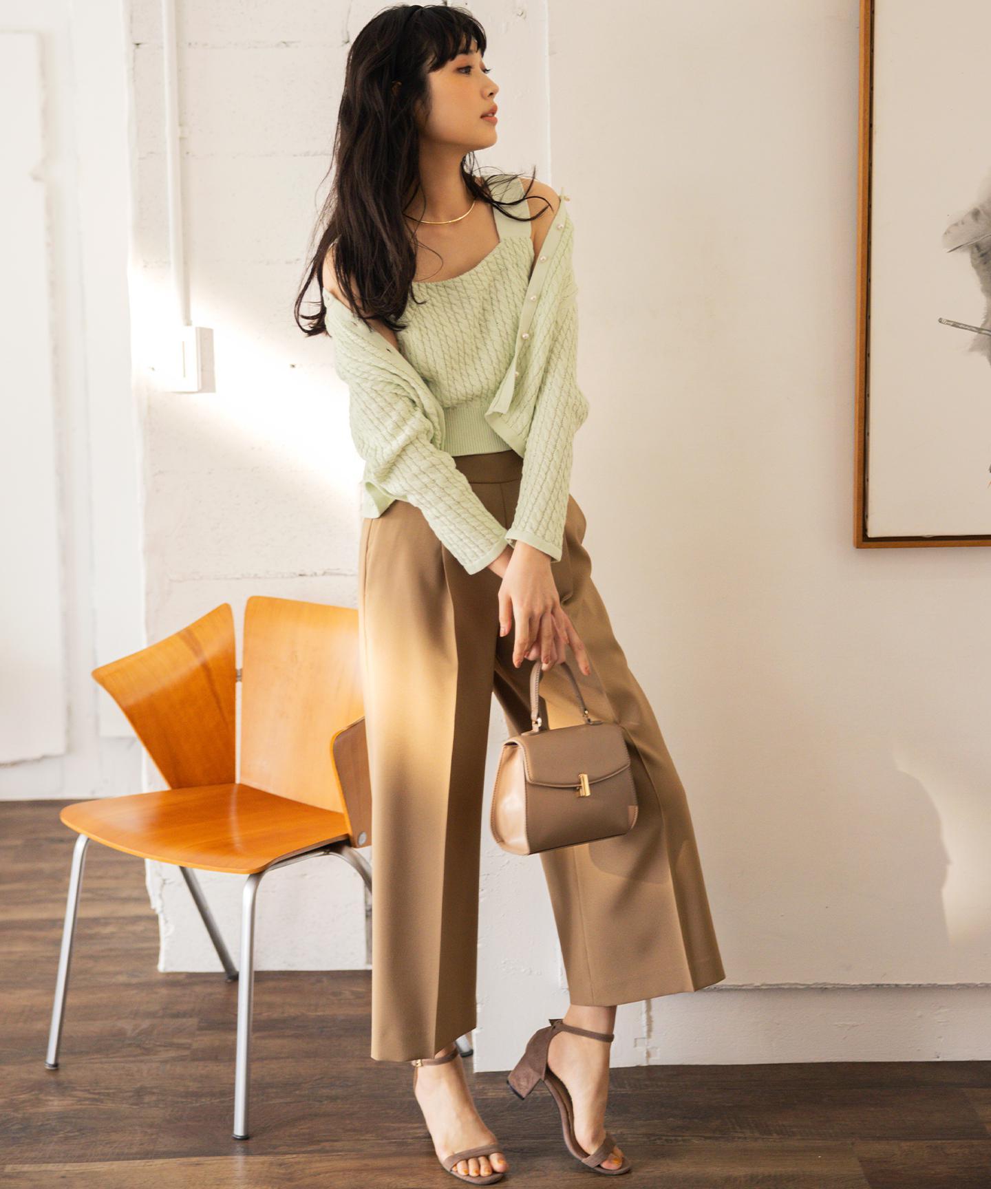 ■デザイン裾にかけて美しく広がるクロプト丈のガウチョパンツ。綺麗に落ちたシルエットと歩くたびに美しくなびく裾が魅力的です。ややハイウエストになっており、腰まわりはすっきりとしたシルエットでスタイルアップを叶えてくれます。ウエストベルトの後ろはゴム仕様でイージーなはき心地も。長時間の着用もラクチンながらもきれいめに見えるデザインがポイントです。