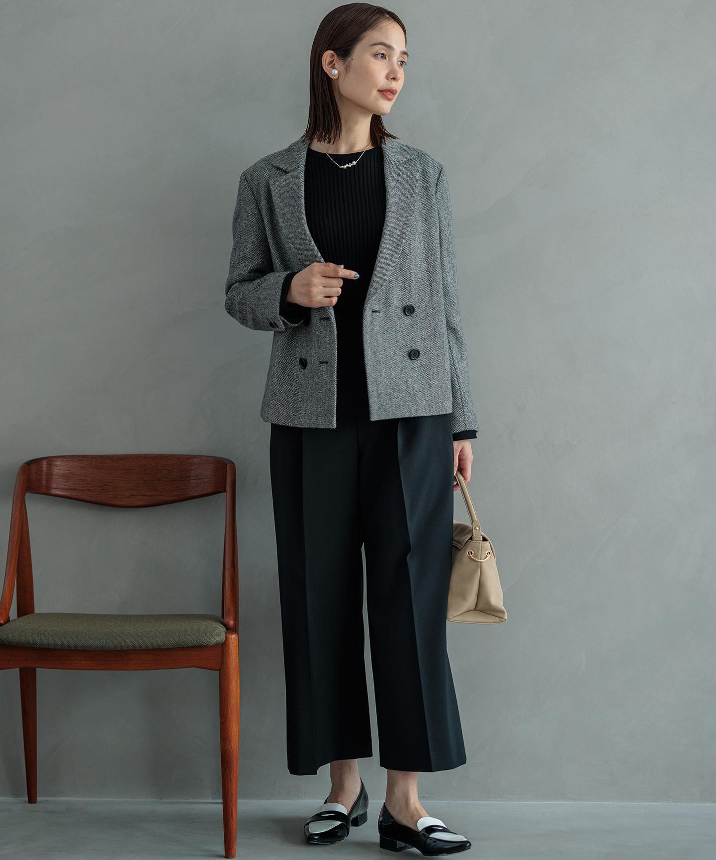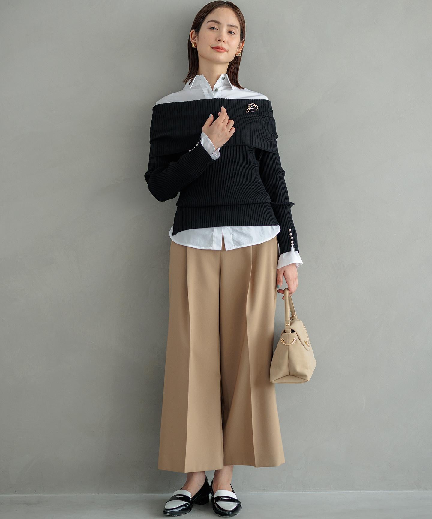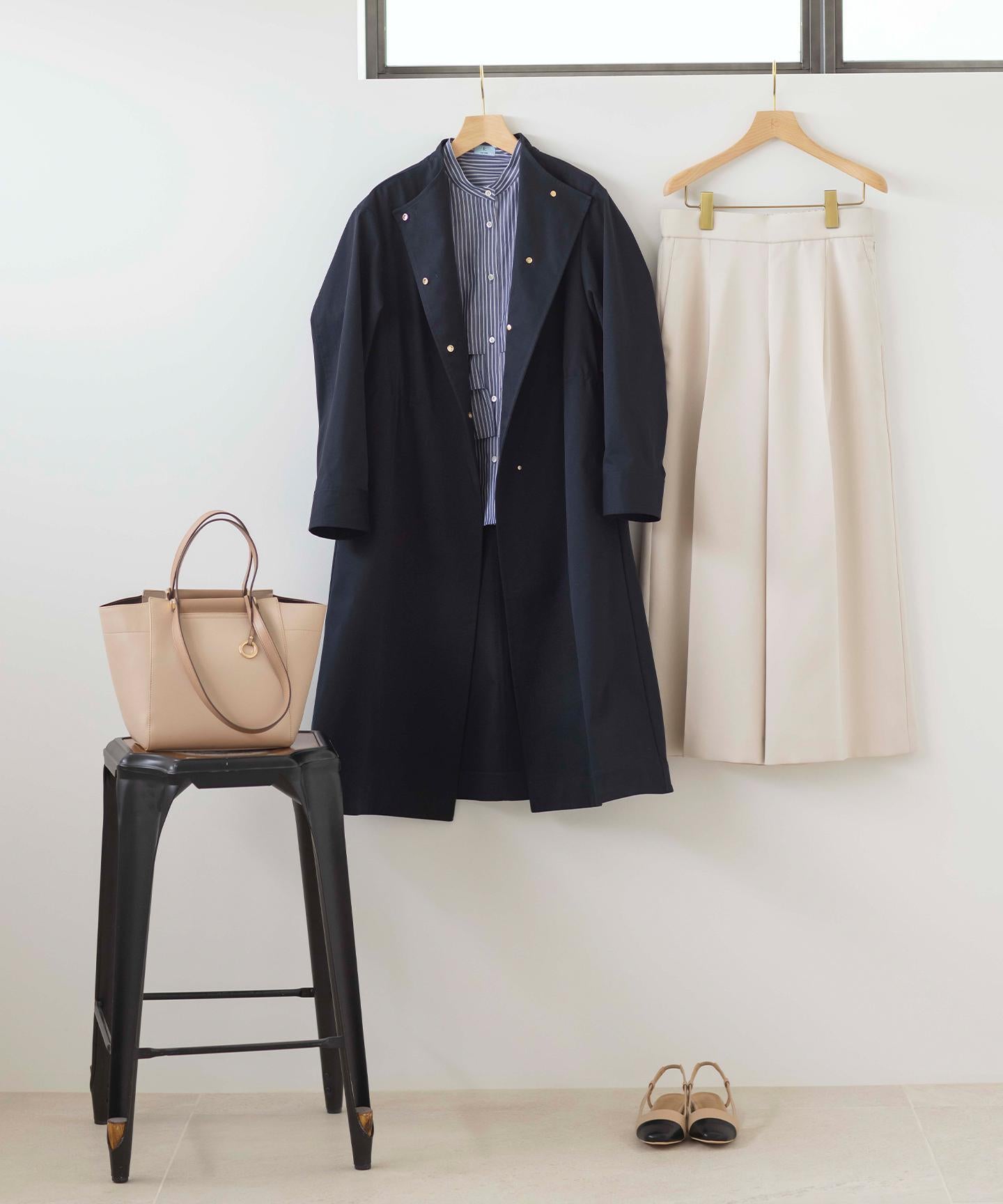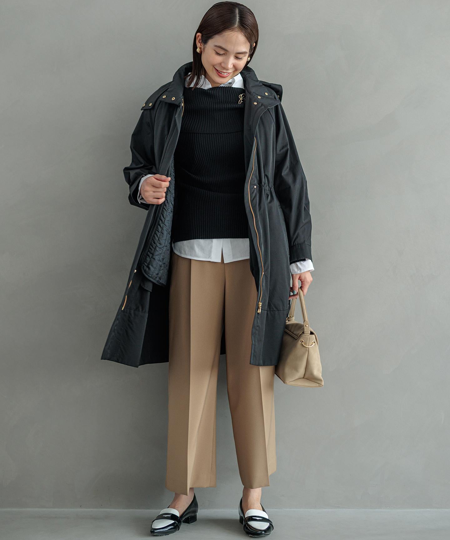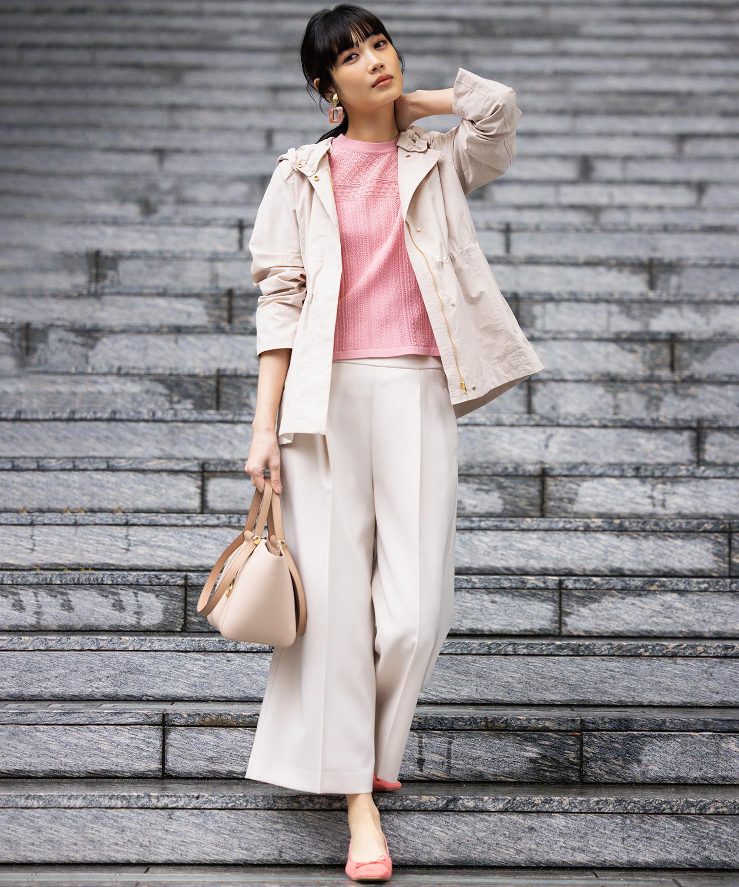 ■素材ナチュラルな素材感を表現したポリエステル素材は、ソフトなオックス組織で伸縮性とハリ感があり、シワになりにくく手洗い可能なイージーケアな素材です。大人の求める品とスマートな印象を叶えます。