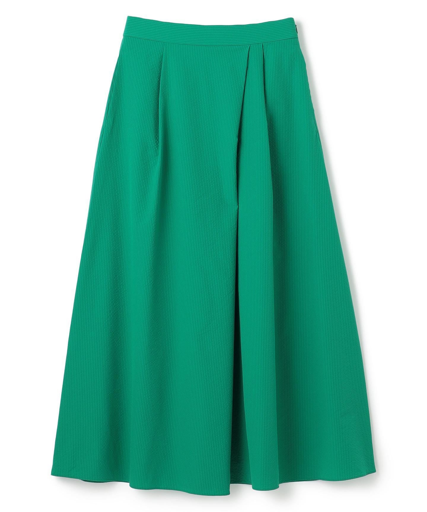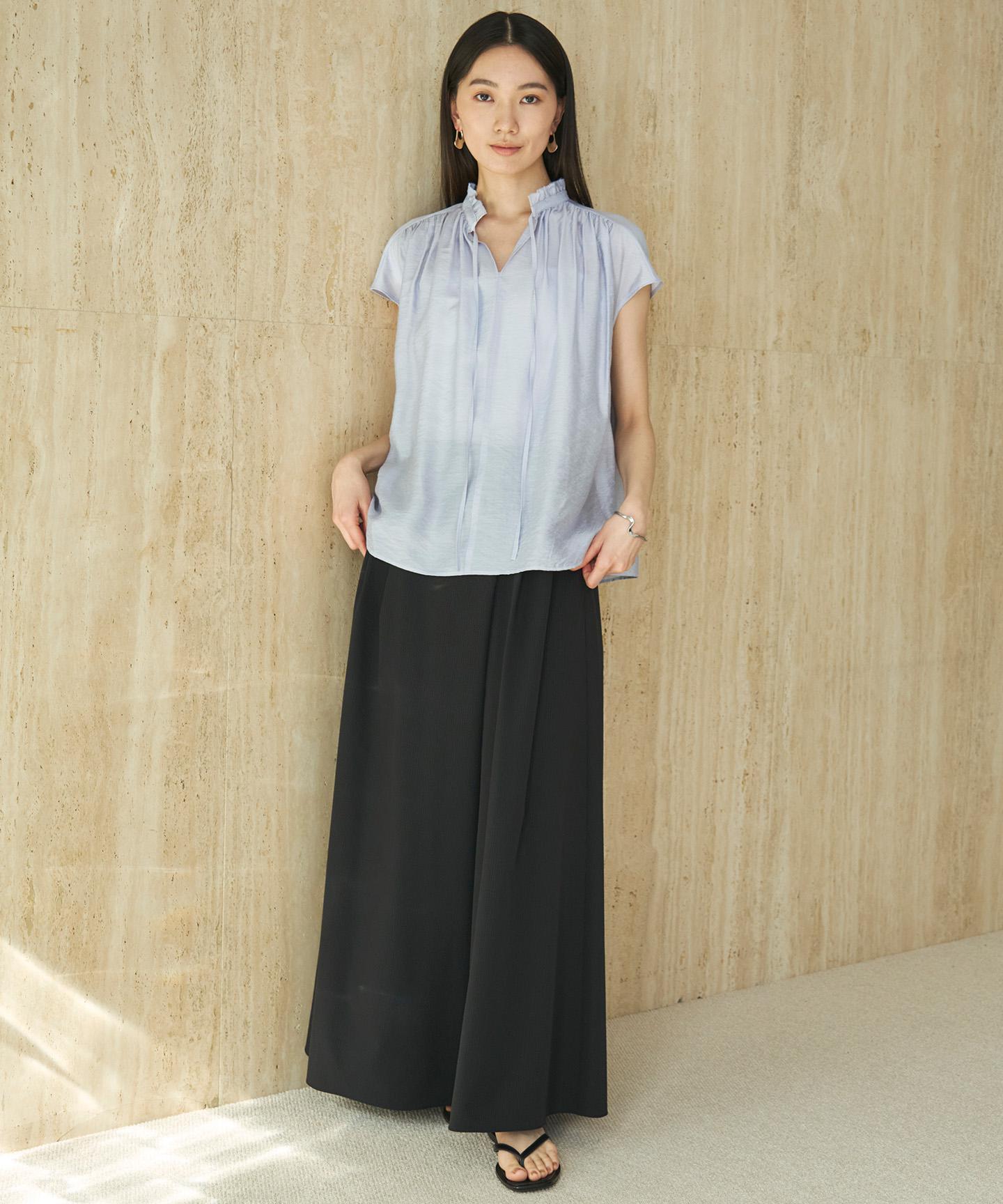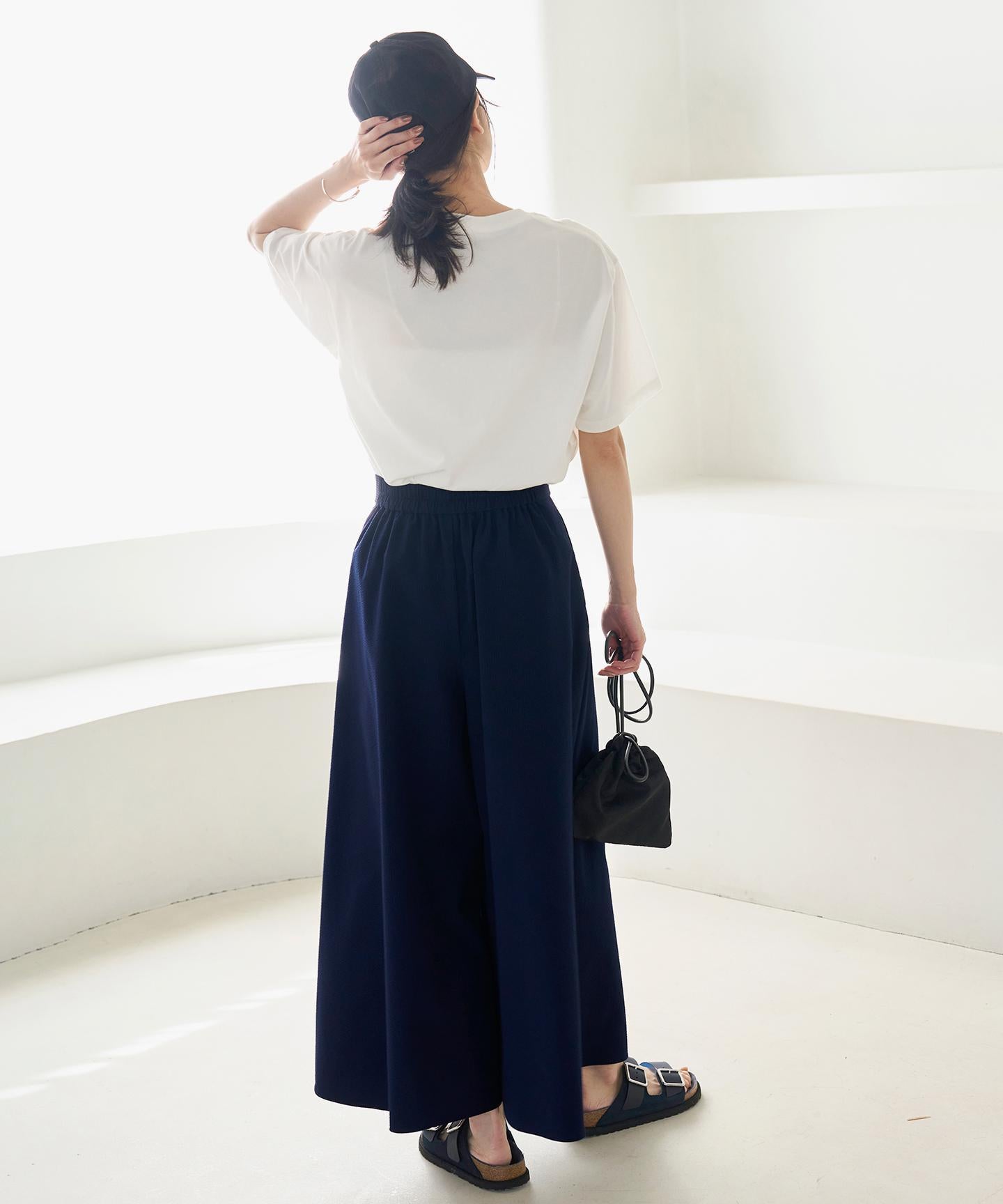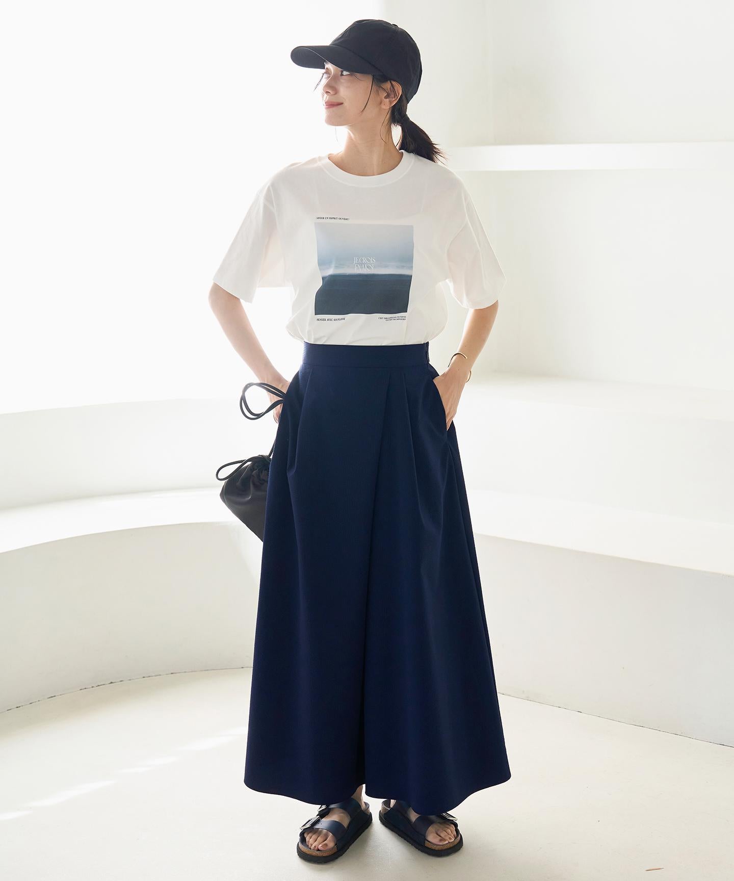 ■デザインアシンメトリーなタックデザインのラップパンツ。フレアスカートのように見えるシルエットで、パンツが苦手でも抵抗なく取り入れていただけます。足さばきが良く、風などでまくれる心配がないので、アクティブに動きたい日にもおすすめ。たっぷりとしたボリュームで、シンプルになりがちな夏コーデを華やかにしてくれる1枚です。