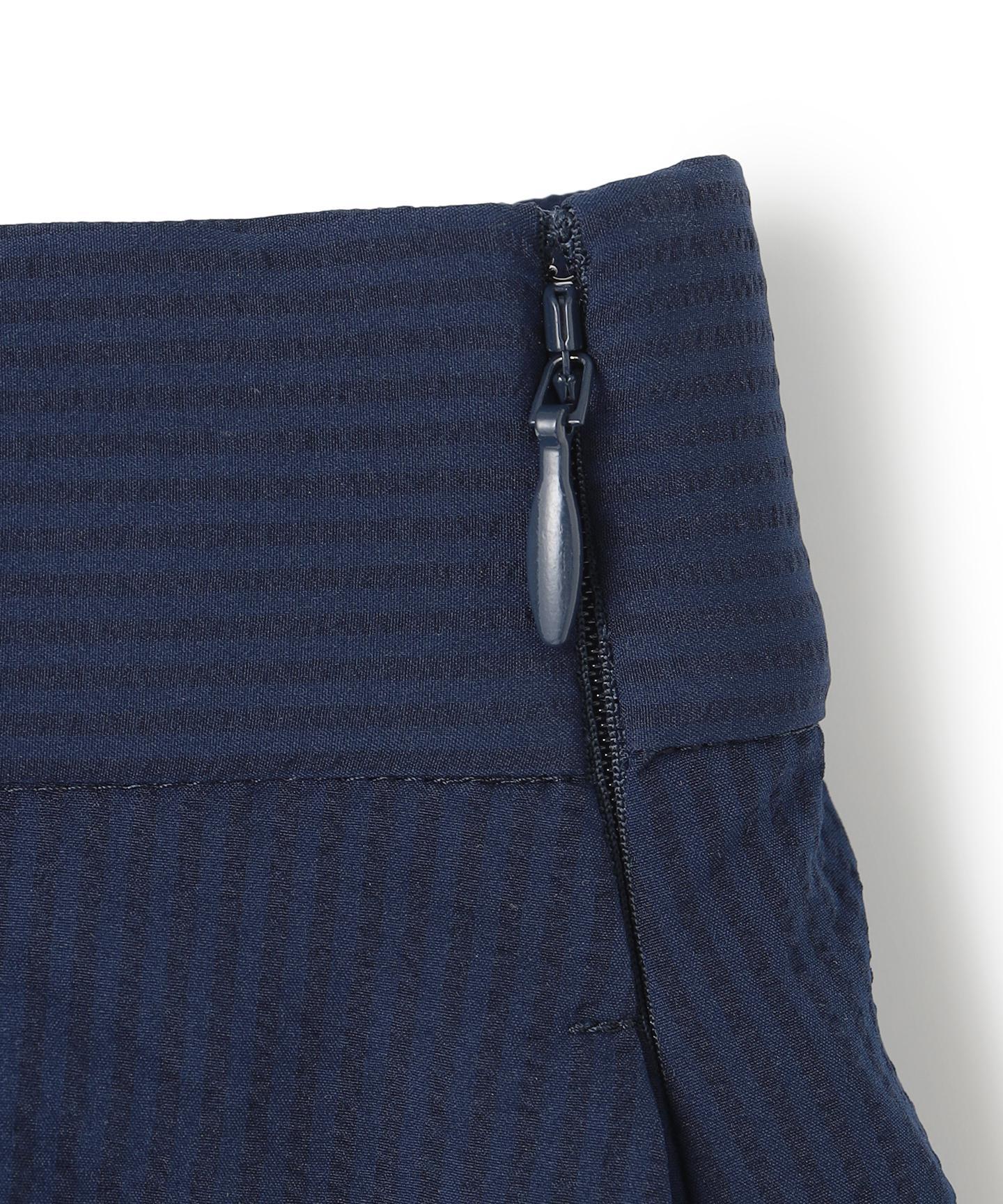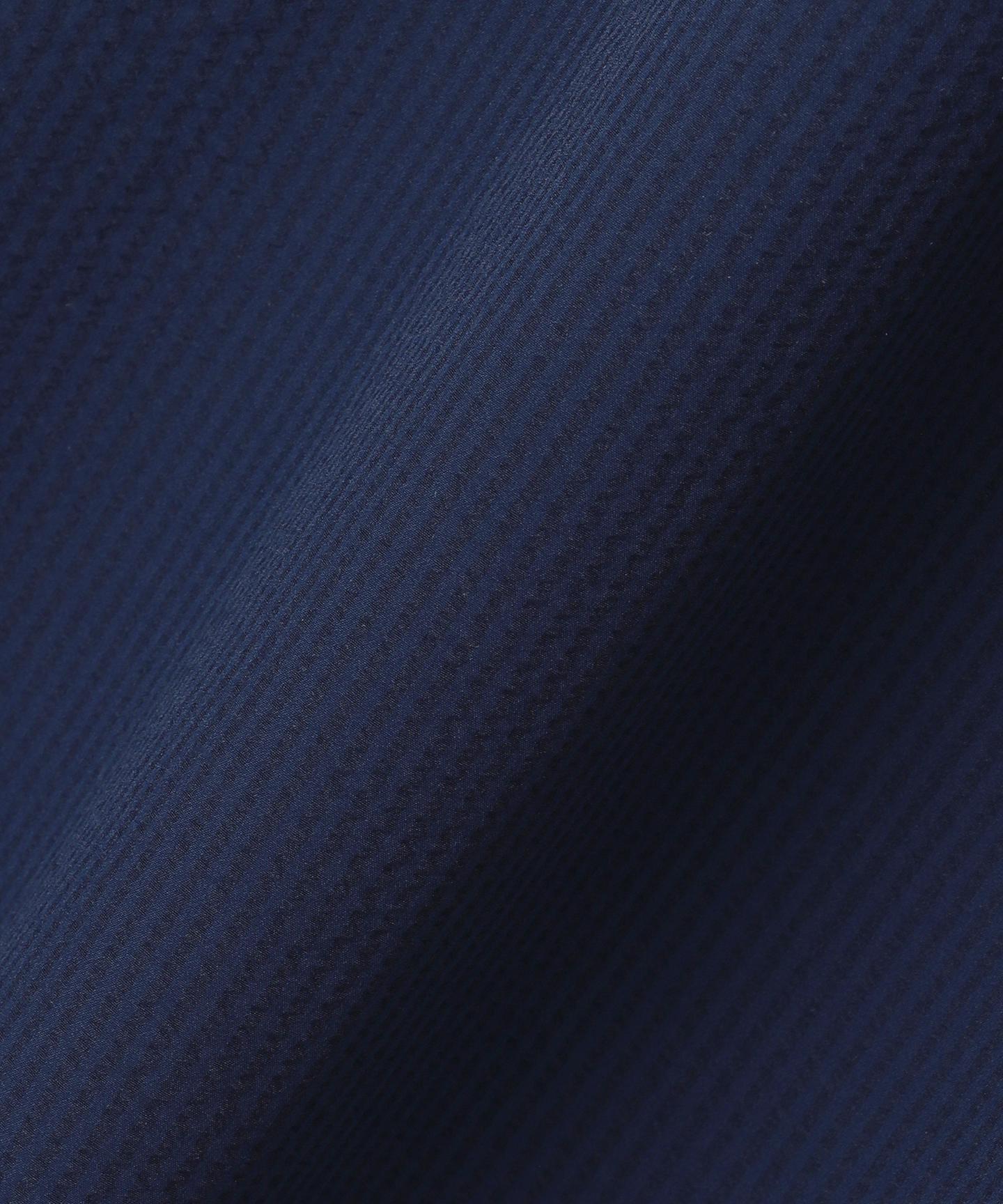 ■素材FINE MOVEと同じ糸を使用した、ポリエステルサッカー素材。軽さと伸縮性の良さ、しわを気にせず着用できる特徴はそのままに、シアサッカーの凹凸がさらっとした清涼感のある肌ざわりをプラス。UVカット・撥水機能付きなので、気温の高い季節に最適な機能素材です。