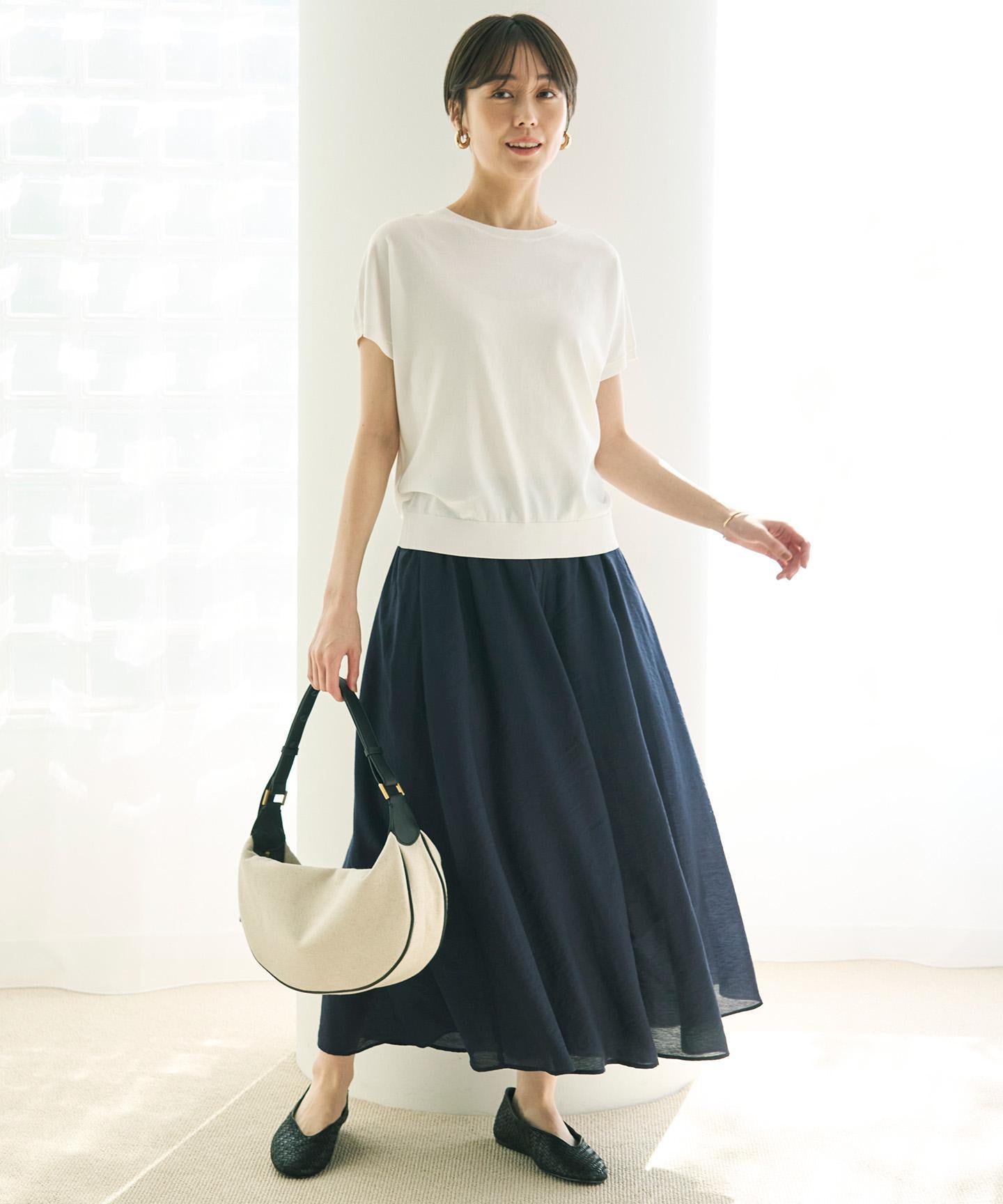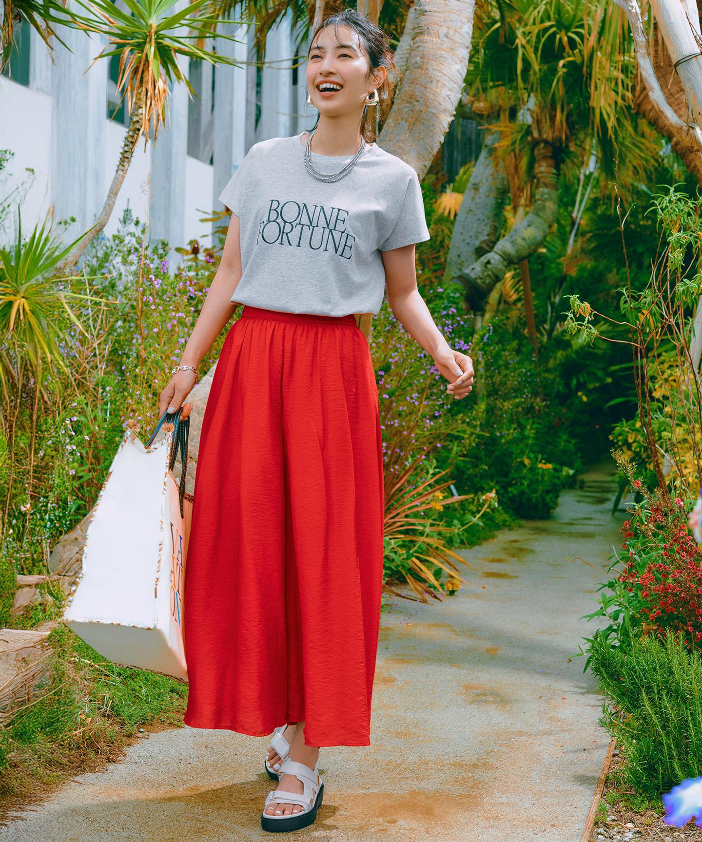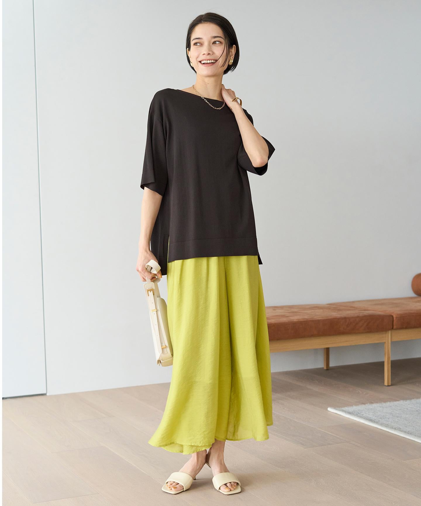 昨年ご好評いただいたパンツから新色スカーレット(010)・カーキ(054)・[WEB限定]ネイビー(075)登場!まるでロングスカート!すっきり見えワイドパンツ