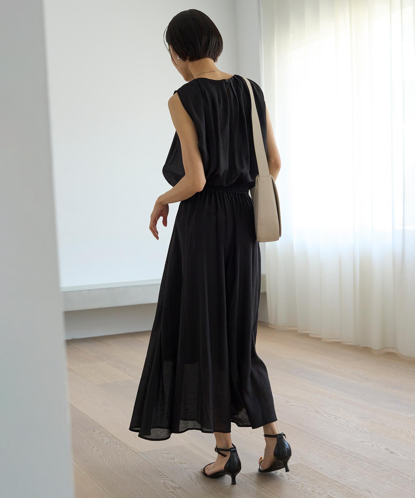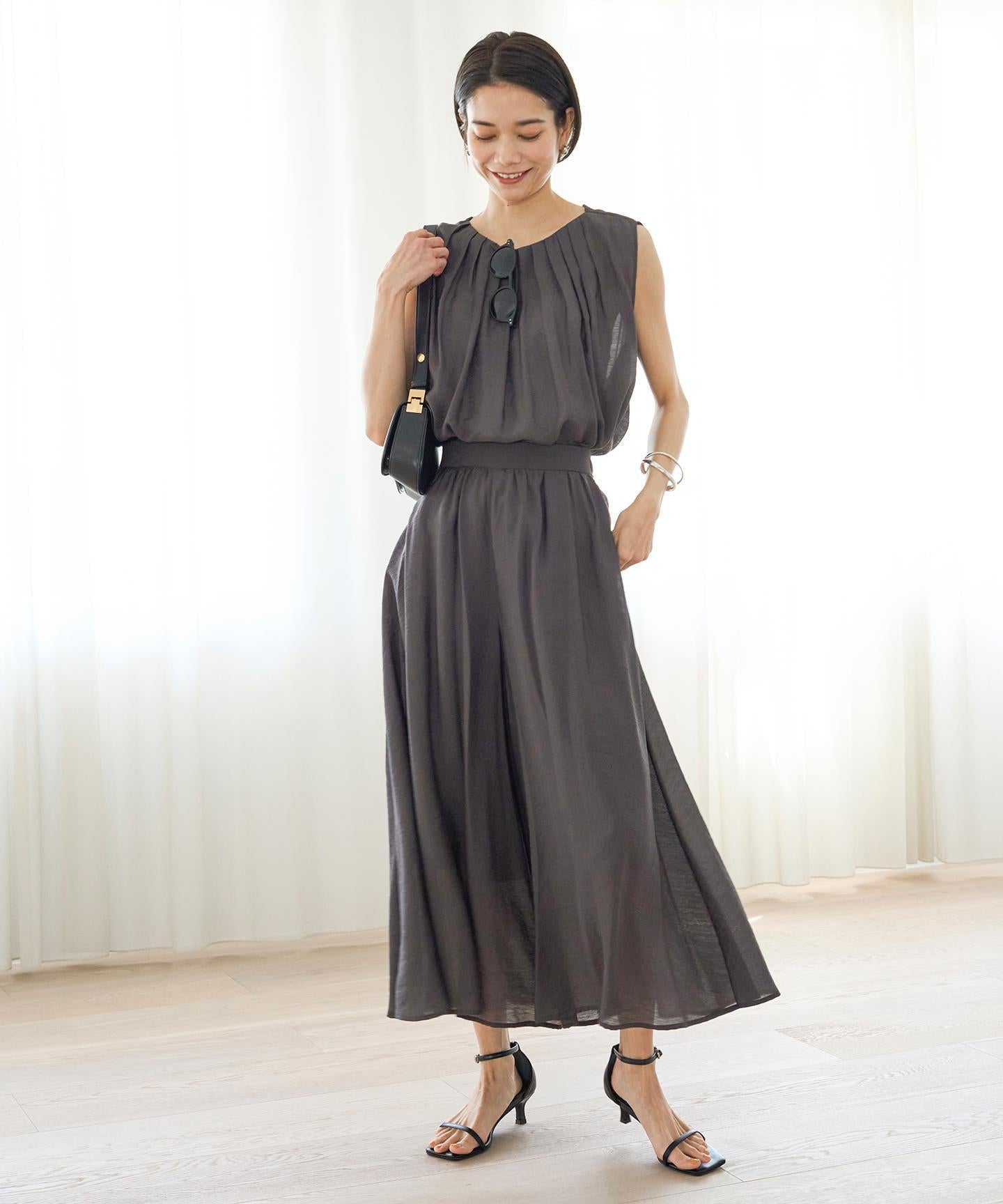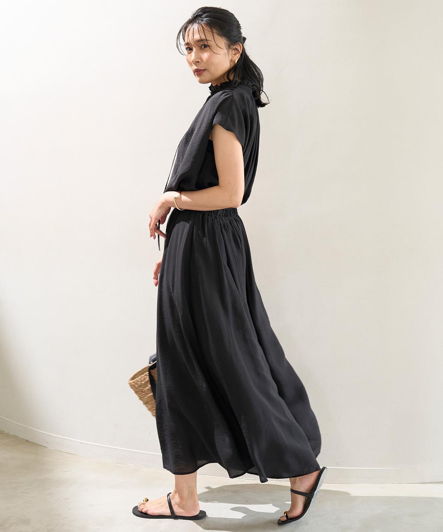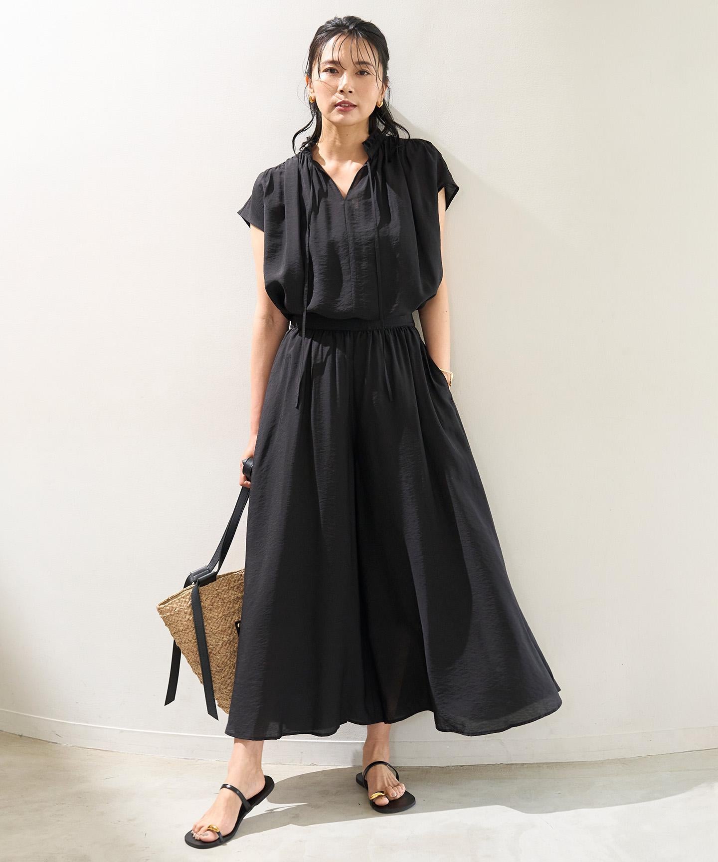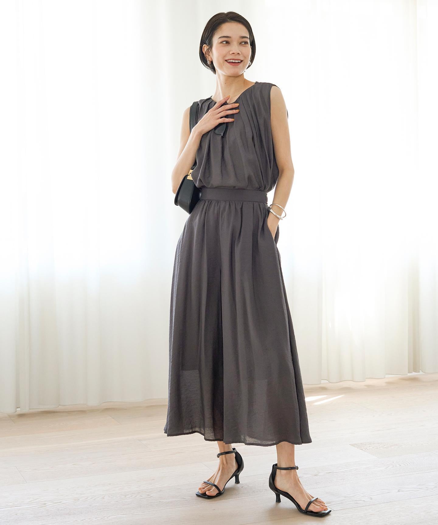 ■デザインまるでロングスカートを履いているような贅沢な分量感のワイドパンツです。落ち感のある生地を使用しているので、分量が多くても膨らみすぎずウエスト周りもスッキリ着ていただけます。ウエストもゴム仕様でストレスフリーな履き心地です。裏地も付いております。