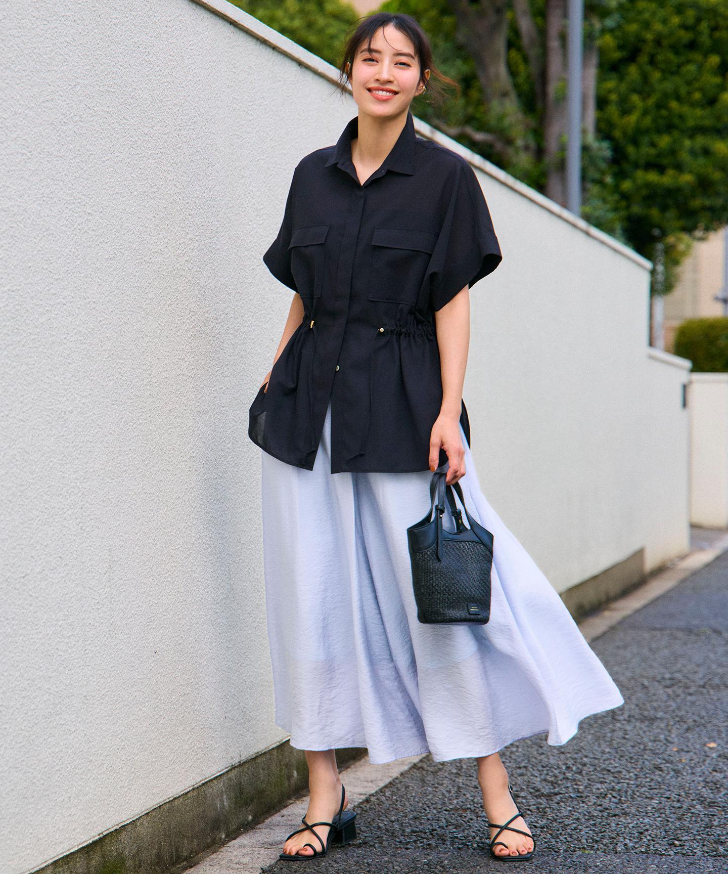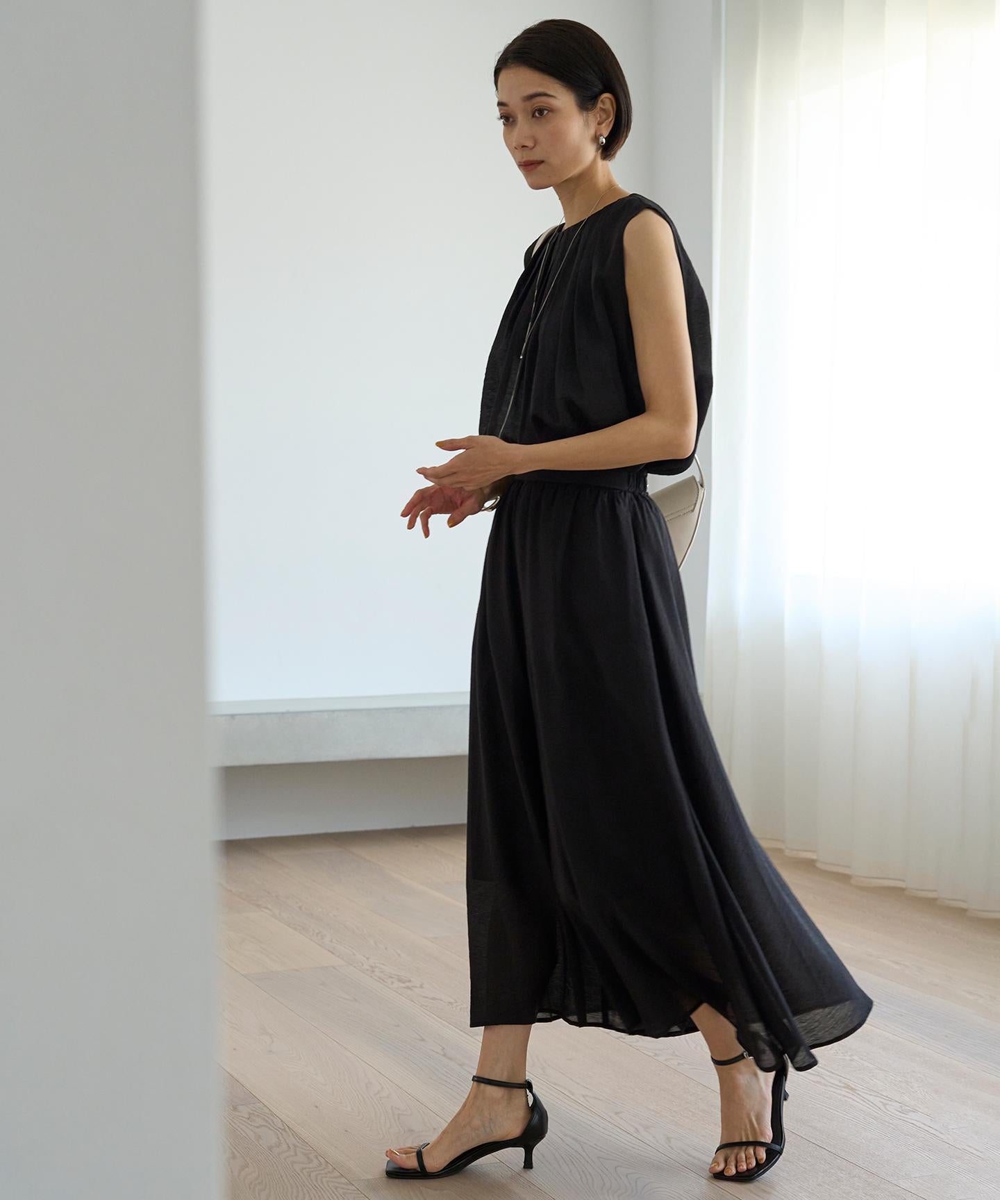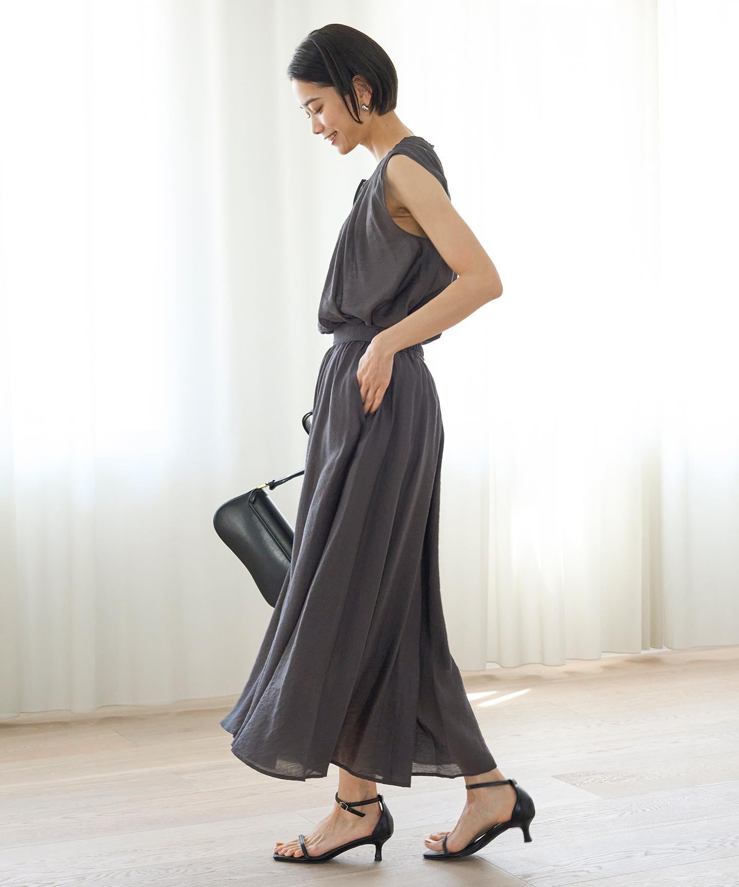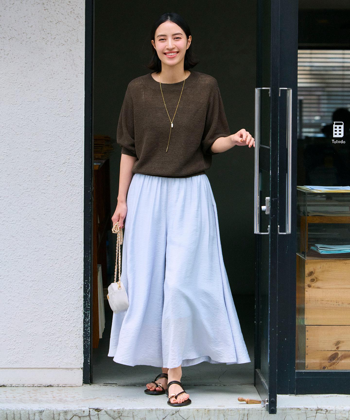 ■デザインまるでロングスカートを履いているような贅沢な分量感のワイドパンツです。落ち感のある生地を使用しているので、分量が多くても膨らみすぎずウエスト周りもスッキリ着ていただけます。ウエストもゴム仕様でストレスフリーな履き心地です。裏地も付いております。